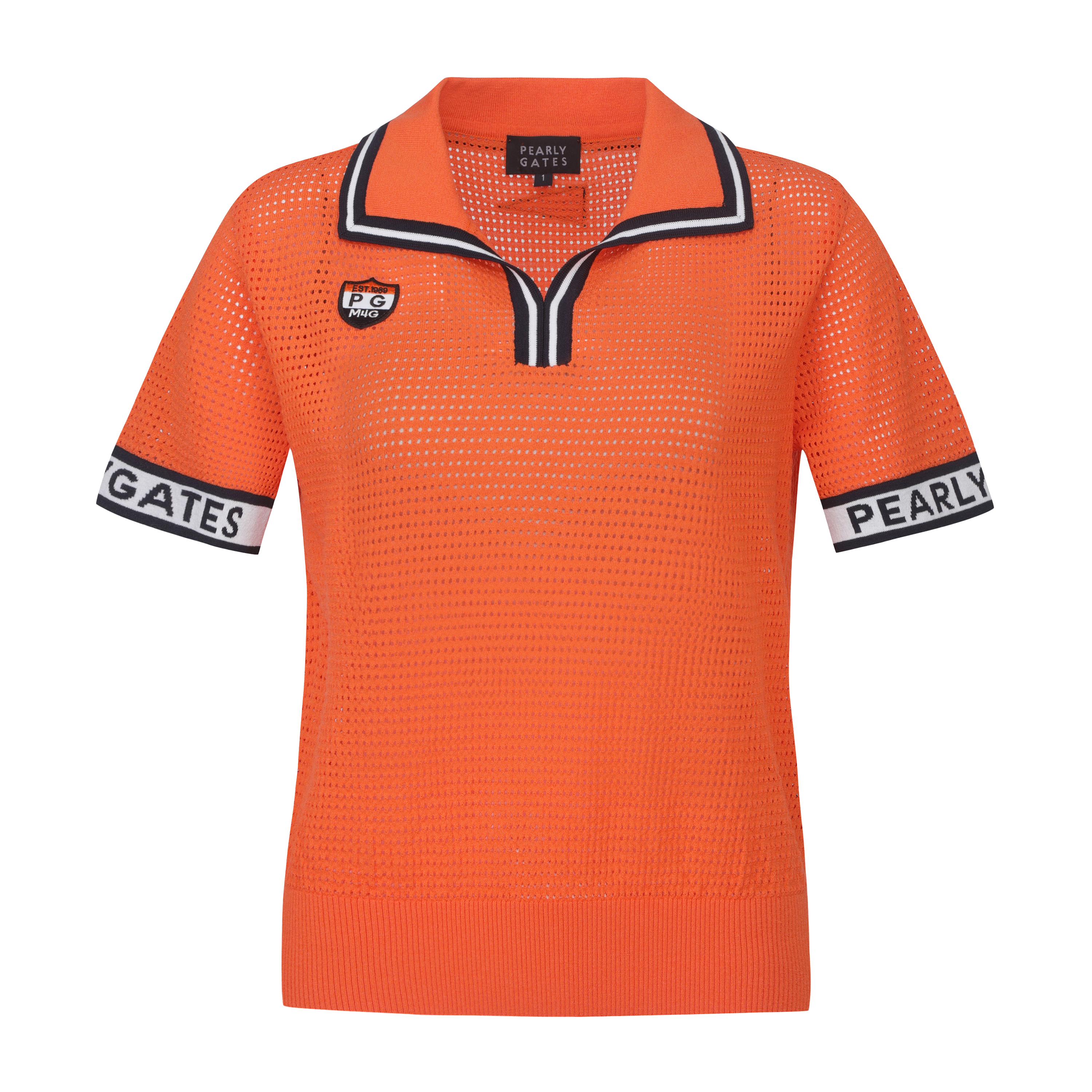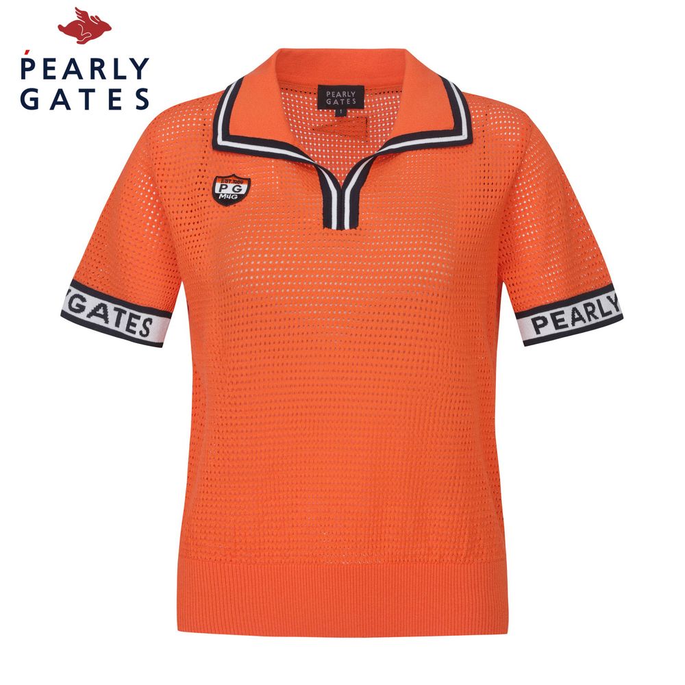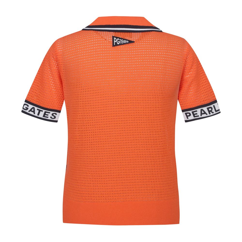 여성 로고 커프스 오픈 칼라 펀칭 니트