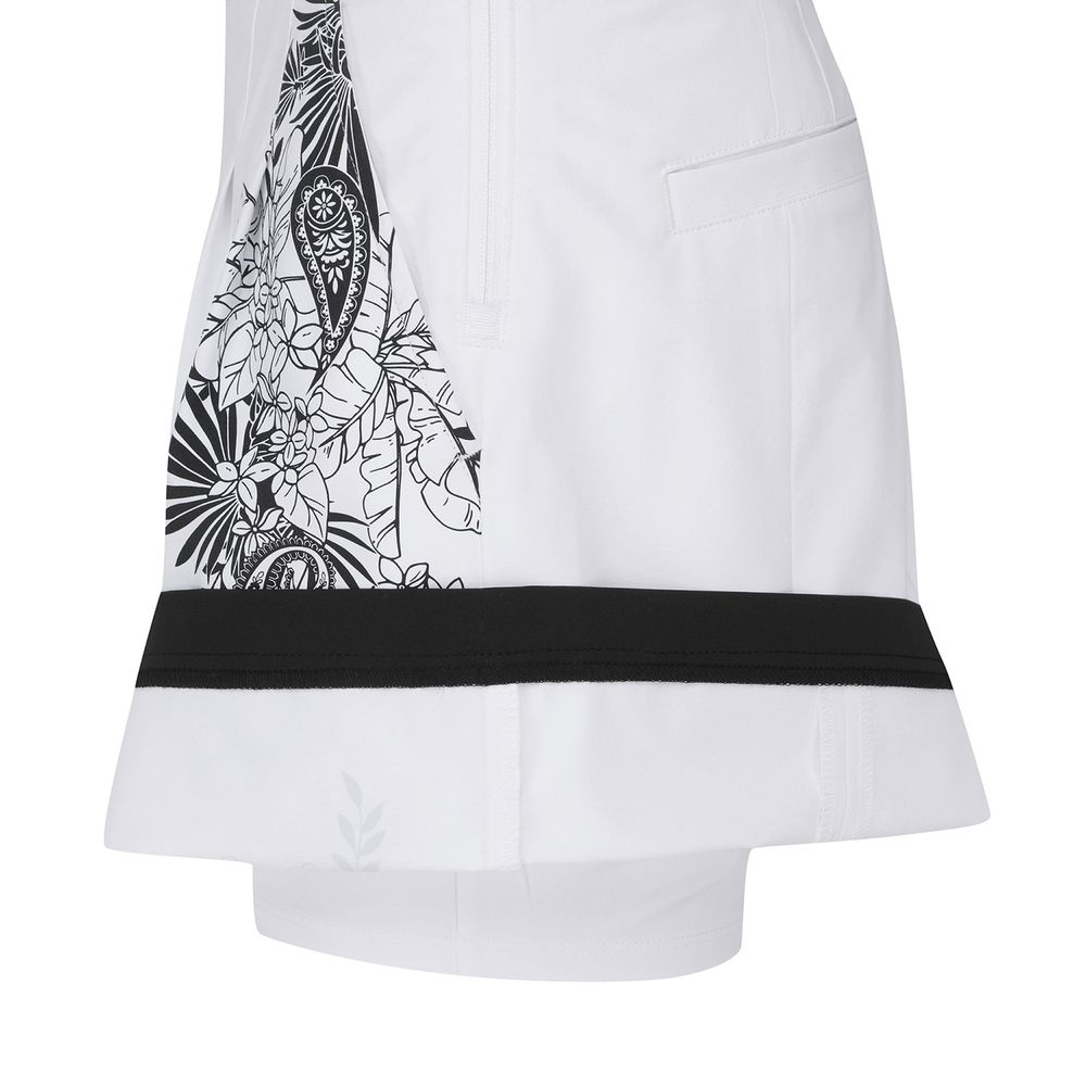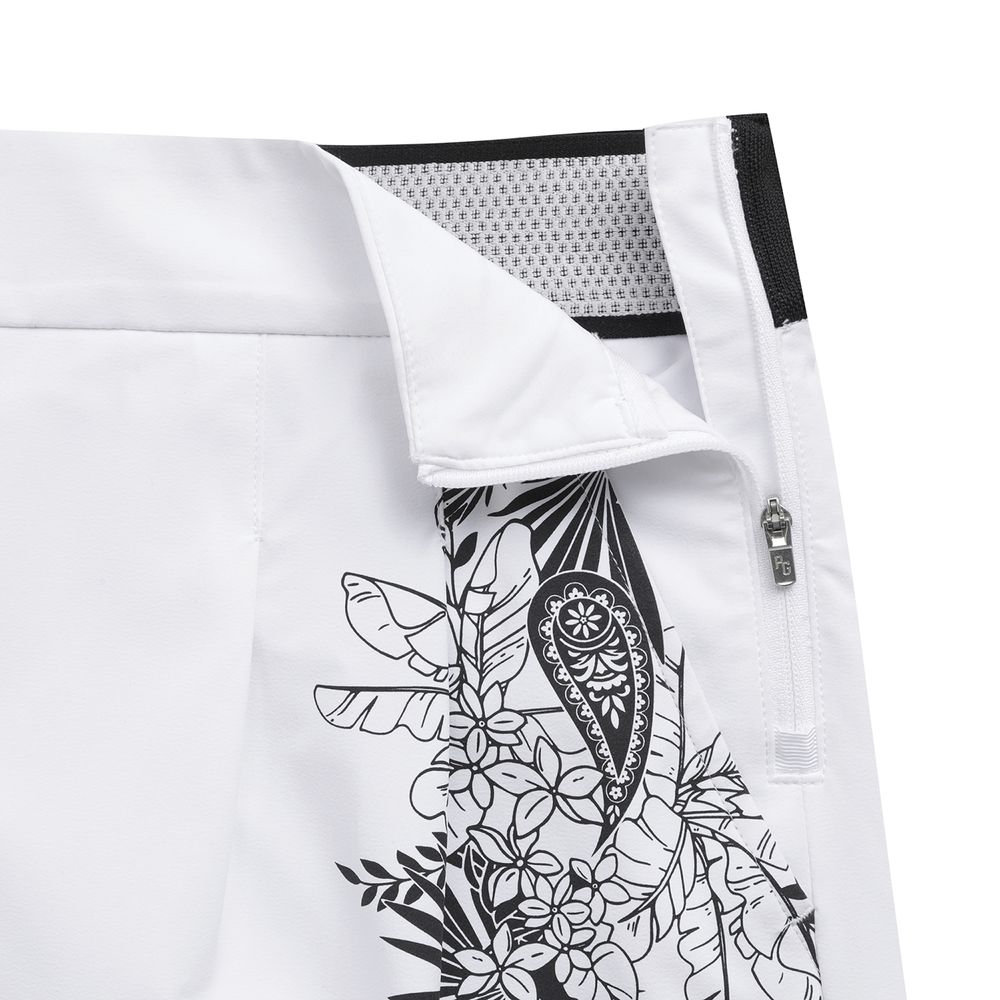 허리안 냉감 밴드가 들어가 있어서 피팅 시 시원한 착용감을 주며 뒤 허리 부분에 로고 이밴드를 넣어 포인트를 준 디자인. 앞부분 턱을 잡아서 허리 아래 여유 공간이 있어 활동성이 좋음. 볼 주머니 탈부착 가능