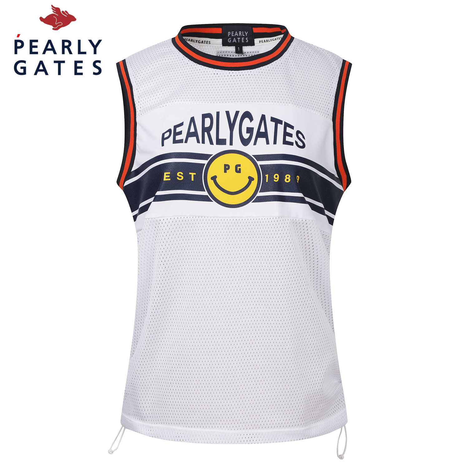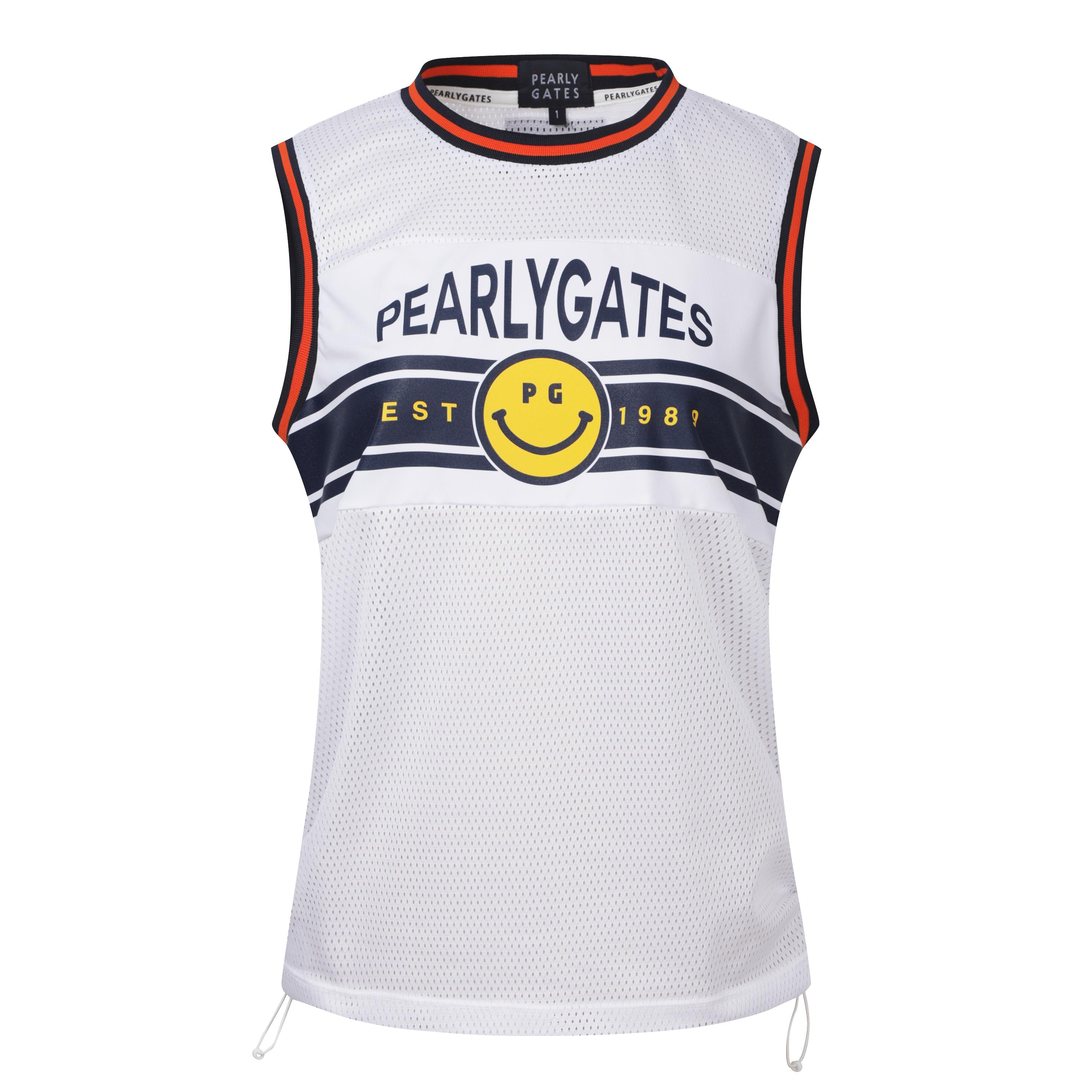 여성 스마일 사이드 스트링 프린팅 메쉬 베스트