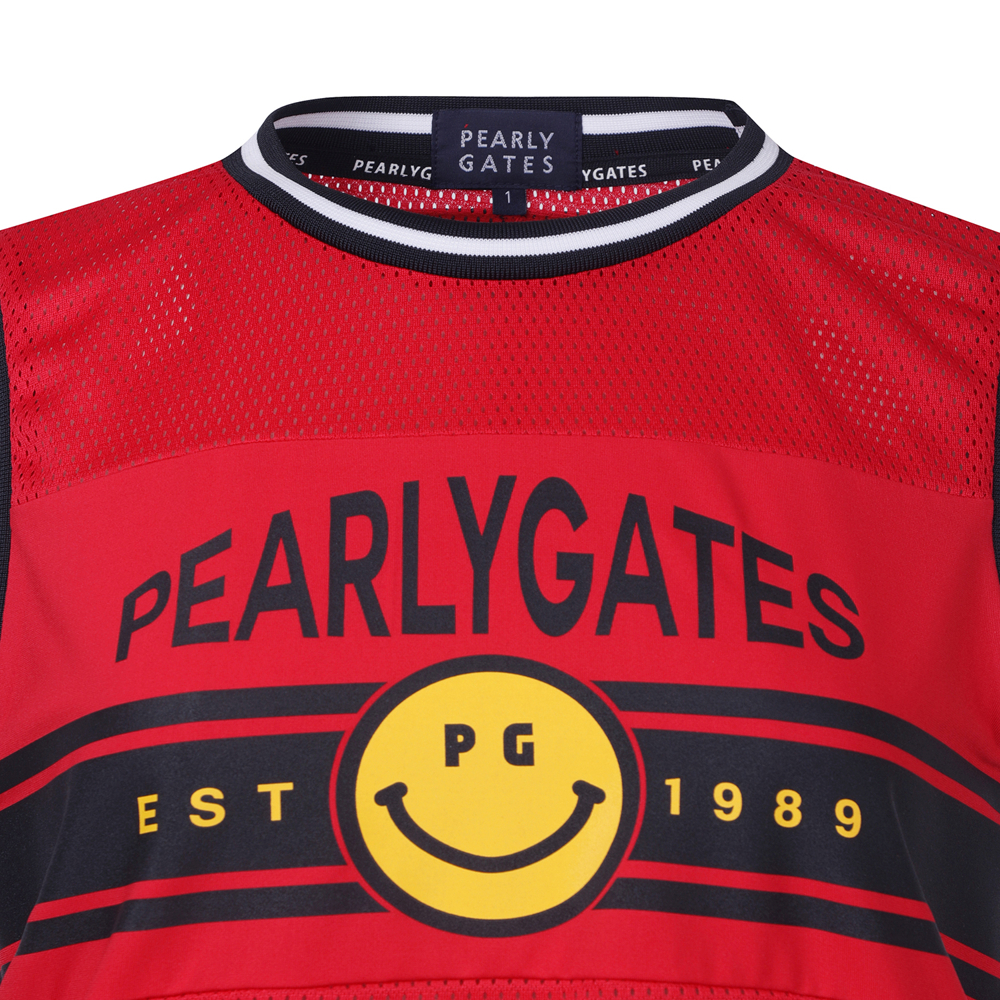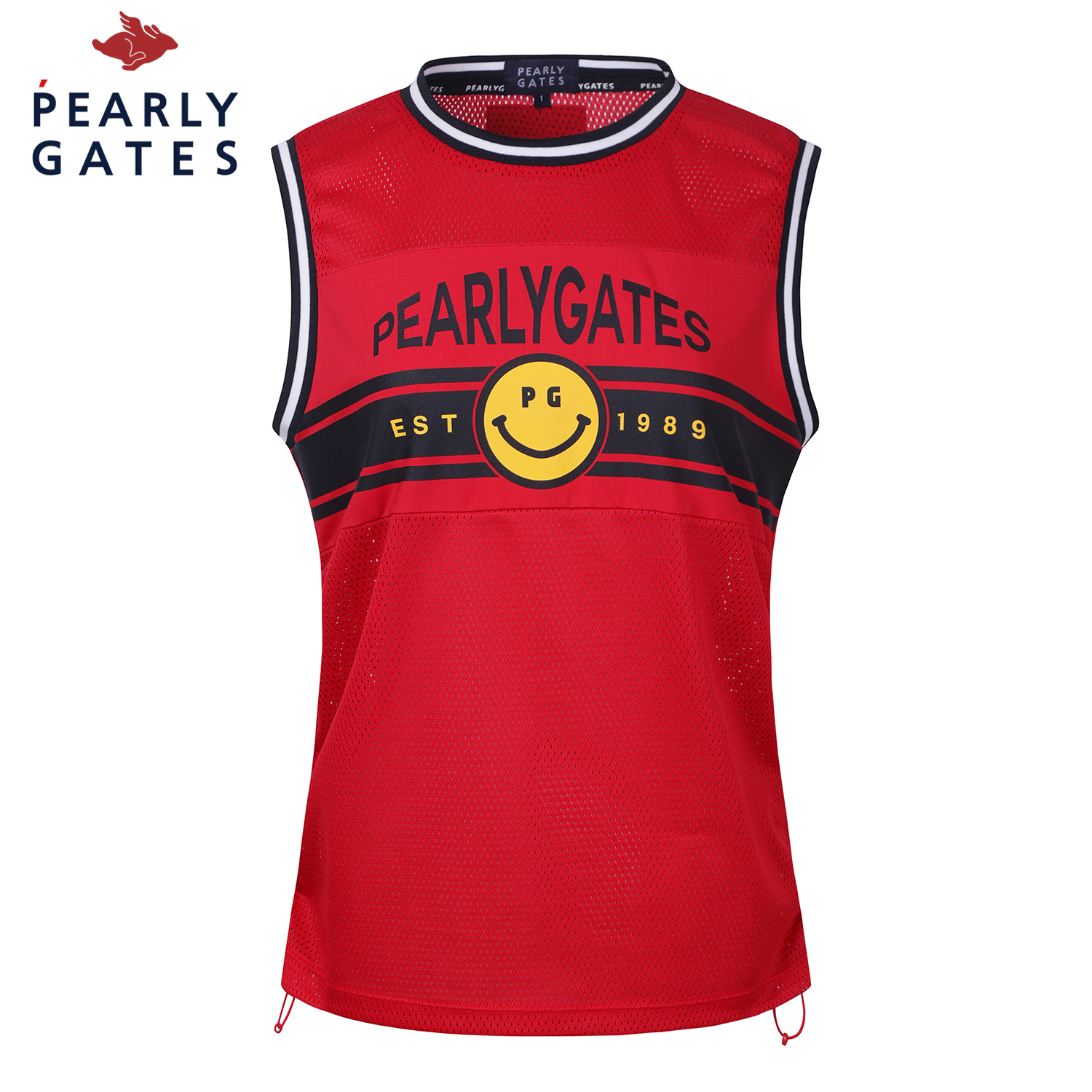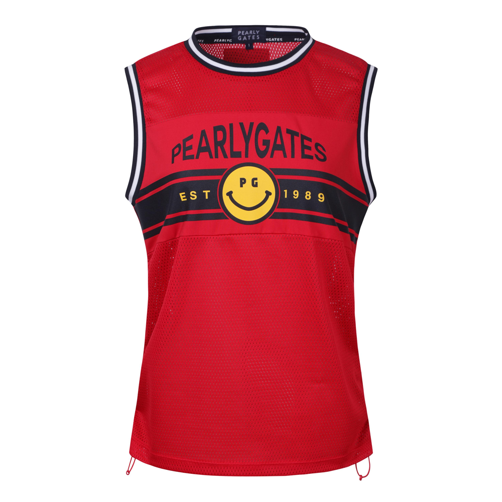 여성 스마일 사이드 스트링 프린팅 메쉬 베스트