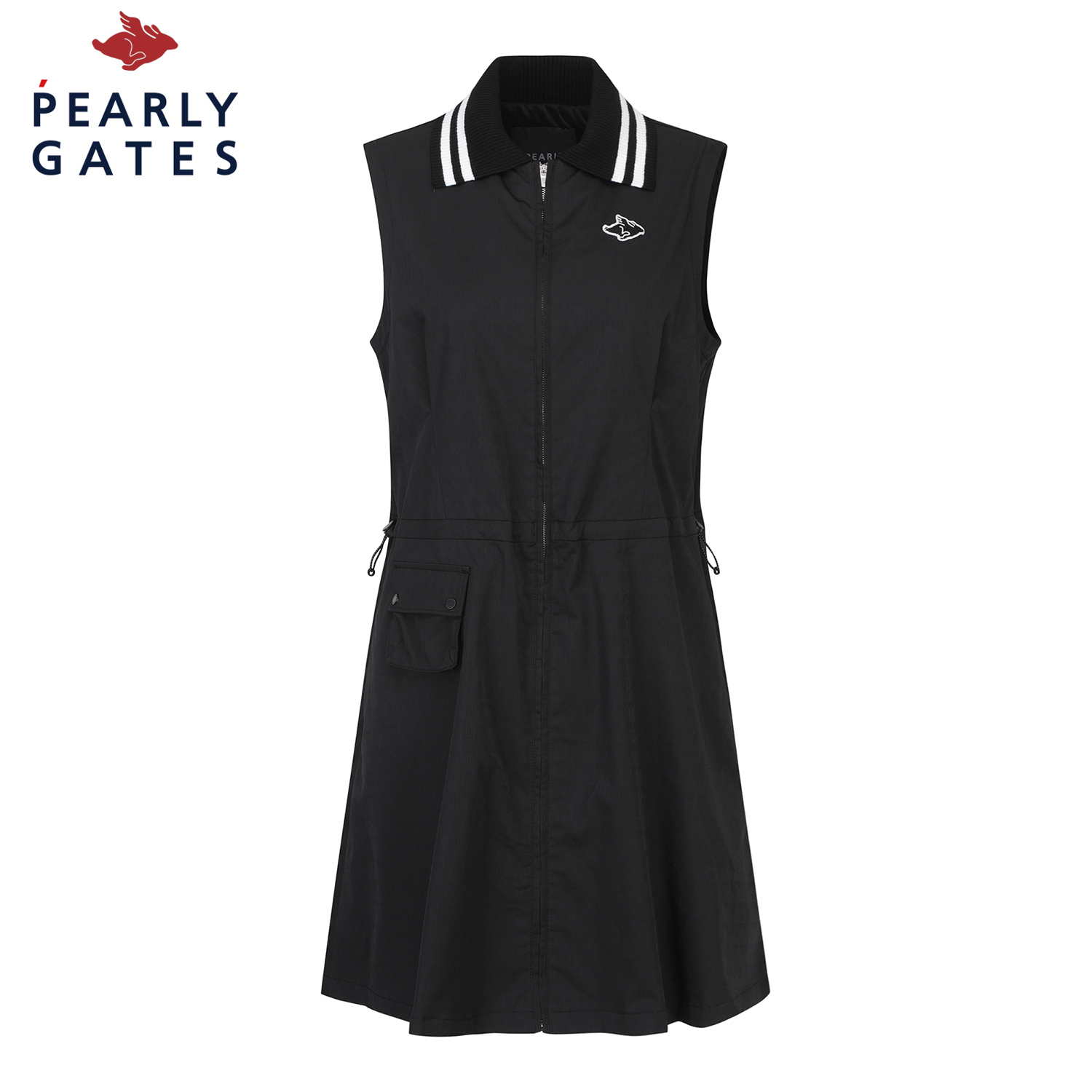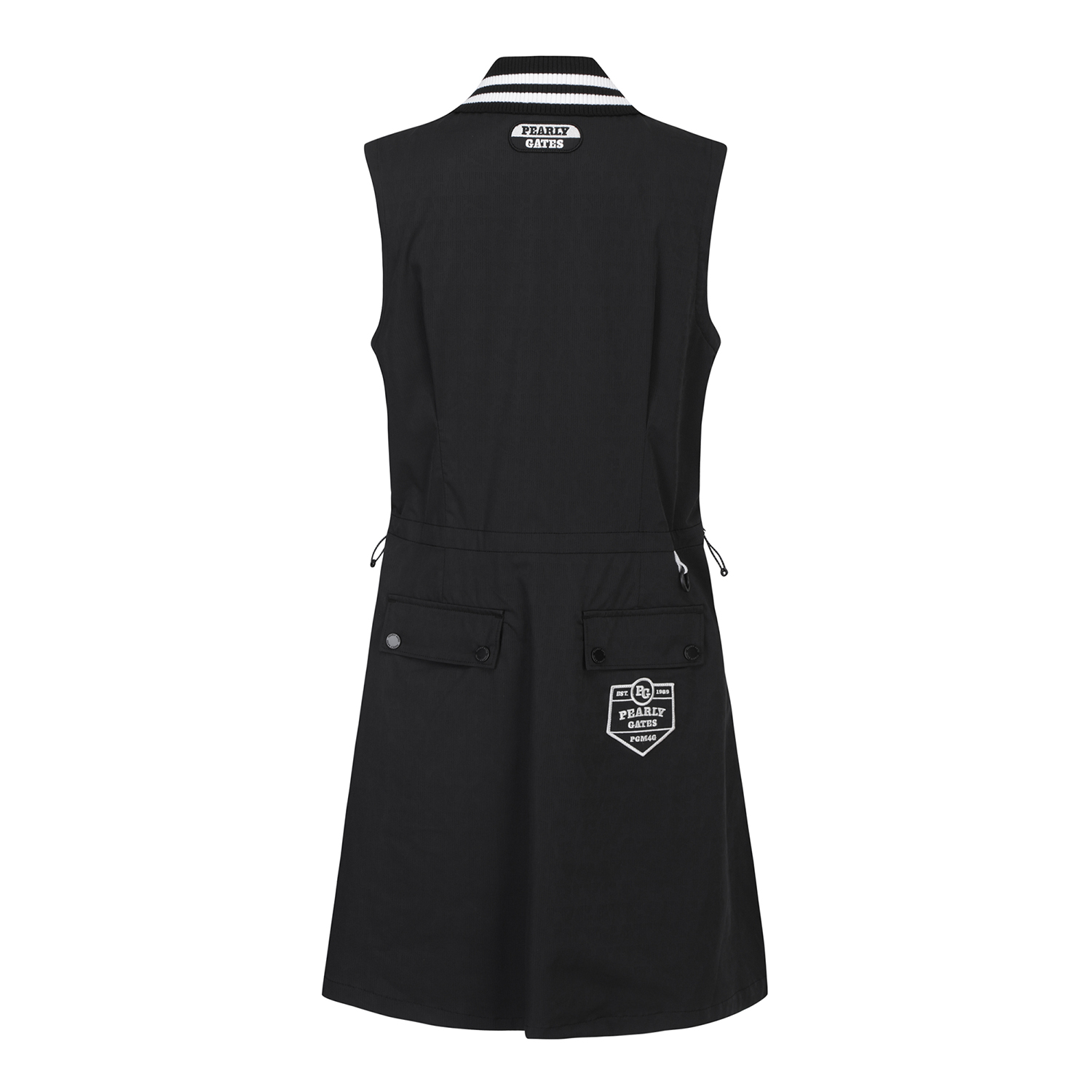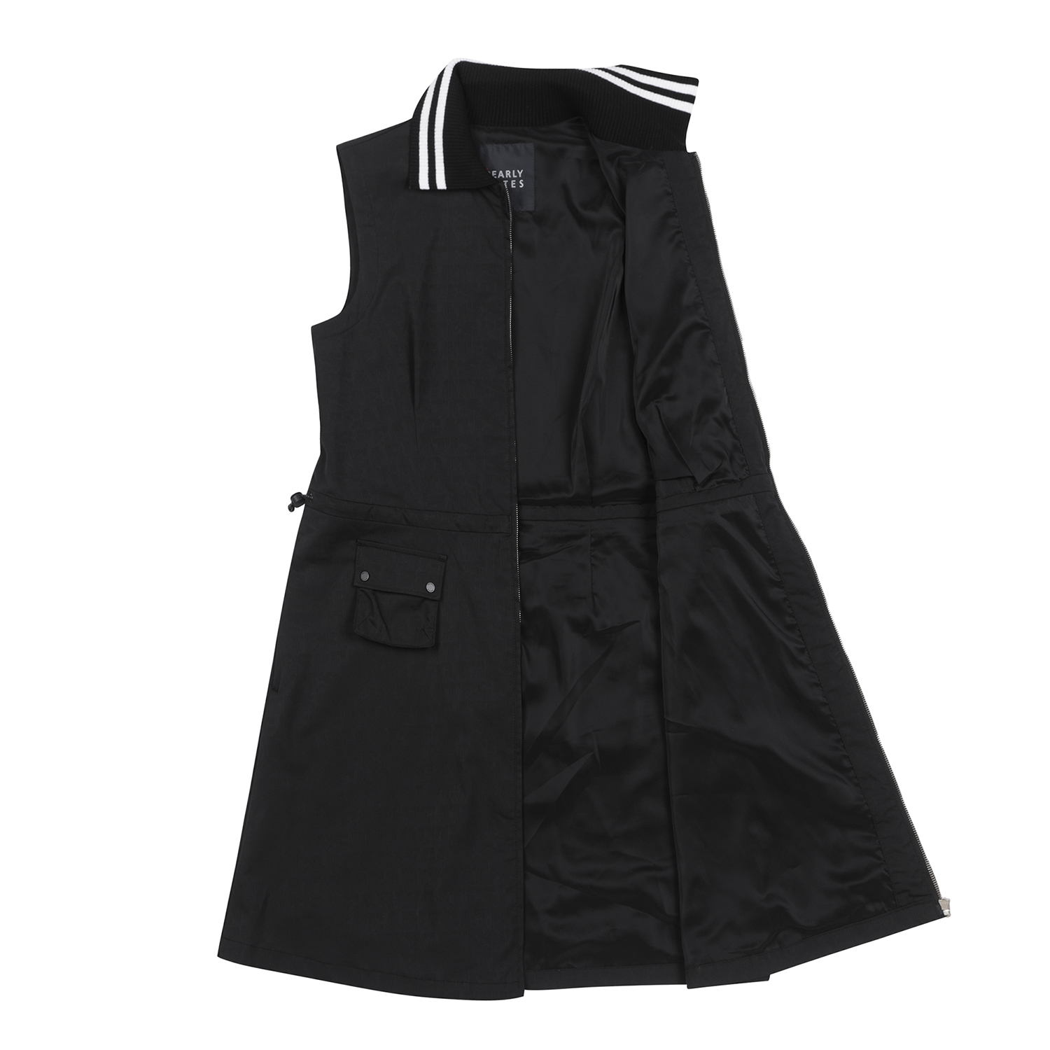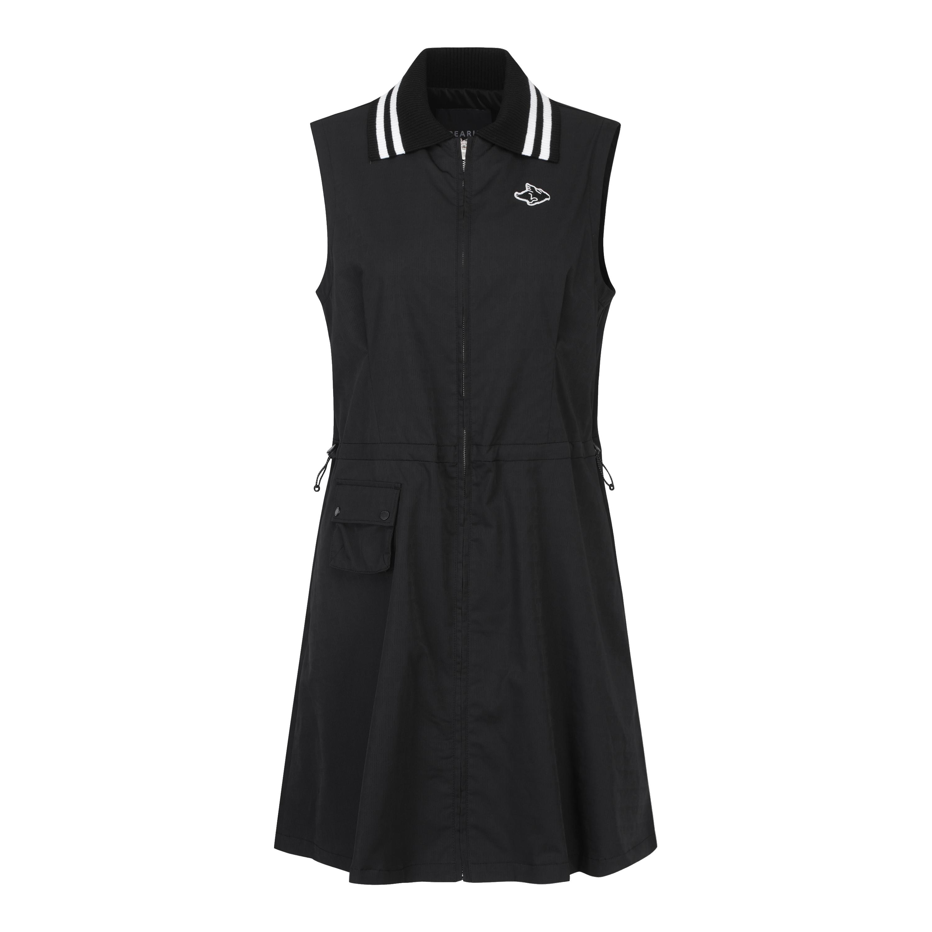 경량 자가드 소재로 캐주얼한 디자인이 포인트이며 탈착 스트링으로 자유로운 핏 조절이 가능한 풀오픈 원피스.