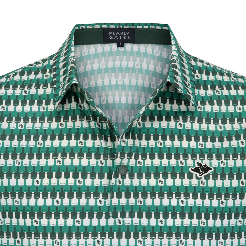 남성 기하학 패턴 쿨링 칼라 반팔 티셔츠