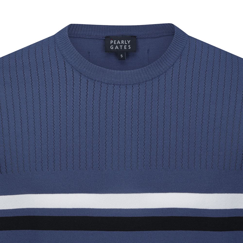 [가격인하] 남성 타공 컬러 라인 반팔 니트