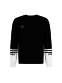 신축성이 우수하고 소프트한 원사 사용으로 편안하게 착용 가능하고, 소매에 배색 포인트를 준 디자인.