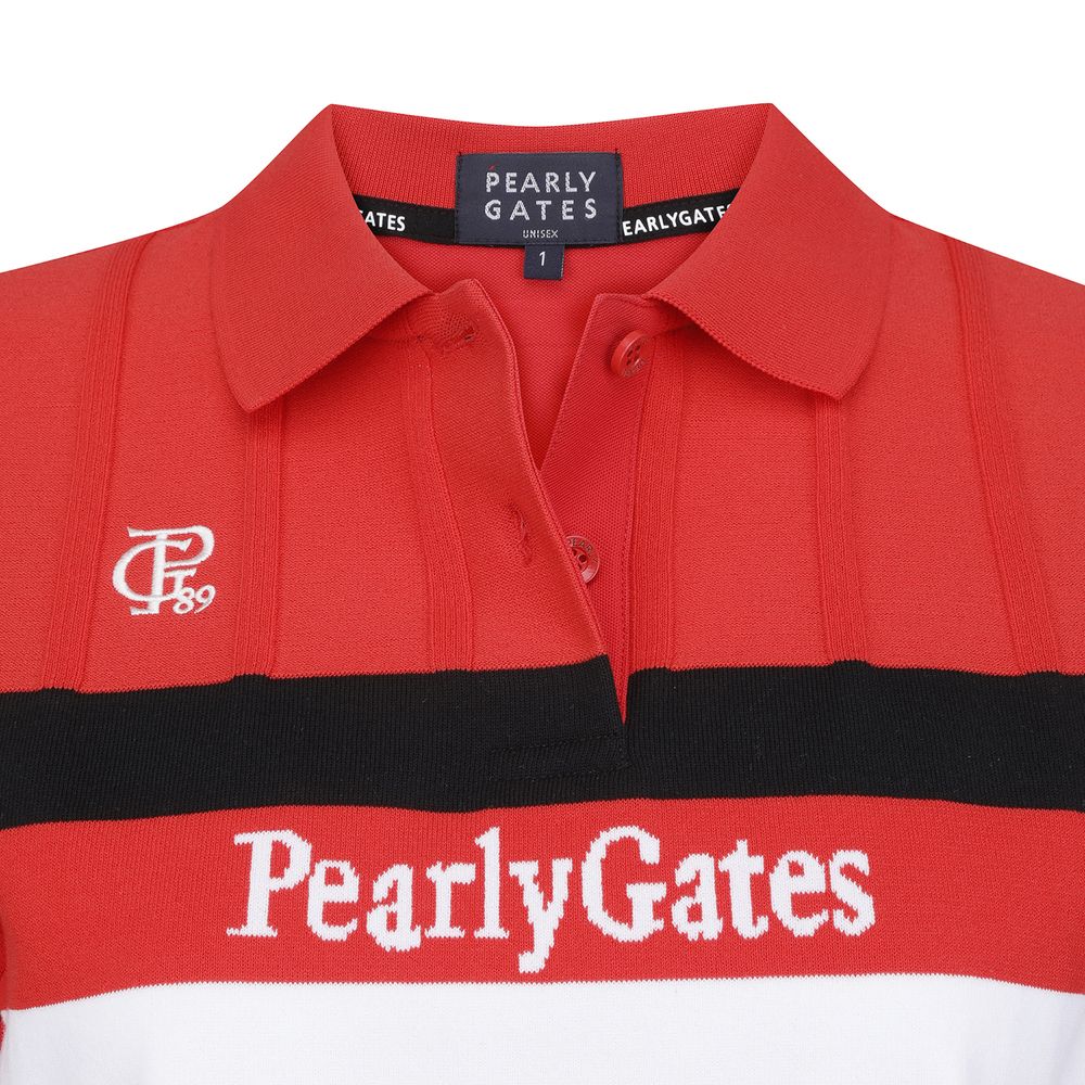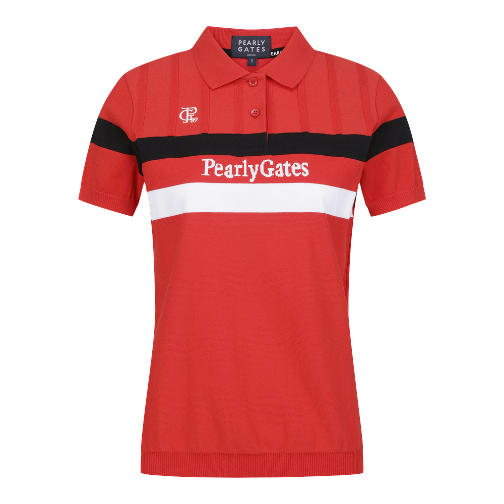 [냉감]공용 배색 라인 로고 인타샤 칼라 반팔 니트
