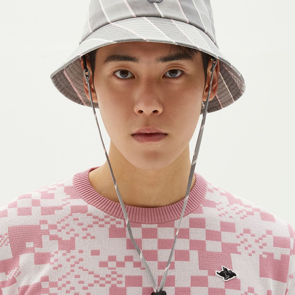 [간절기] 사선 스트라이프 패턴 UNI 버킷햇.탈부착 턱끈 포함.?SET 품번 → 521D1JV183, 521D1PC183