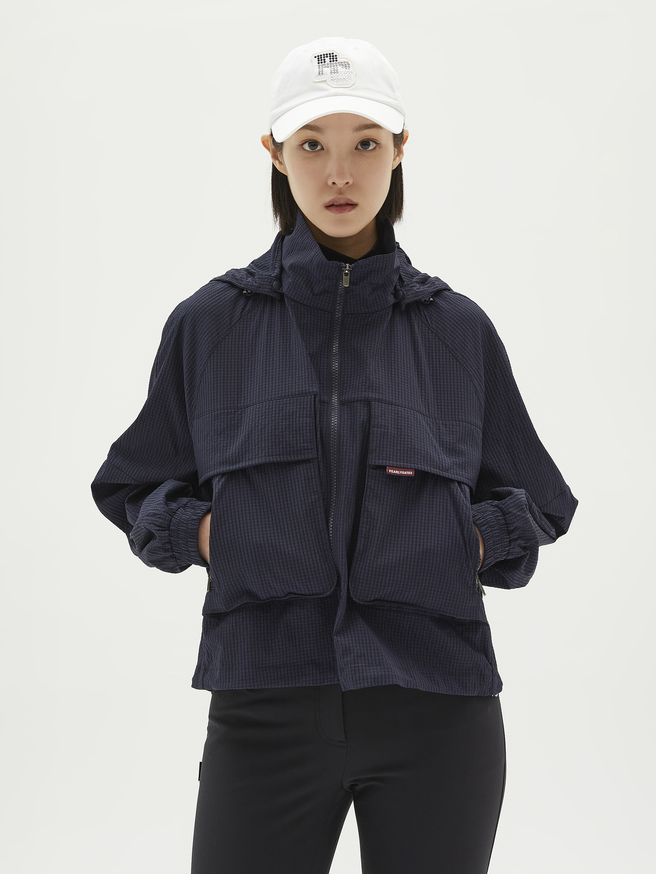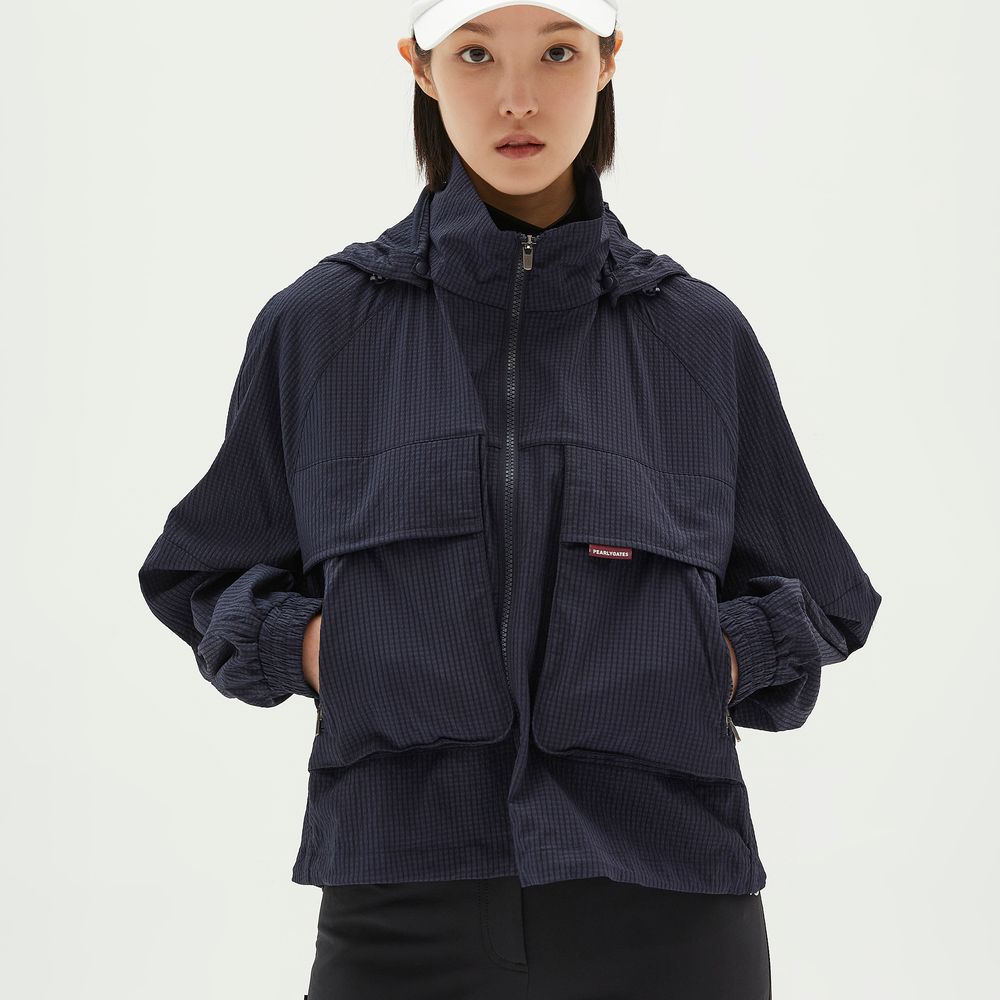 여성 시어서커 멀티 포켓 후드 집업 점퍼