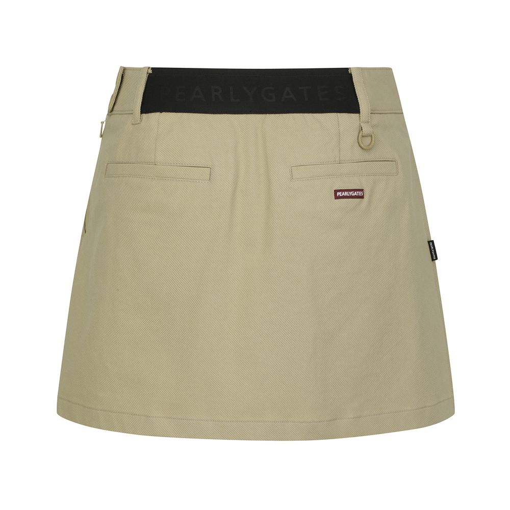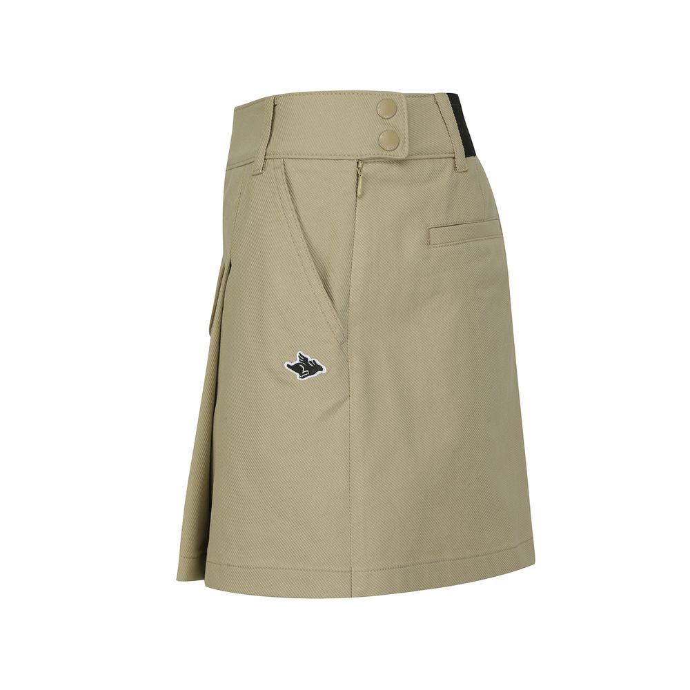 ■ 디자인수납이 용이한 포켓 디테일이 포인트인 플리츠 스커트.허리 뒤에 로고 포인트 밴드가 적용되어 편안한 착용감.볼 주머니 탈부착이 가능한 O링 디테일.신축성이 우수한 속바지가 부착되어 편안한 착용감.