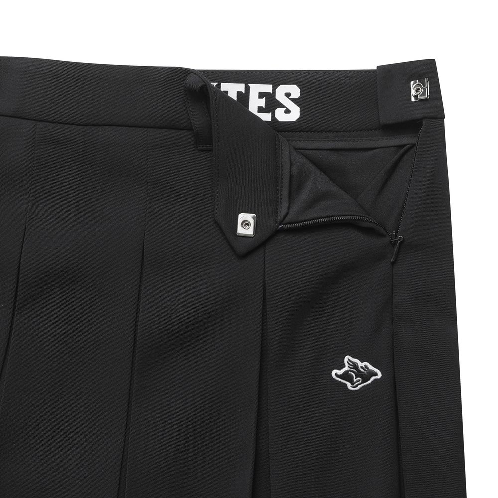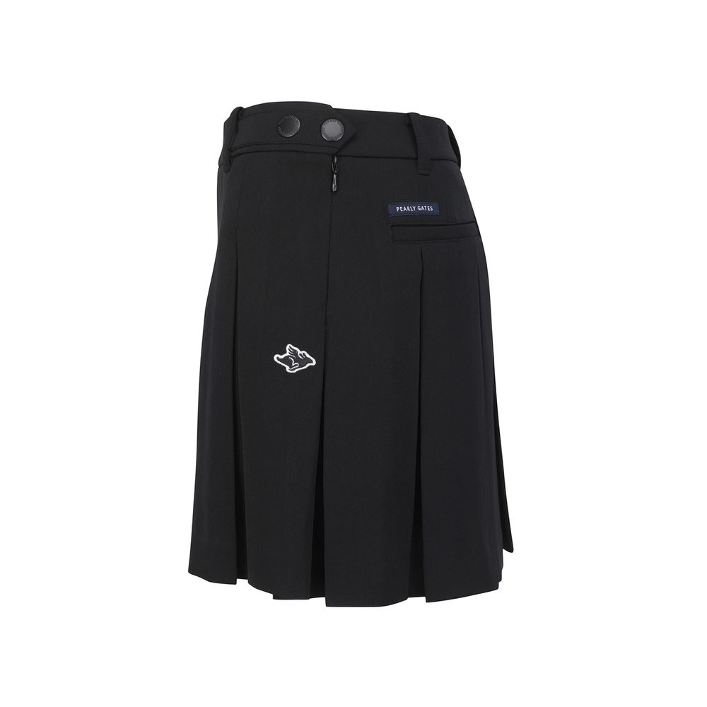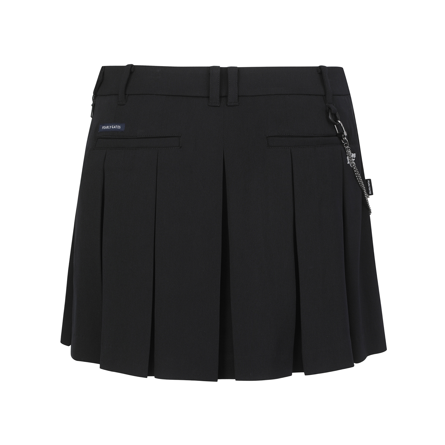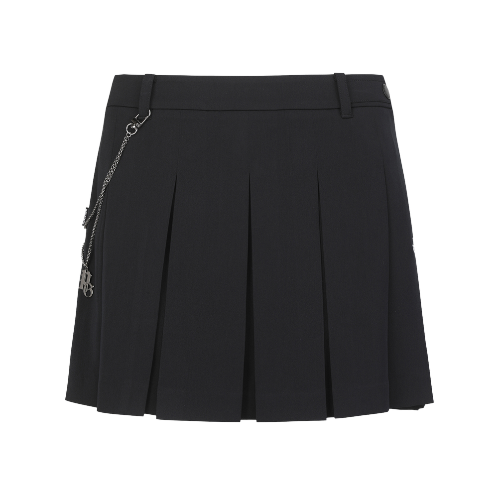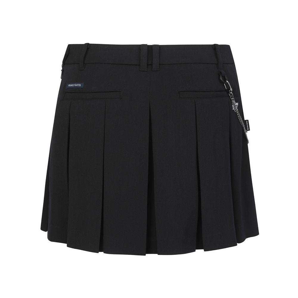 ■ 디자인체인 디테일이 포인트인 플리츠 스커트.봄에 착용하기 좋은 원단을 사용하고 코디하기 용이한 컬러를 적용.허리 왼쪽에 2중 스냅을 적용하여 착용이 용이함.볼 주머니 탈부착이 가능한 O링 디테일.신축성이 우수한 속바지가 부착되어 편안한 착용감.