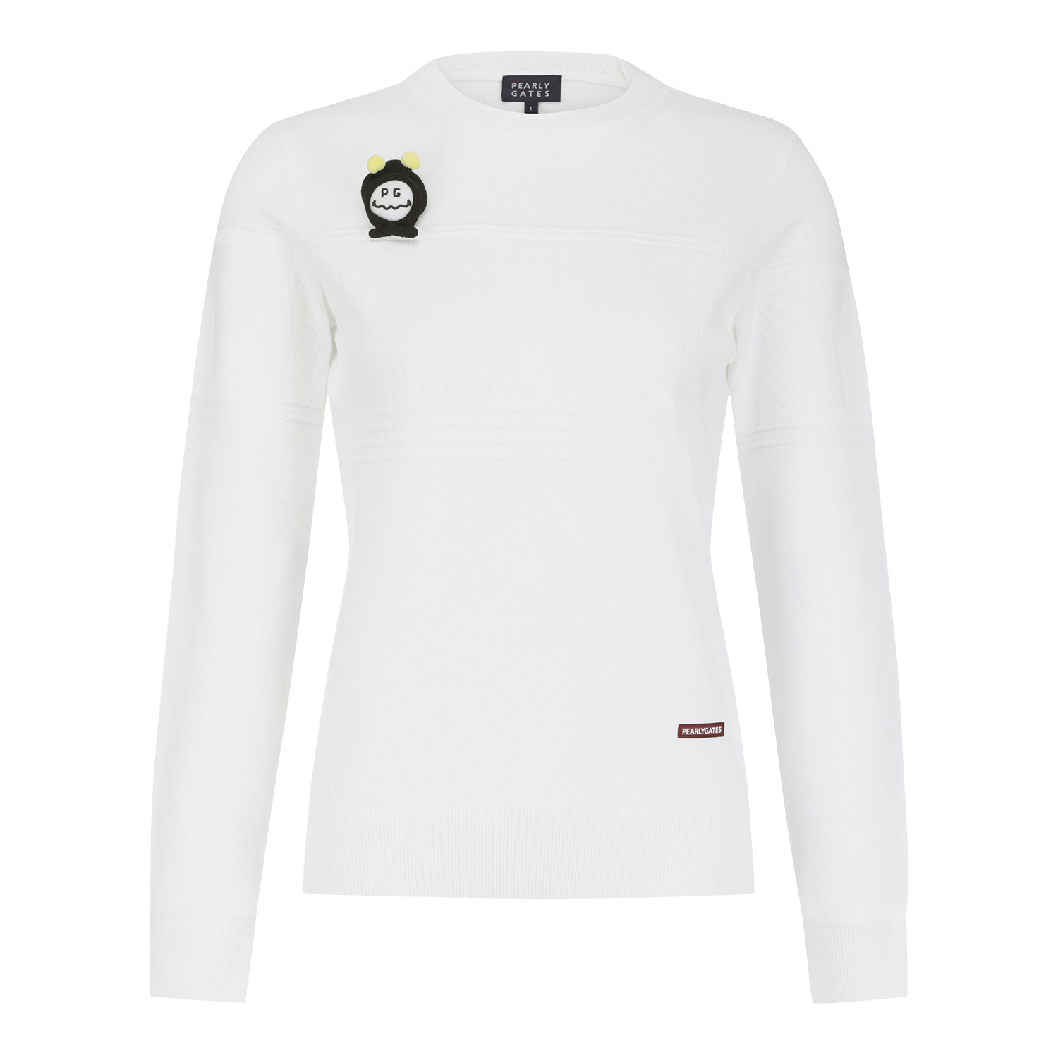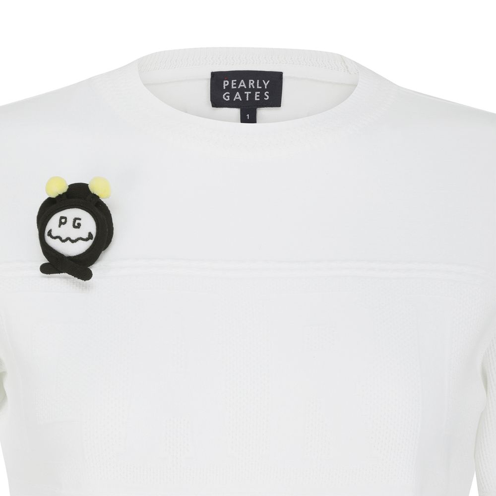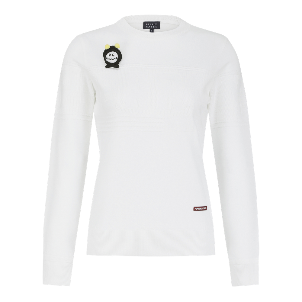 ■ 디자인: 신축성 좋고 터치감이 좋은 레이온혼방 소재의 라운드넥 니트 풀오버로고를 조직으로 표현하여 솔리드컬러 이지만 포인트가 되고,탈부착 가능한 꿀벌인형브로치가 부착됨.