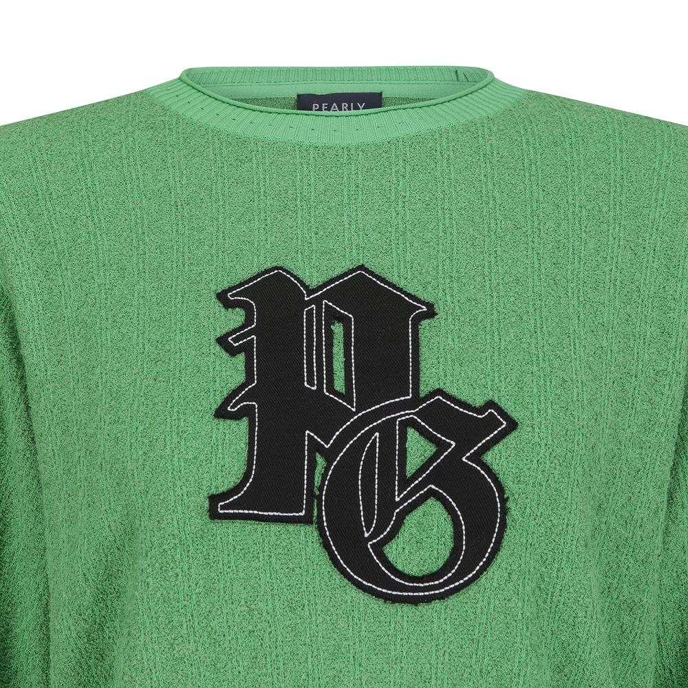 여성 엠블럼 뱃지 테리 크롭 스웨터