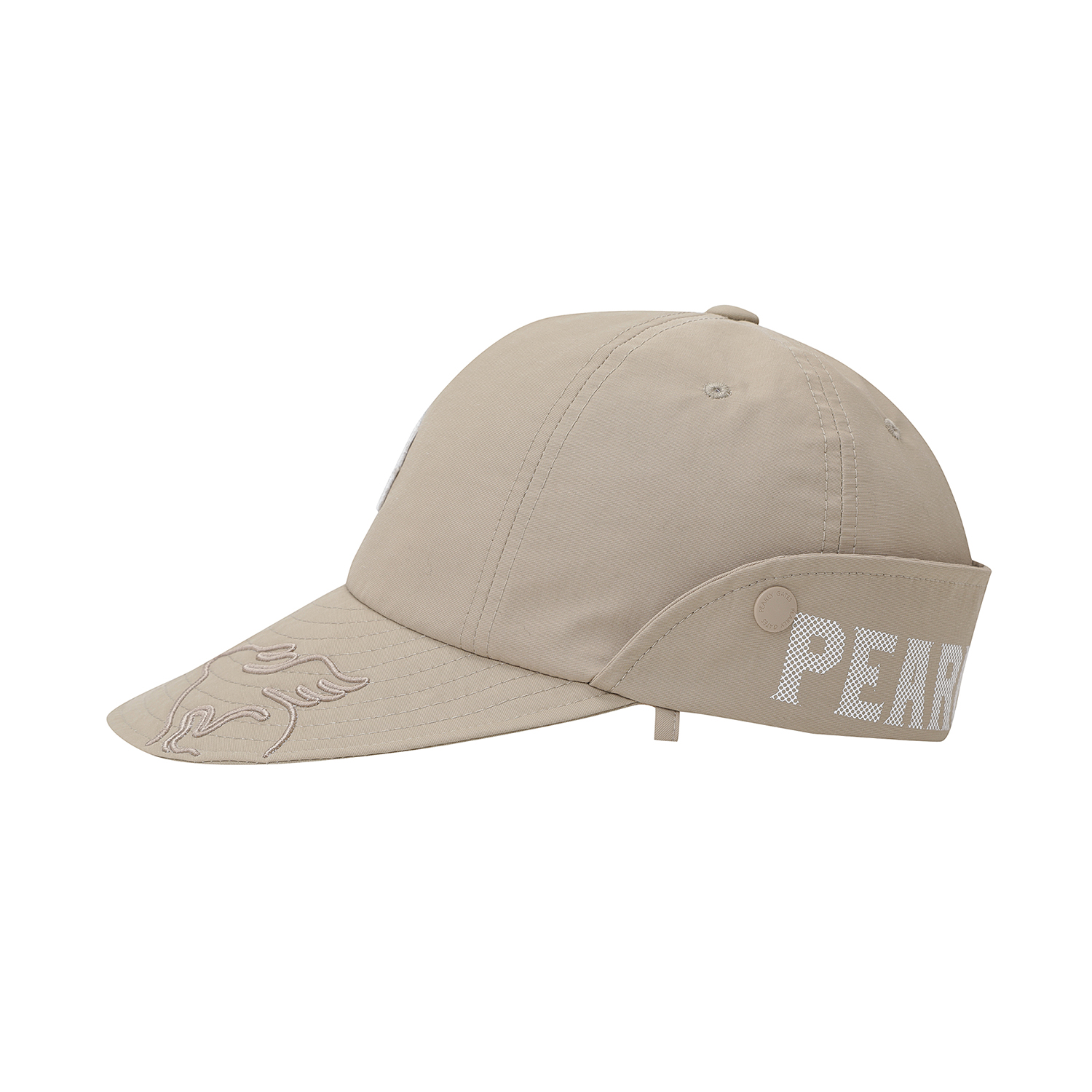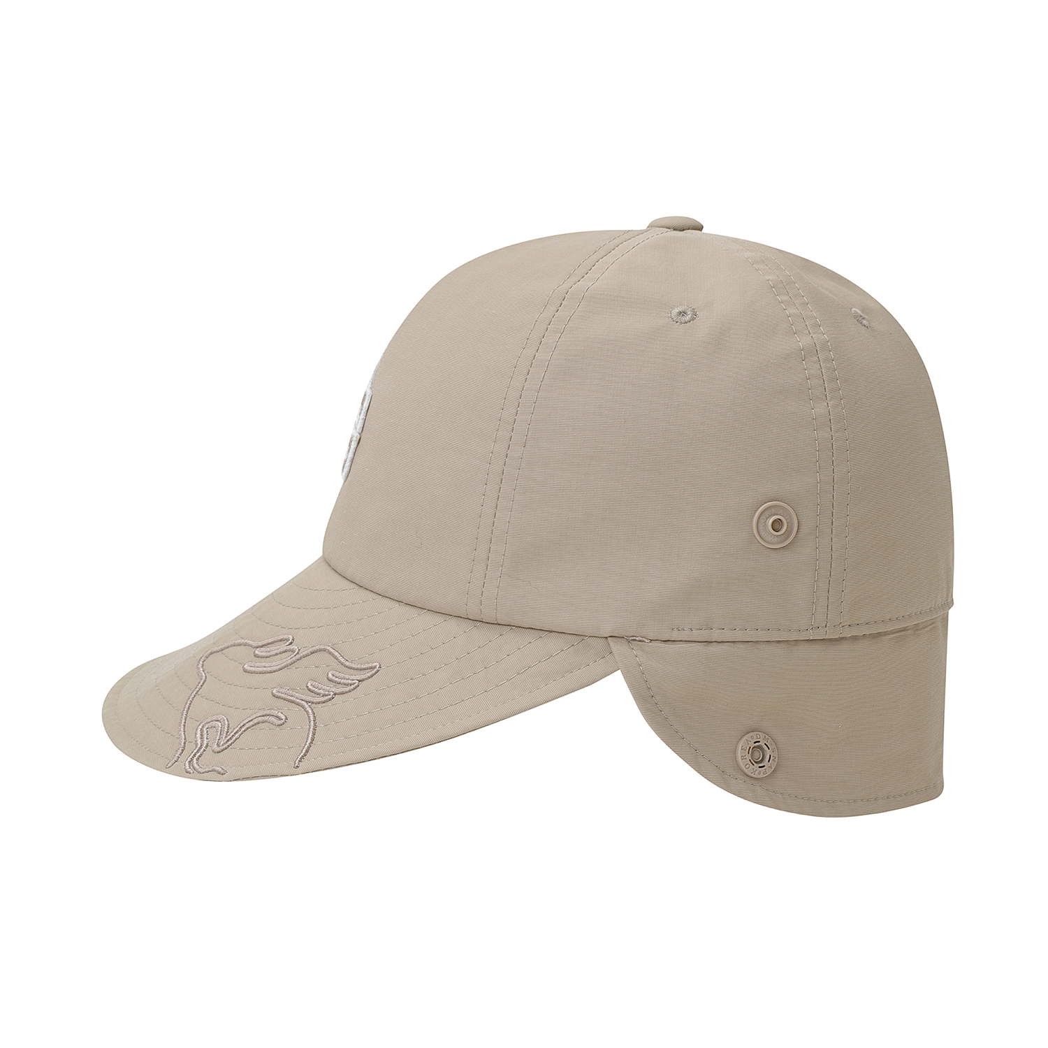 CHEERS 테마 자수와펜 포인트 여성 와이드 플랩 캡.탈부착 턱끈 포함.
