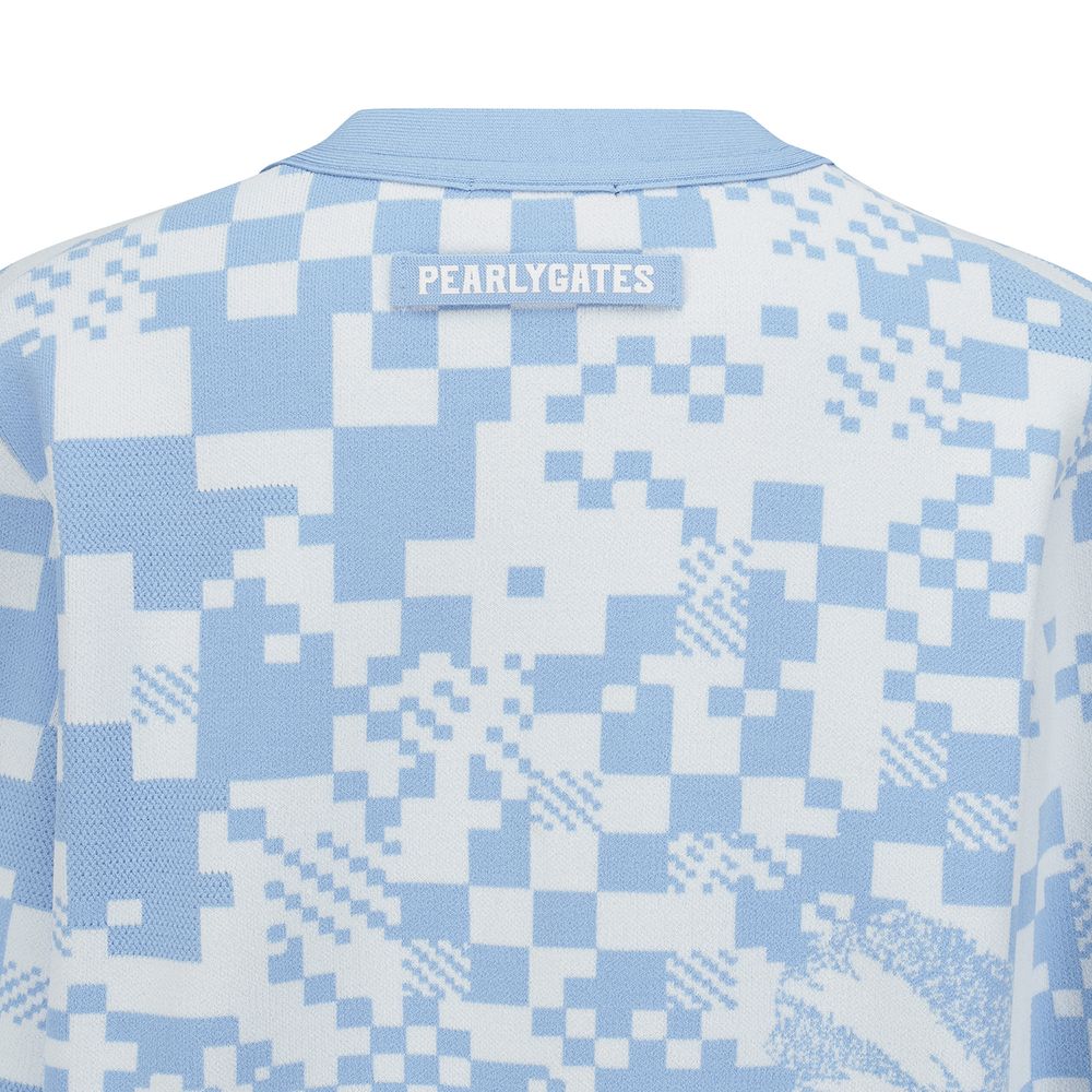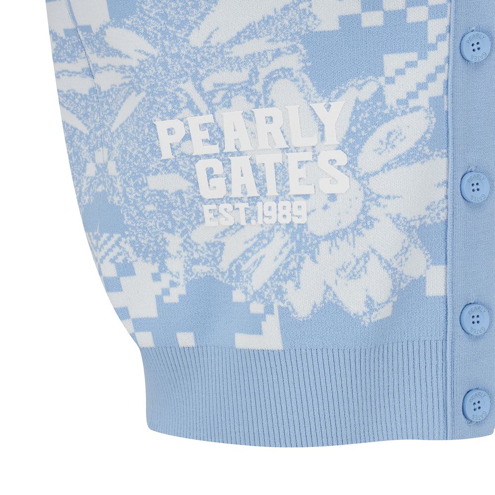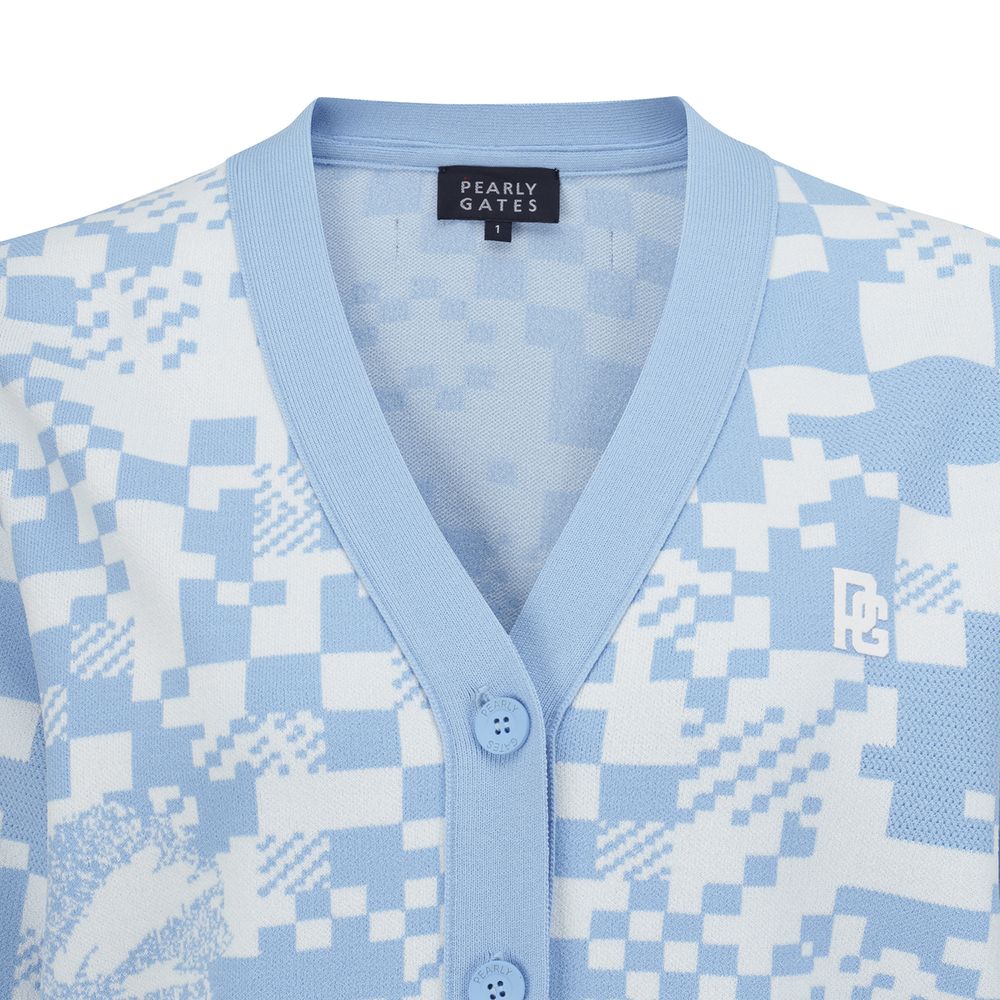 여성 체커보드 플로럴 자카드 크롭 가디건