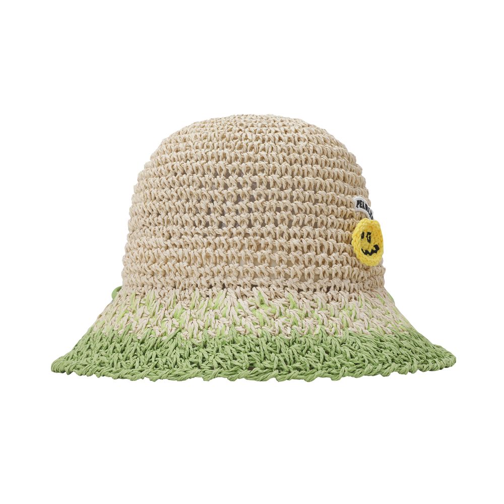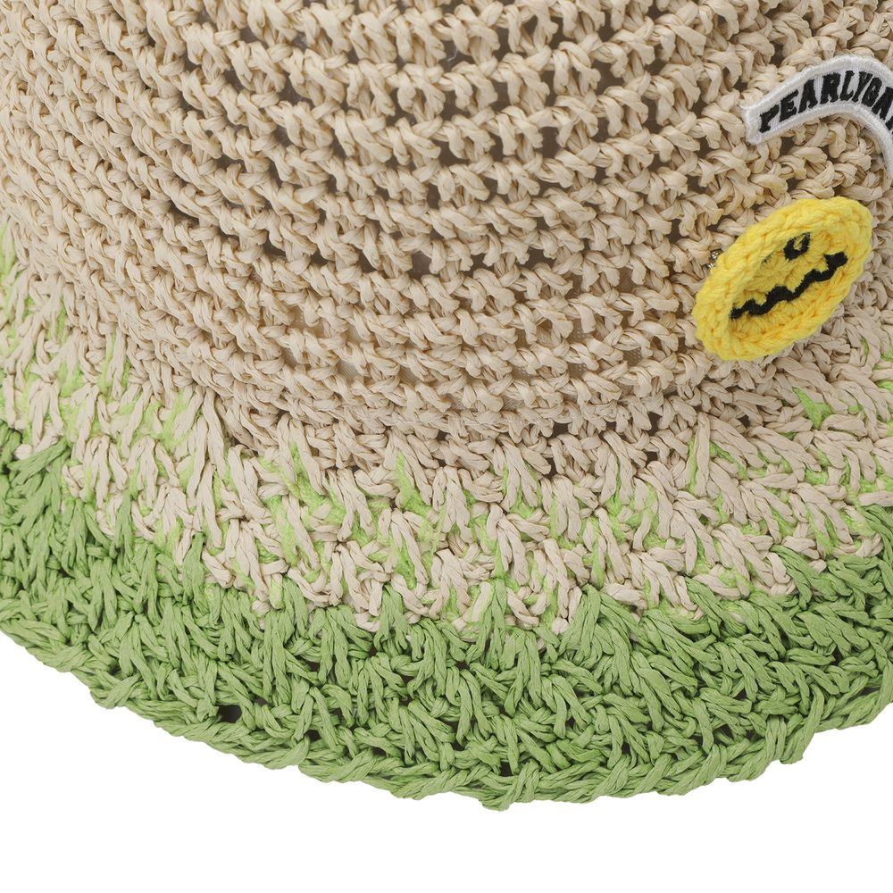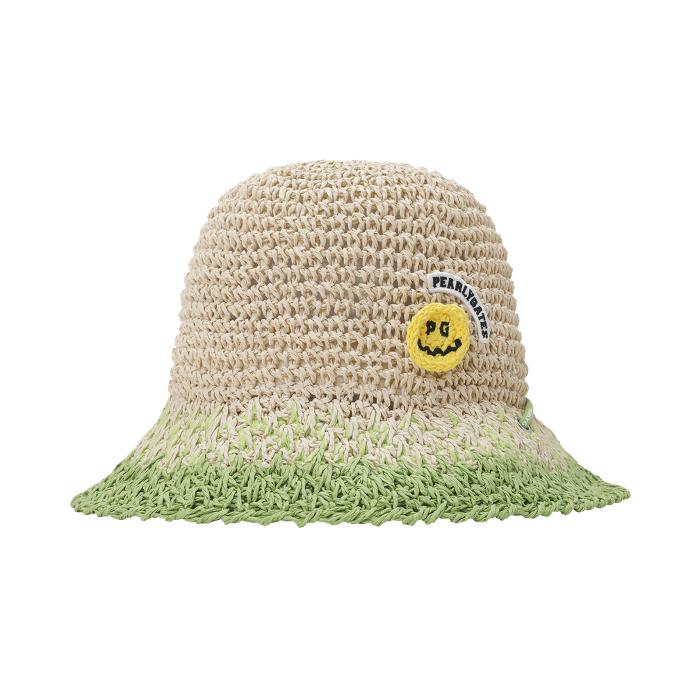 스마일 와펜 포인트 여성 천연초 햇.로고 프린트 턱끈 적용.