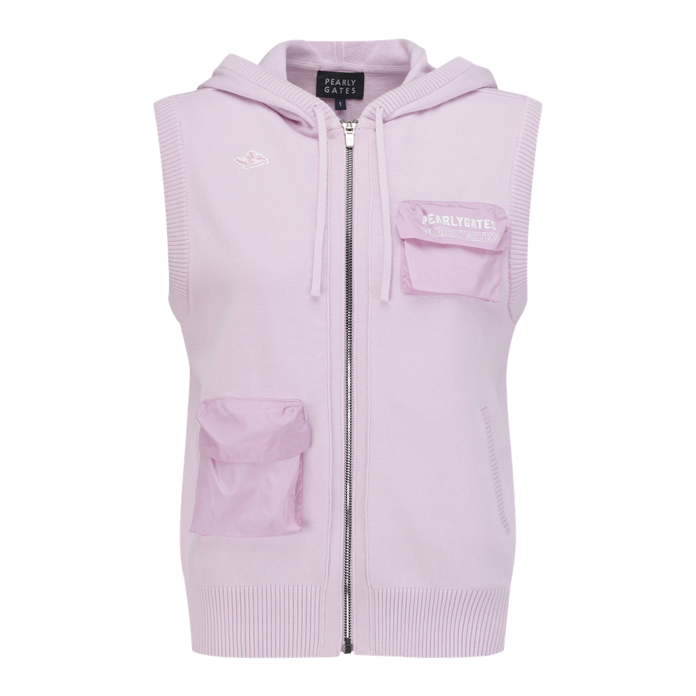 [가격 인하] 여성 우븐 믹스 멀티 포켓 집업 후드 베스트