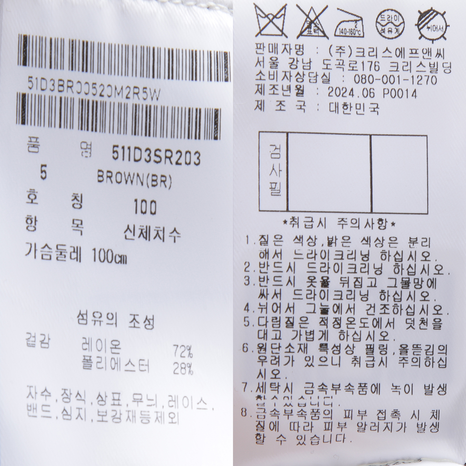 케어라벨에 표기된 사이즈는 통상적인 표준 신체 사이즈로 실측 사이즈와는 다른 점 참고 부탁드립니다.ㅤ