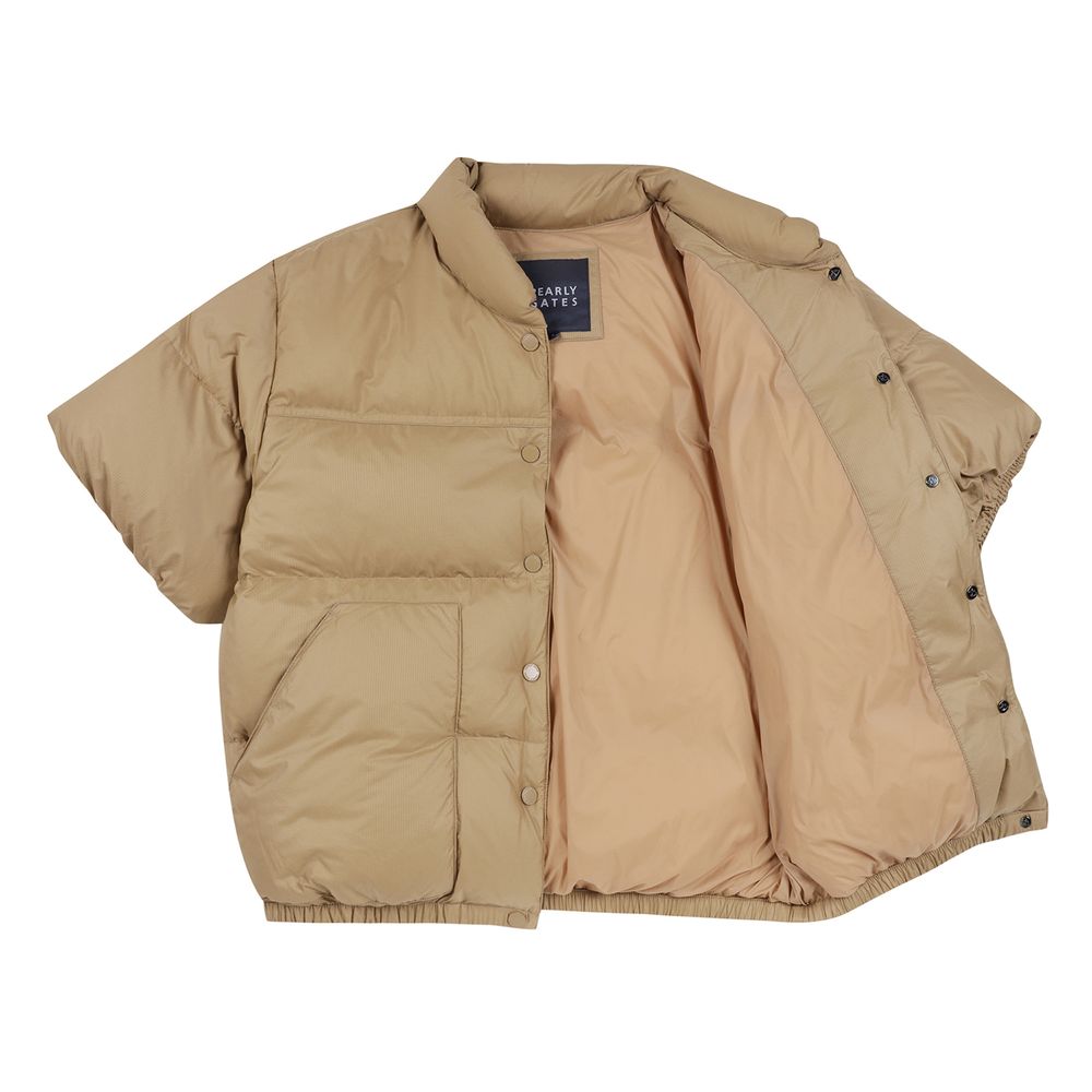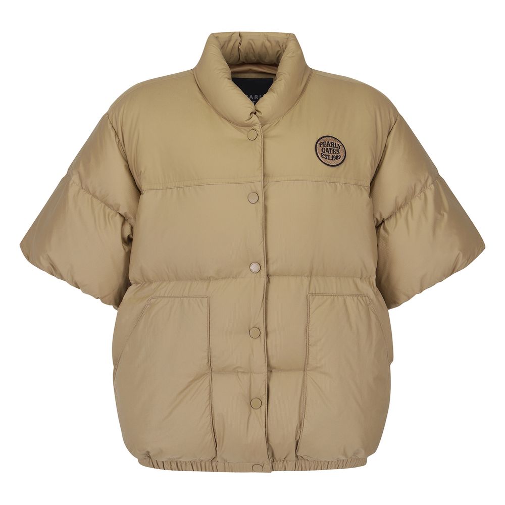 여성 5부 소매 와펜 구스 다운 점퍼