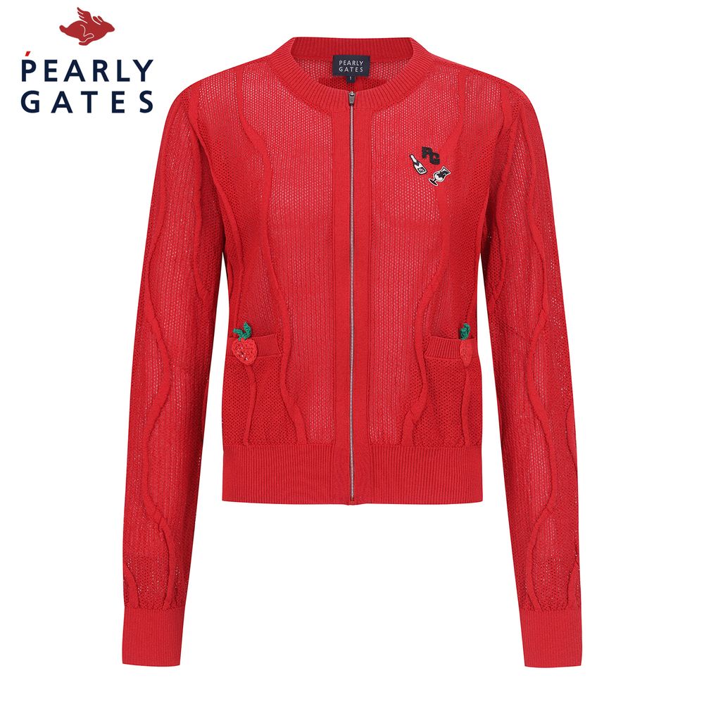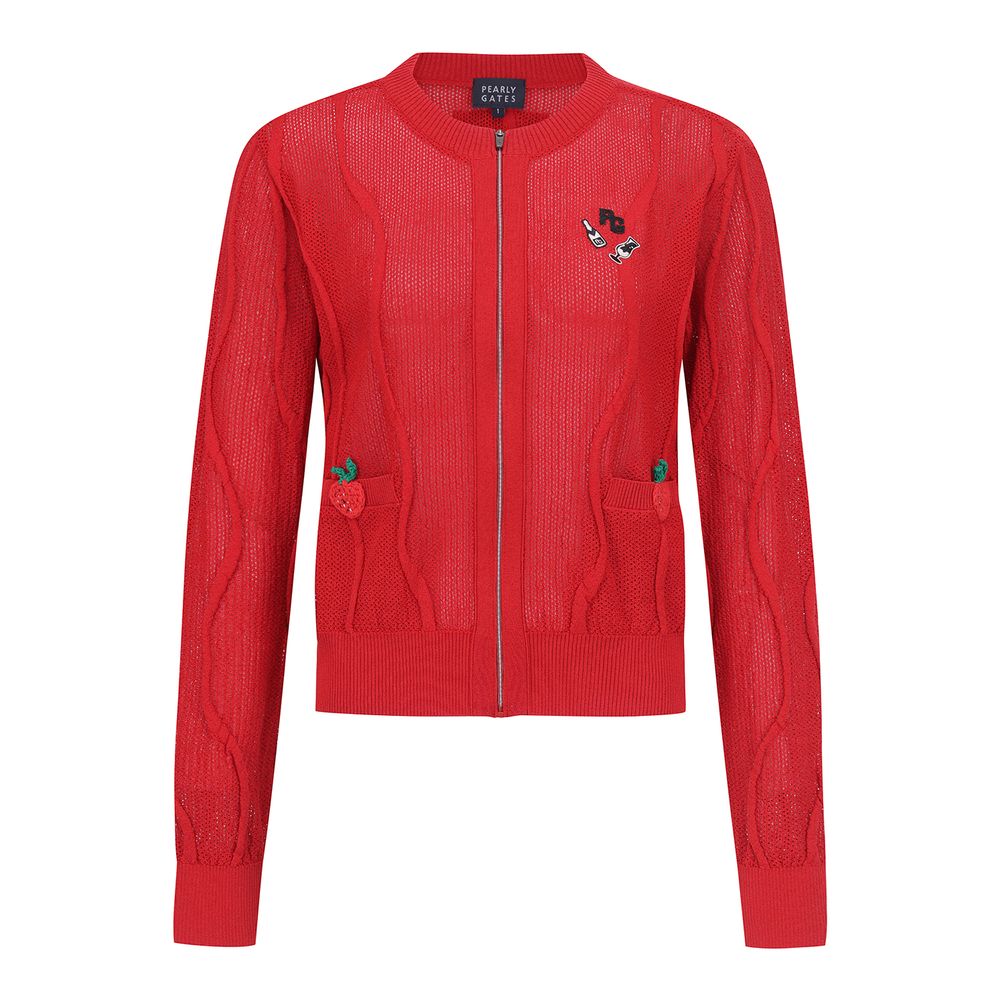 ■ 디자인: 코튼 혼방소재로 흡습성이 좋은 여름 원사소재로 편안한 착용감으로 전체 메쉬조직으로 한여름까지 시원하게 착용가능한 라운드넥 집업 가디건.PG 35주년 라인의 자수와 딸기손자수 아트웍 포인트.■ 코디 : 521D2TI103,521D2PC504,521D2PS505 ■ 핏: 클래식