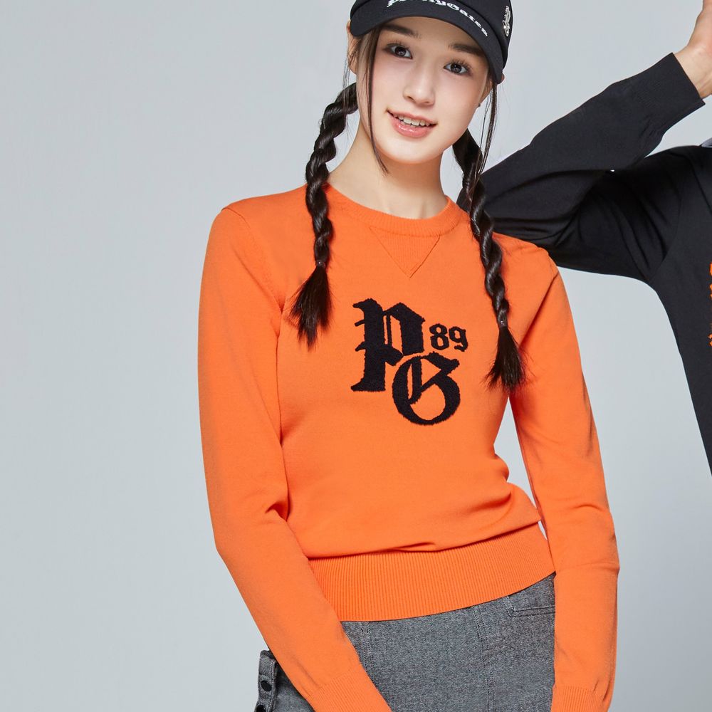 여성 배색 부클 로고 긴팔 니트