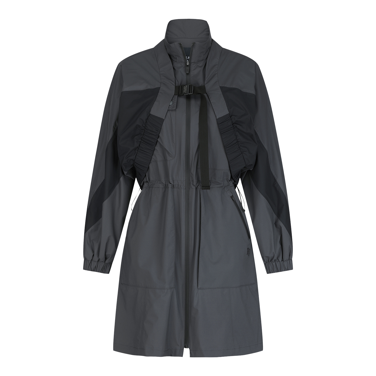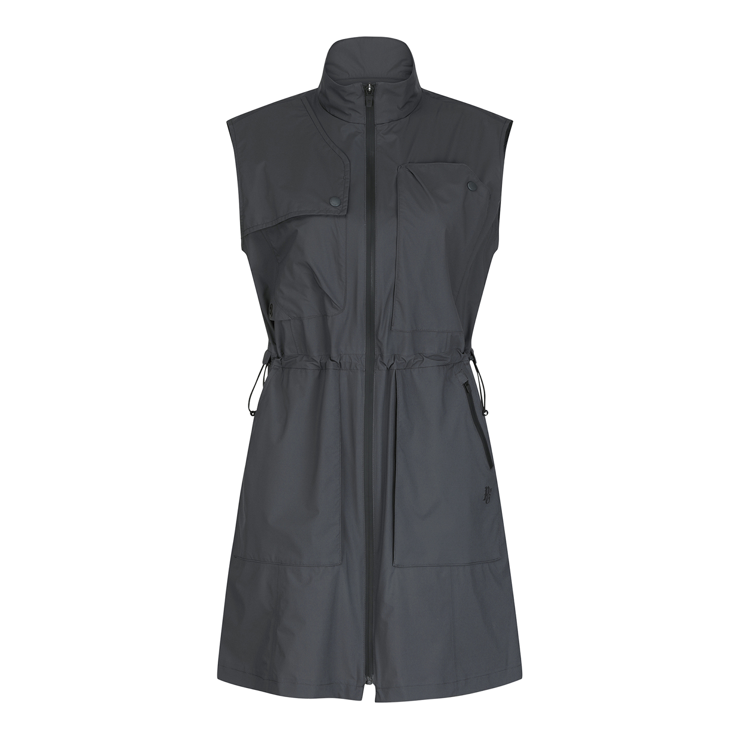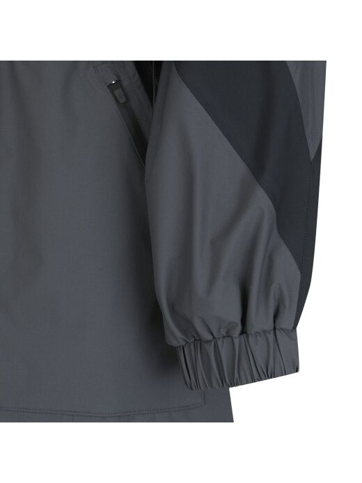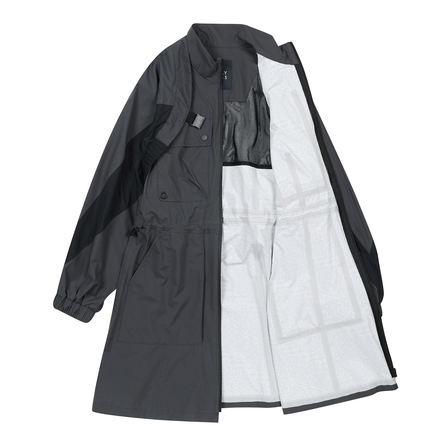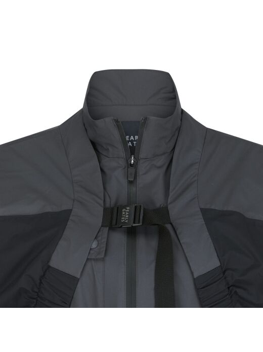 ■ 디자인볼레로 점퍼와 롱기장 베스트가 세트인 2 in 1 비옷.방수 코팅 원단과 심실링 작업을 통해 우천시에도 라운딩이 가능.등판 후라쉬로 통기성을 부여하고 허리 스트링으로 핏 조절 가능.다양한 사이즈의 포켓 디테일로 수납이 용이함.