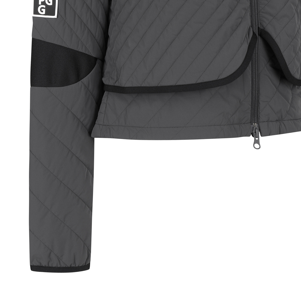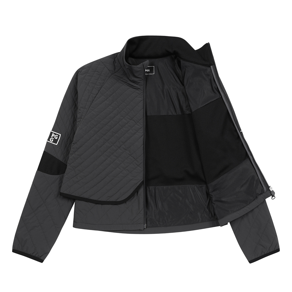 여성 우븐 블록 레이어드 사선 퀼팅 점퍼