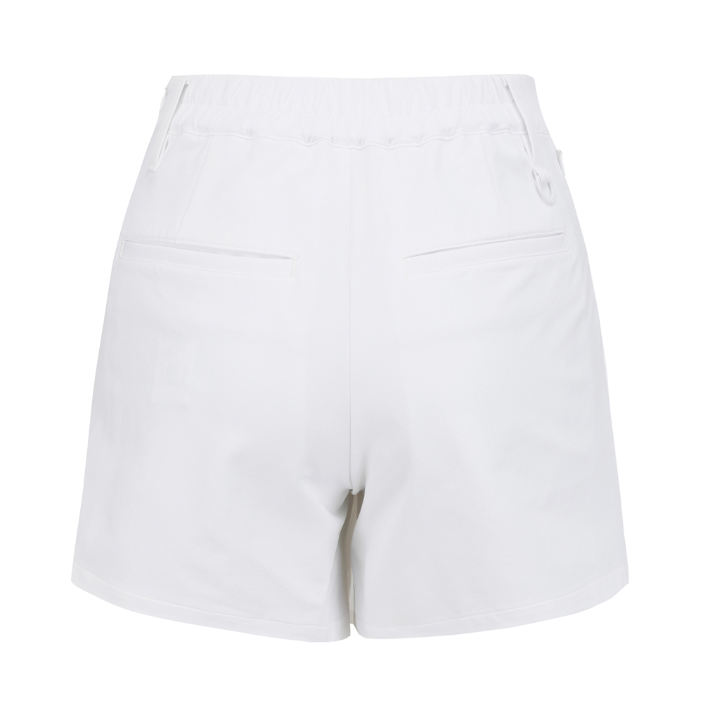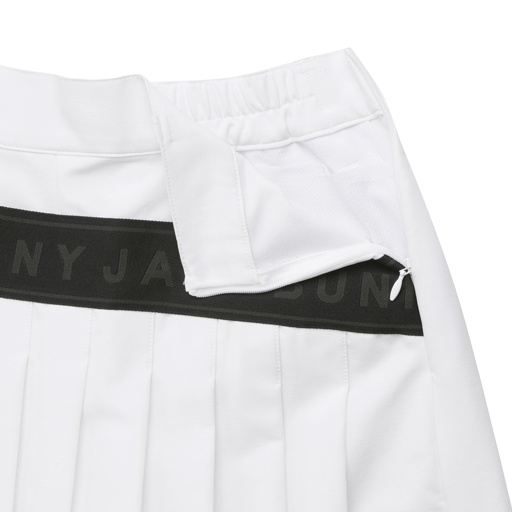 ■ 디자인움직일 때마다 하늘하늘한 디테일로 단번에 코디를 화사하게 만들어주는 2WAY 도비 스트레치랩 스커트풍 숏 팬츠.플리츠가 심하게 퍼지지 않도록 자가드 로고 테이프로 볼륨감을 줄여 디자인성과 쾌적성을 높임.뛰어난 스트레치성과 표면감이 있는 도비 짜임으로 제작되어 실루엣으로 귀여움을 표현하면서도 가볍고 활동성이 편안함을 체감할 수 있는 아이템.우아하고 스커트 같은 외형이면서도, 반바지 감각으로 입을 수 있는 것도 포인트.