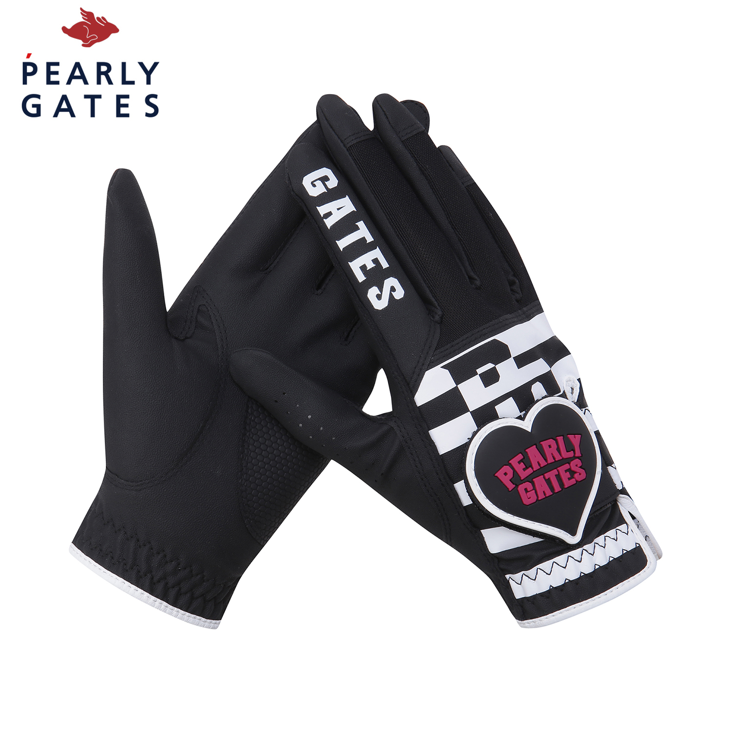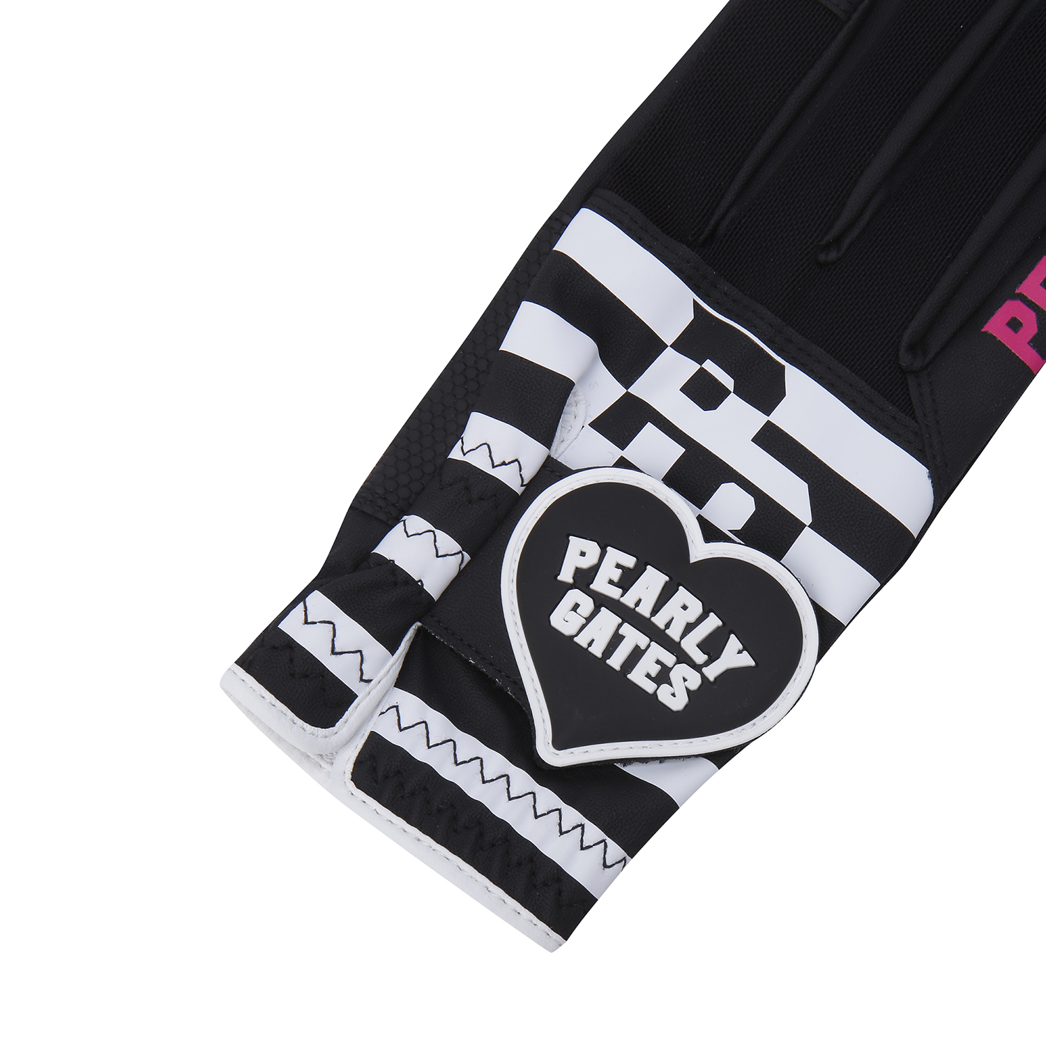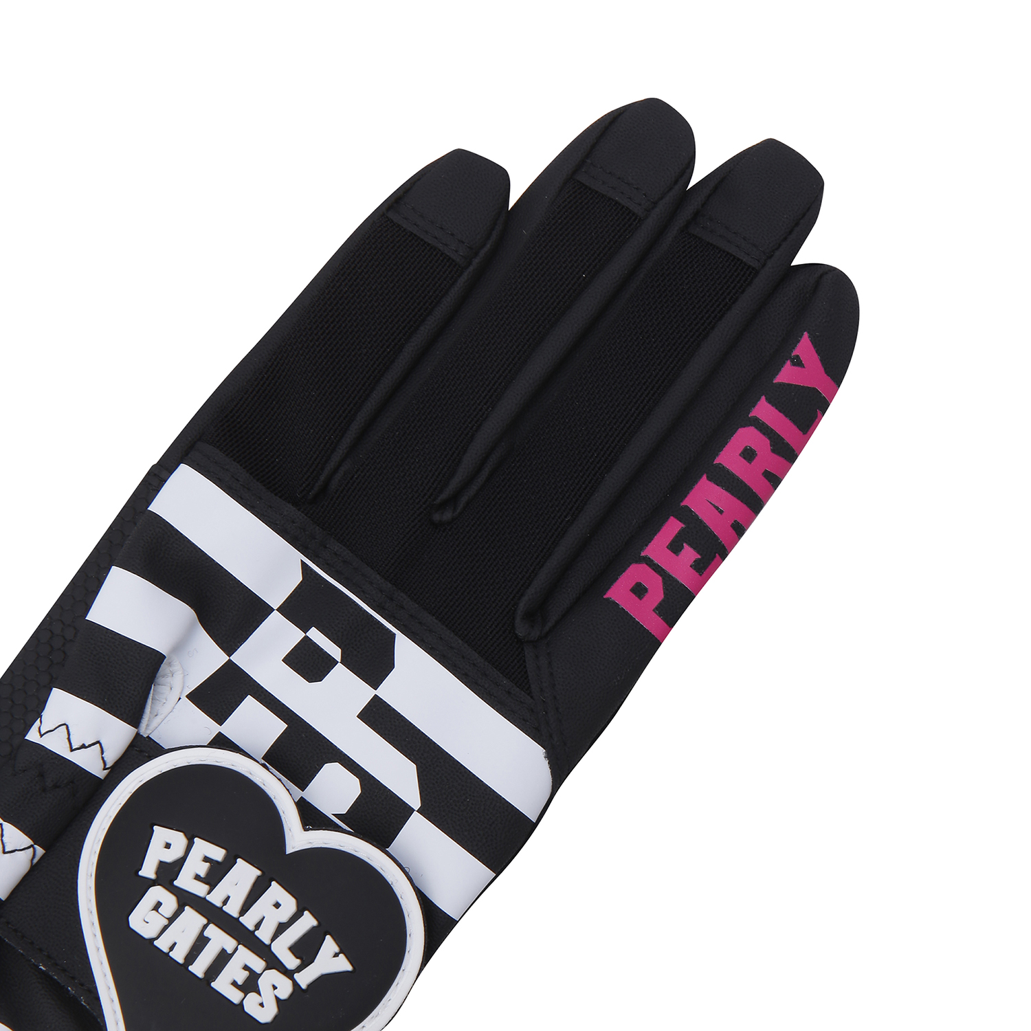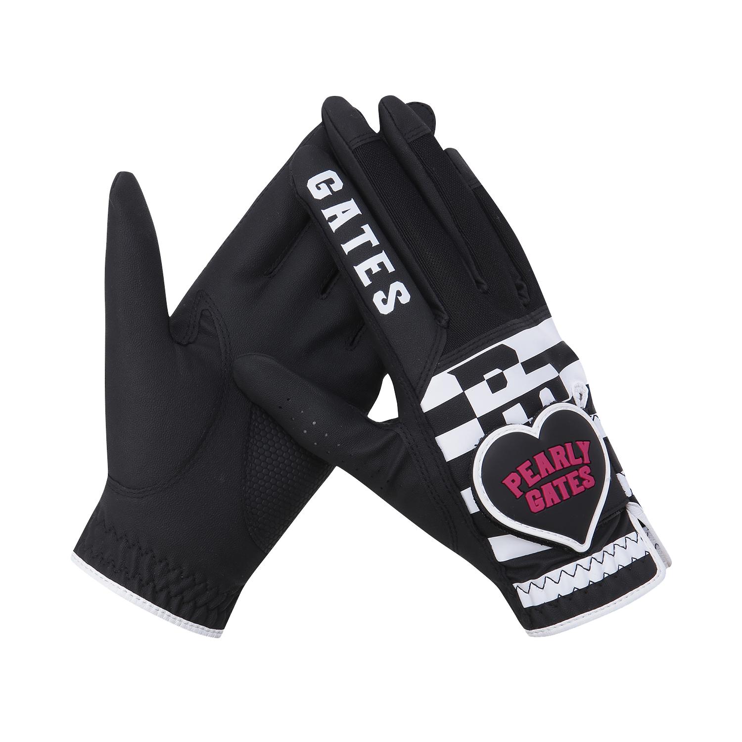 WITH YOU 테마 로고 스트라이프 프린트 메쉬 양손 장갑.부분 합피 소재 적용.하트 와펜 디테일 적용.