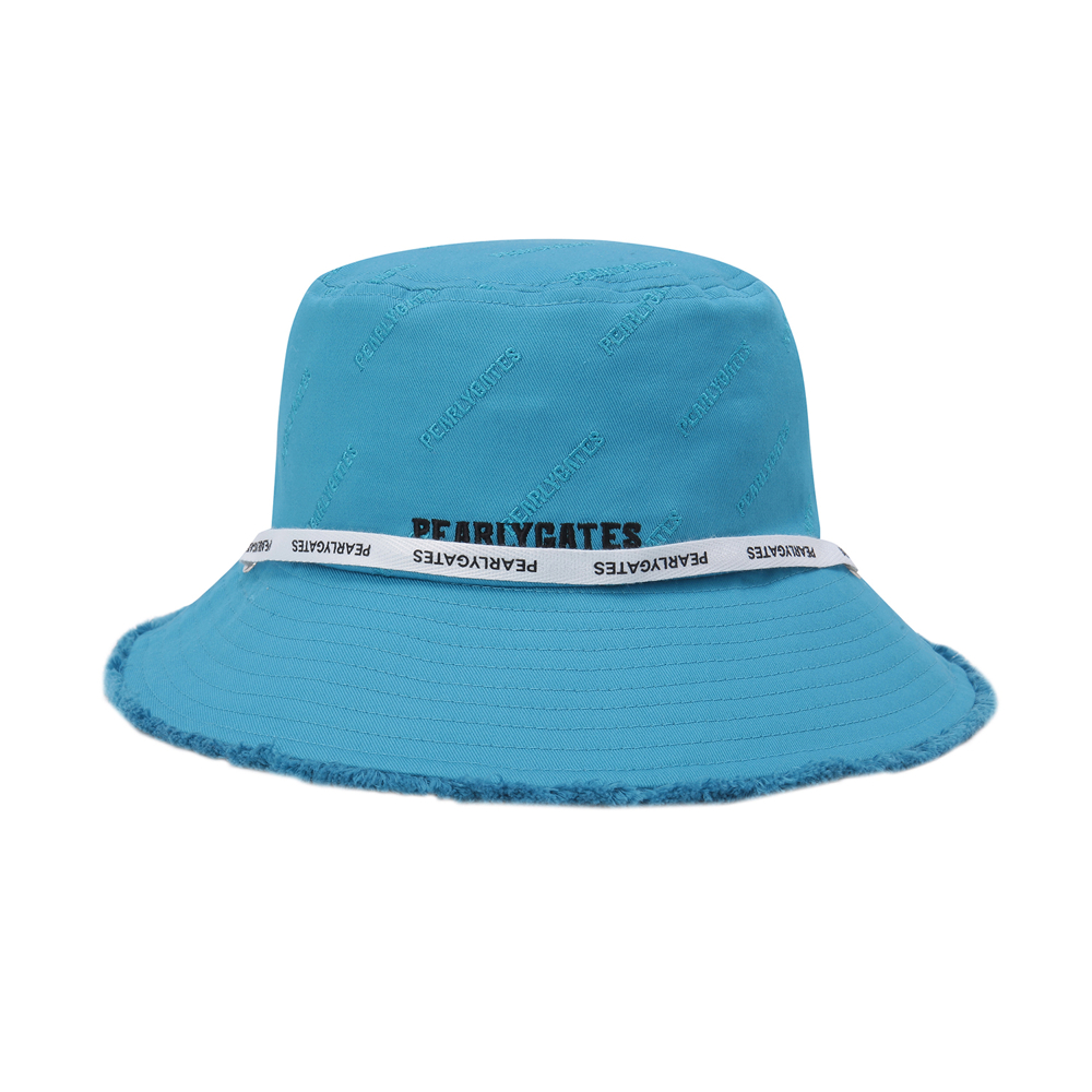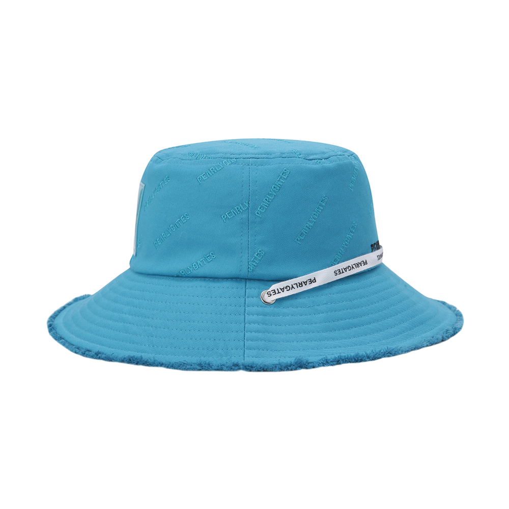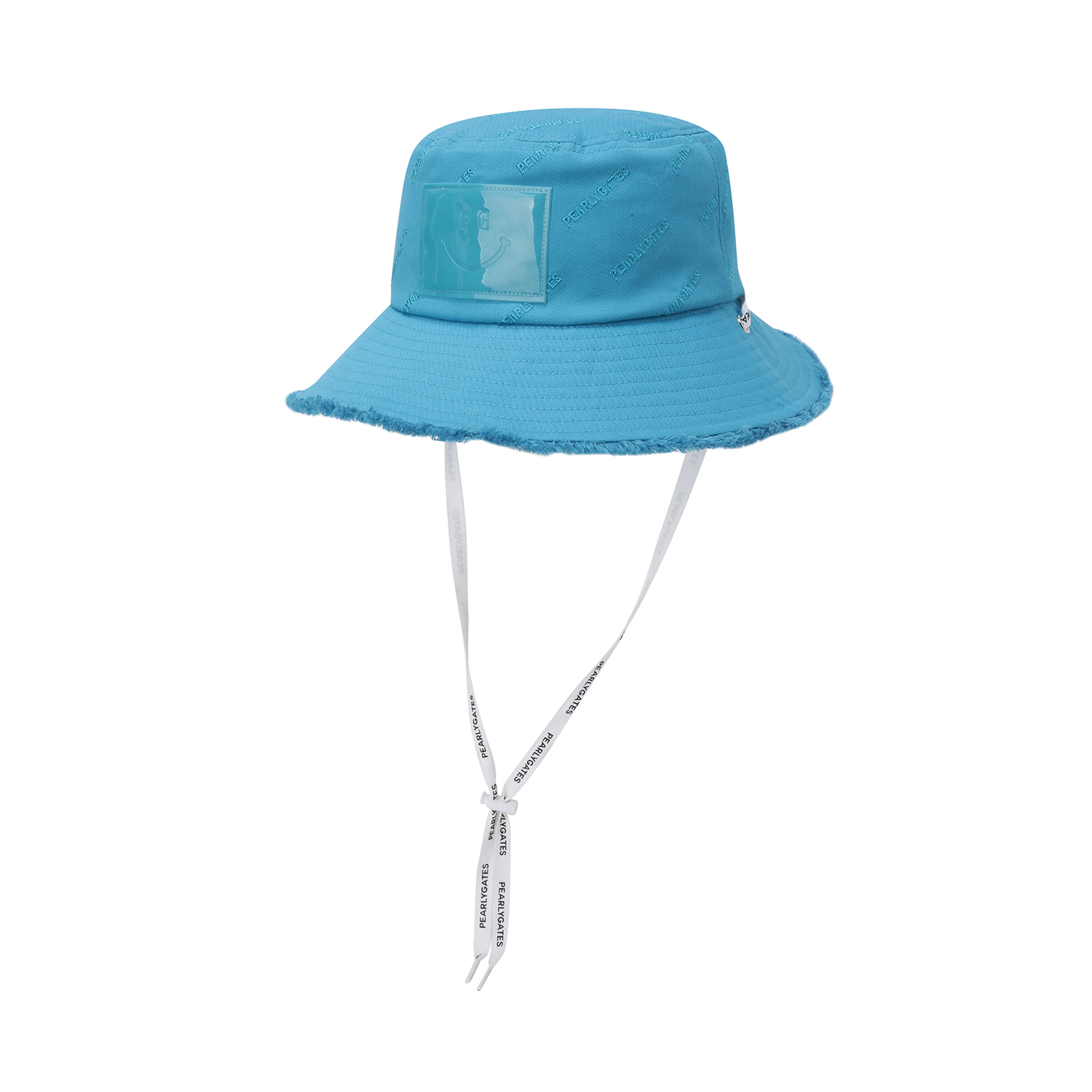 AQUA JUNGLE 테마 젤리 스마일 와펜 포인트 여성 버킷햇.전판 로고 자수 디테일 적용.로고 프린트 턱끈 포함.