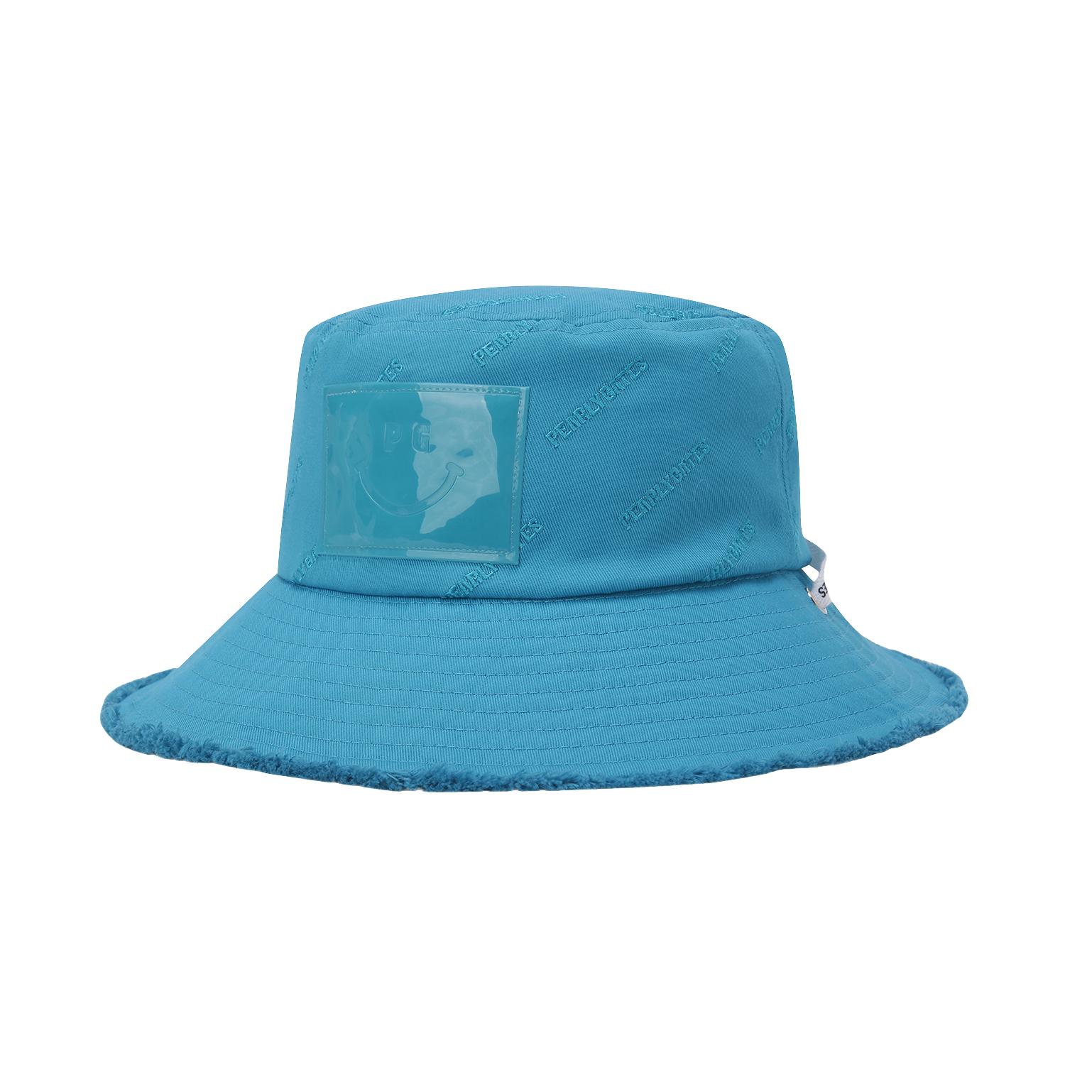 여성 스마일 로고 자수 프레이드 버킷햇