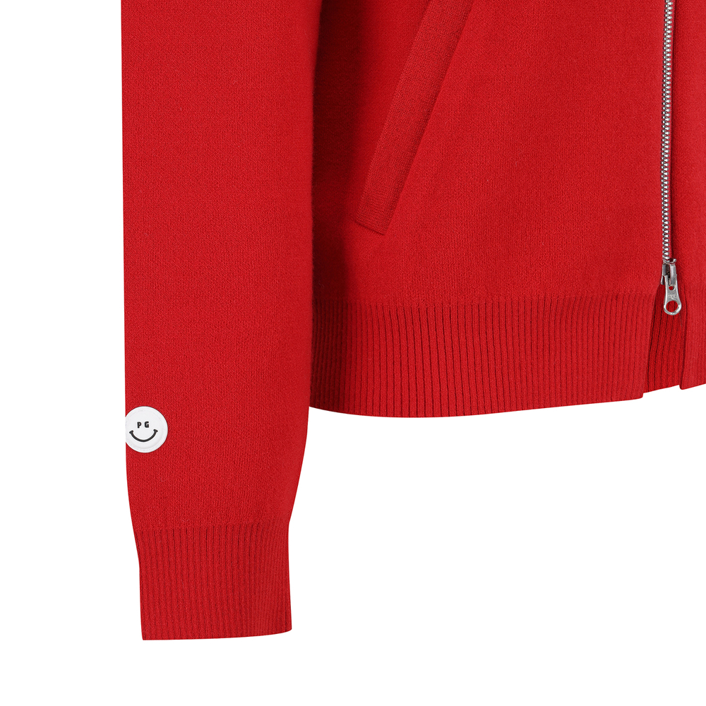 Super Merino Wool 100 소재를 이중직으로 탄탄하게 편직 한 니트 집업 가디건 스타일.부드러운 터치감과 백면에는 폴리 원사로 편직하여 가볍고 쾌적하게 착용 가능.안쪽은 배색 스트라이프로 포인트를 주었으며, 스트링에 와펜장식이 포인트.투웨이 지퍼로 실용성을 높이고, 밑단에 트임을 주어 디자인에 재미를 줌.테마: I ♥ PG핏: 클래식