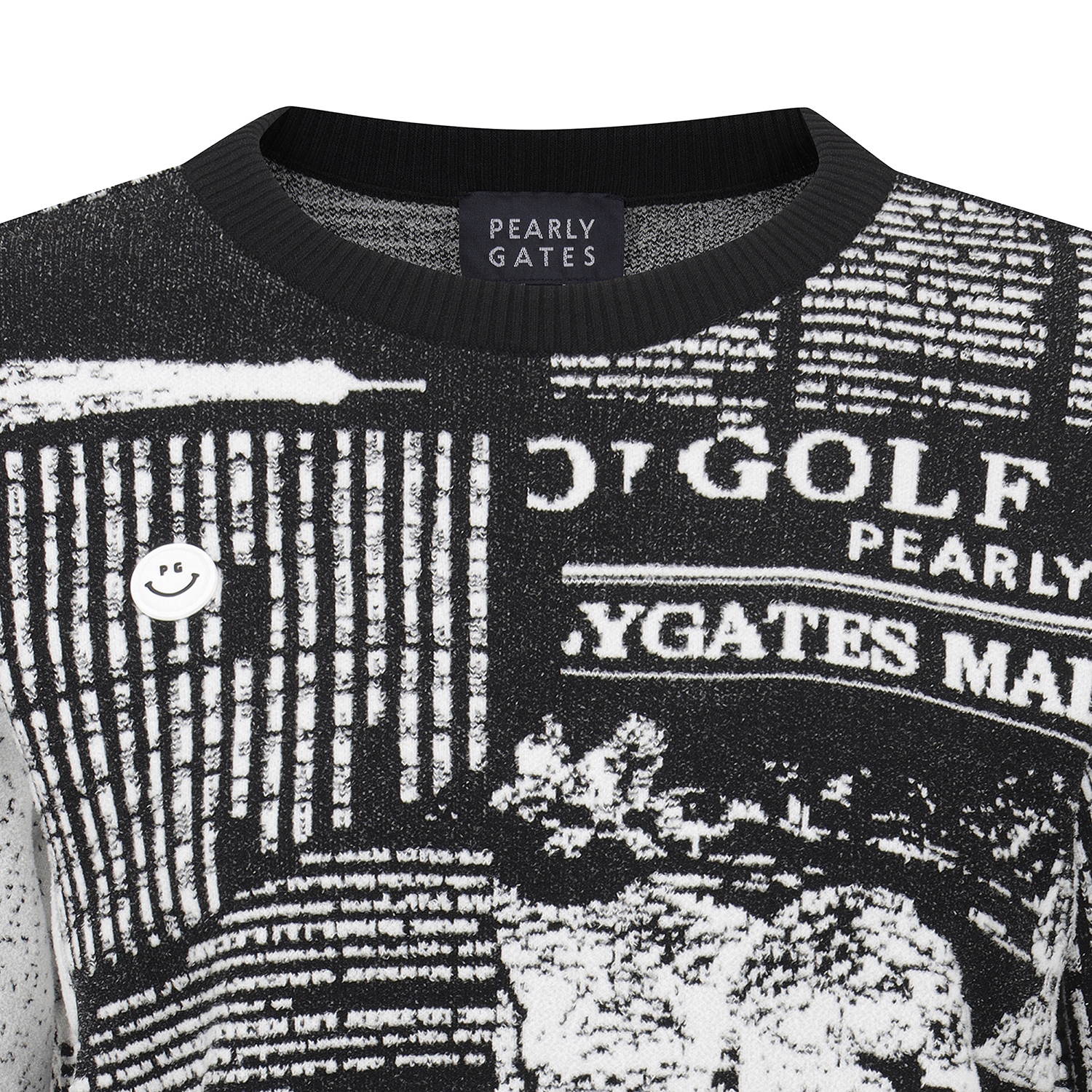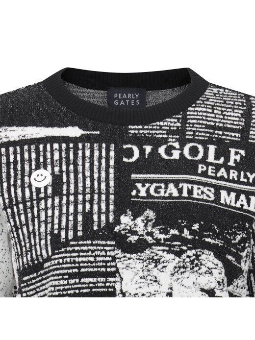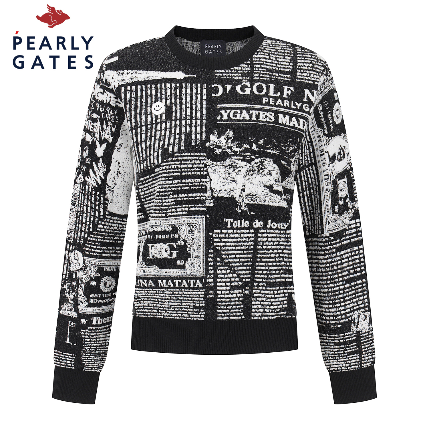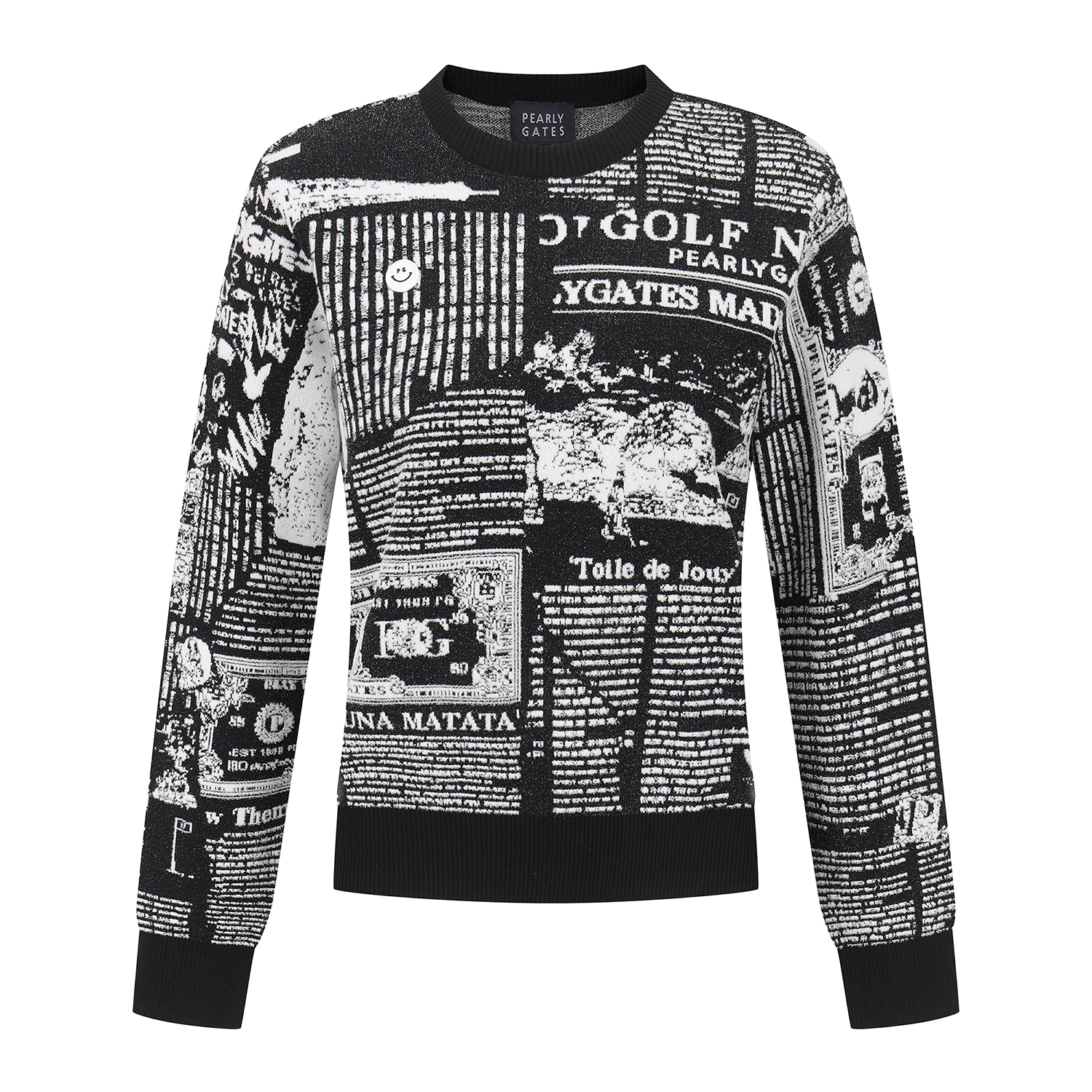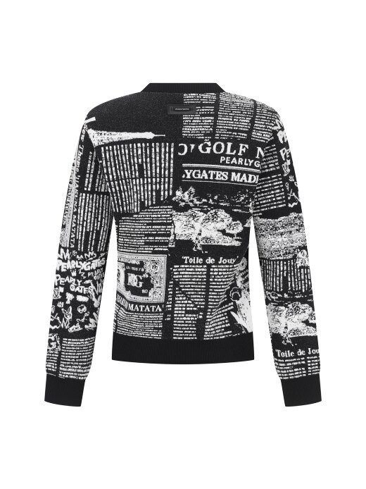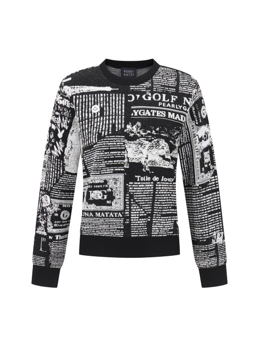 여성 스마일 뉴스페이퍼 자카드 긴팔 니트