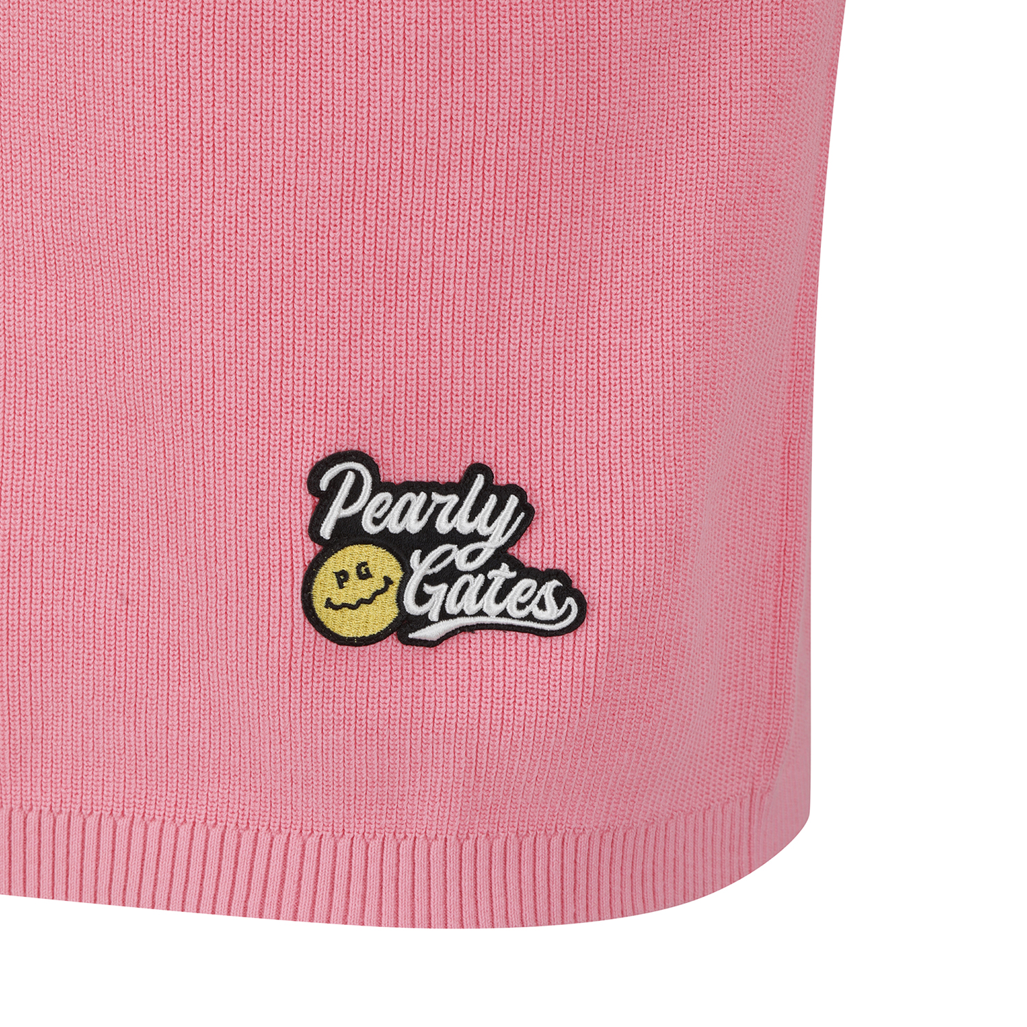 여성 스마일 로고 패치 후드 니트 베스트