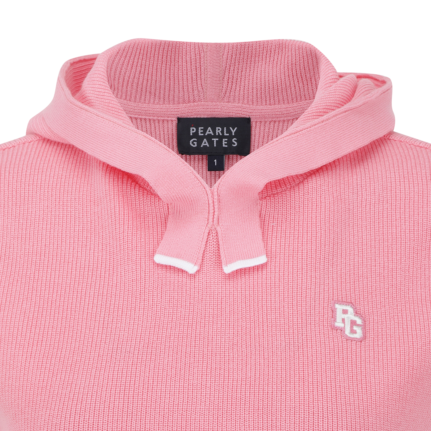 면 소재로 통기성이 좋은 천연 소재를 사용하였으며, 후드 부속에 귀여운 배색 팁 포인트를 줌. 후드에는 고정 스냅이 부착되어 있어 스윙시에도 불편하지 않게 착용 가능