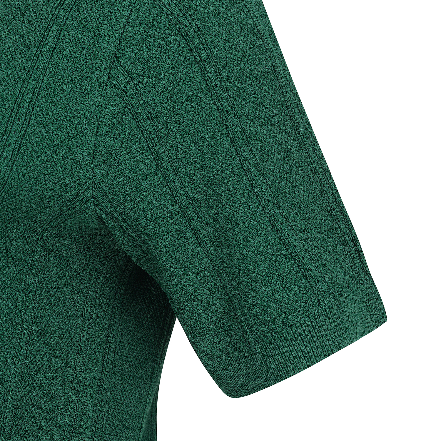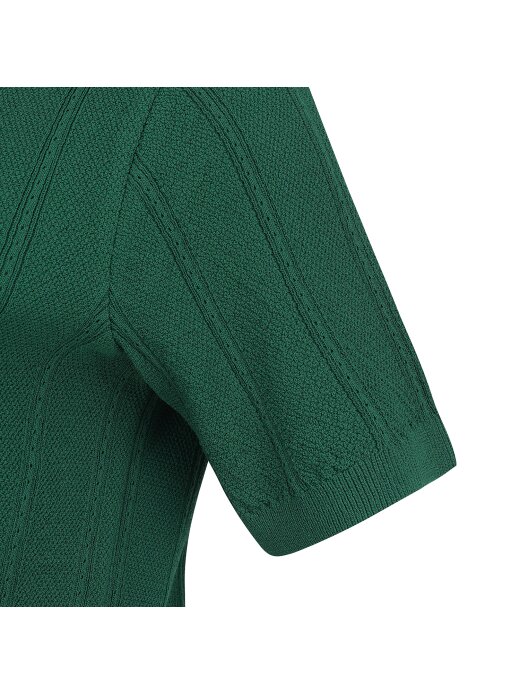 레이온 혼방 소재로 신축이 좋고, 강연 타입으로 몸에 달라 붙지 않고 쾌적하게 착용 가능.변형 골지 조직을 활용한 스타일로 여성 스러우면서 스포티한 조직감이 슬림한 룩킹을 보여줌.둥근 에리와 퍼프 소매가 귀여운 느낌을 더 해 주는 아이템.테마: Soulful Modernity핏: 슬림