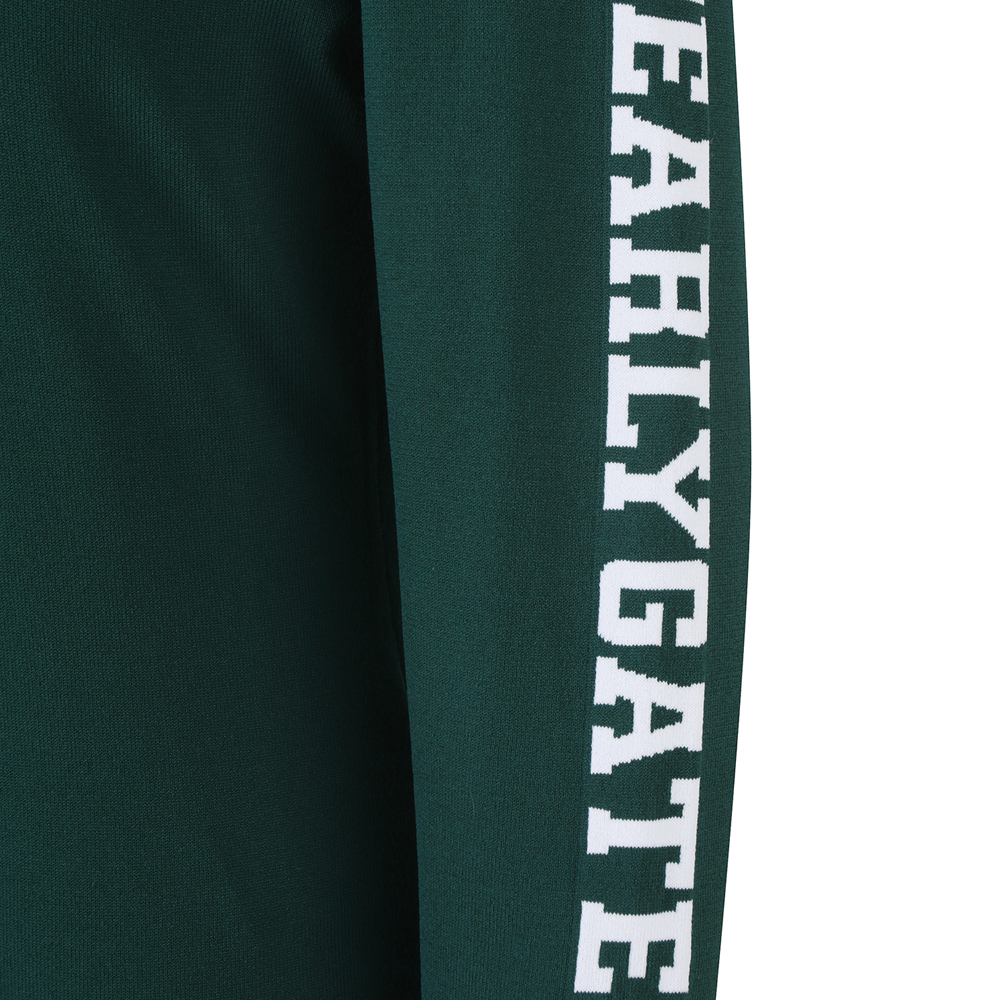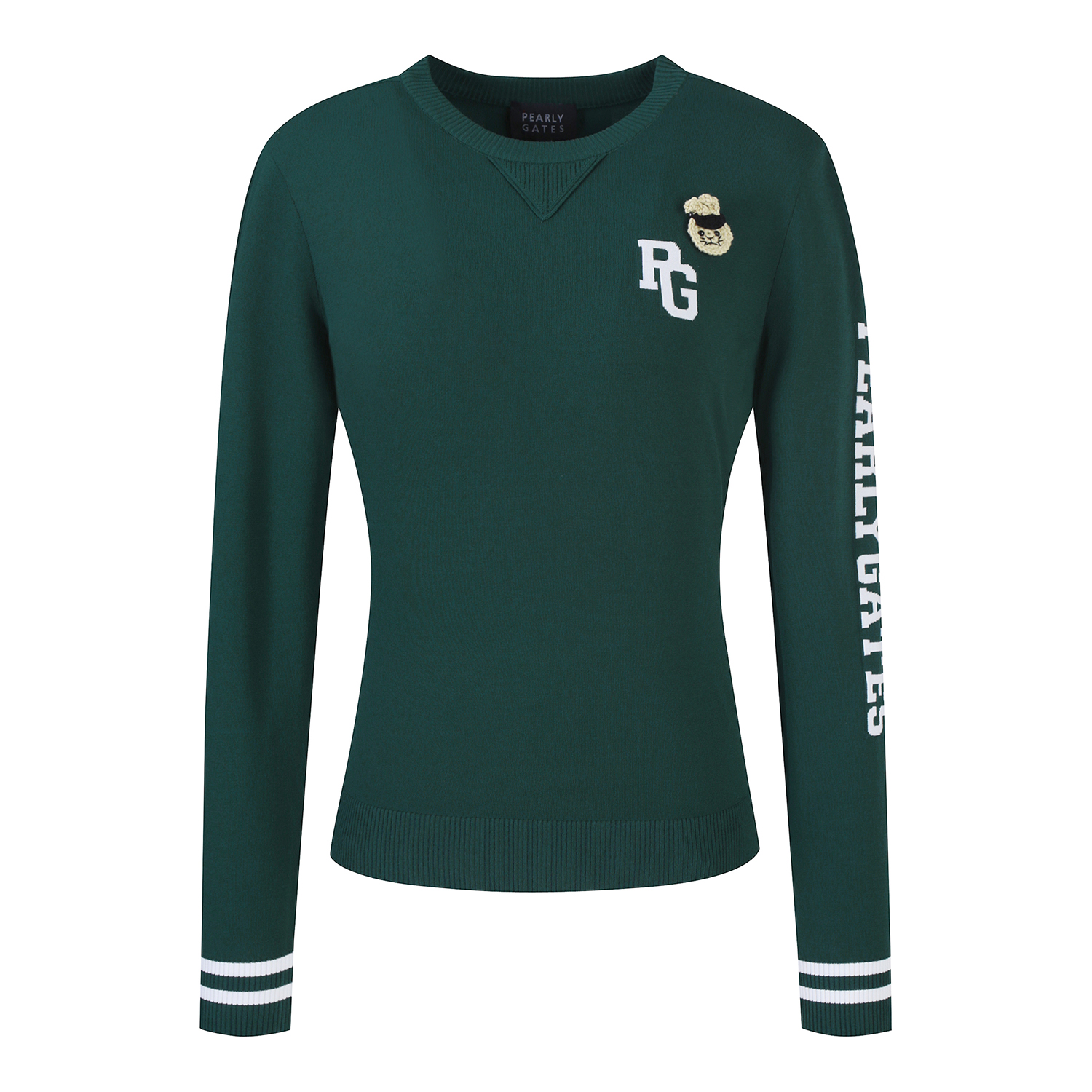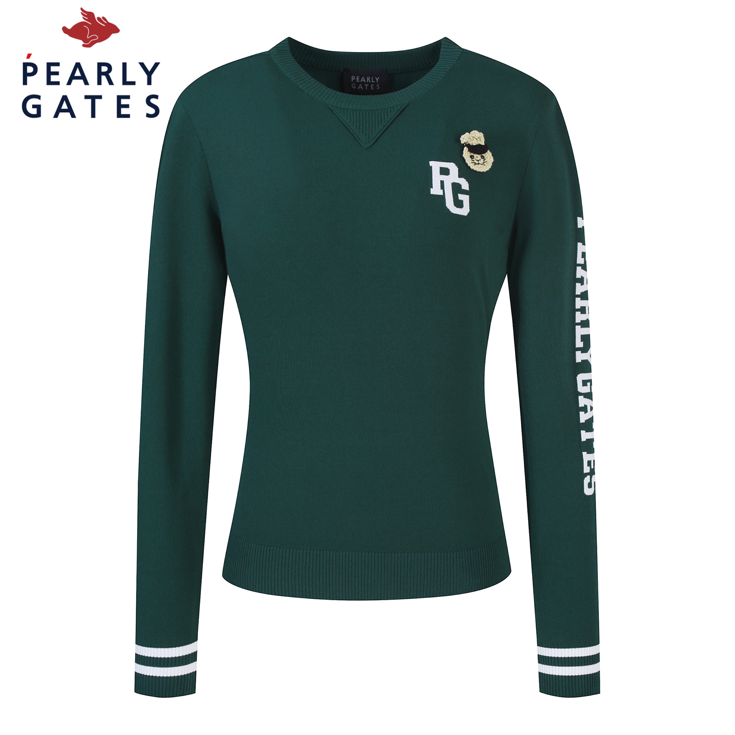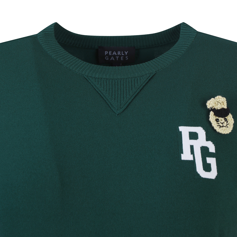 신축성 좋은 레이온 혼방 소재로 솔리드 컬러에 소매 로고 포인트를 준 라운드넥. 니트 풀오버 가슴에 탈착 가능한 토끼 브로치와 네크에 삼각무를 덧대어 캐쥬얼한 무드를 살림