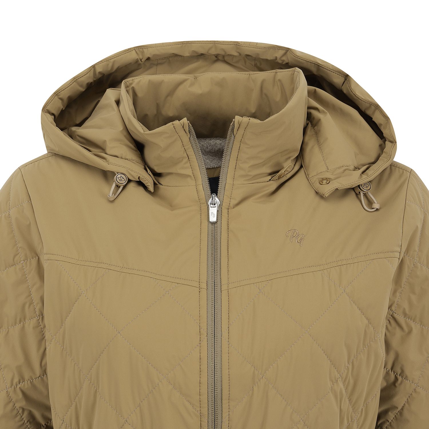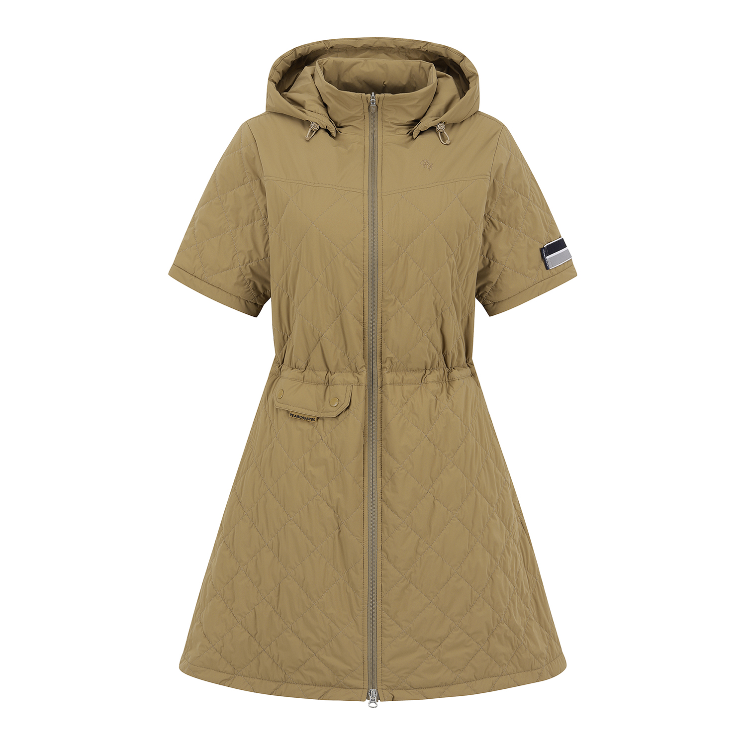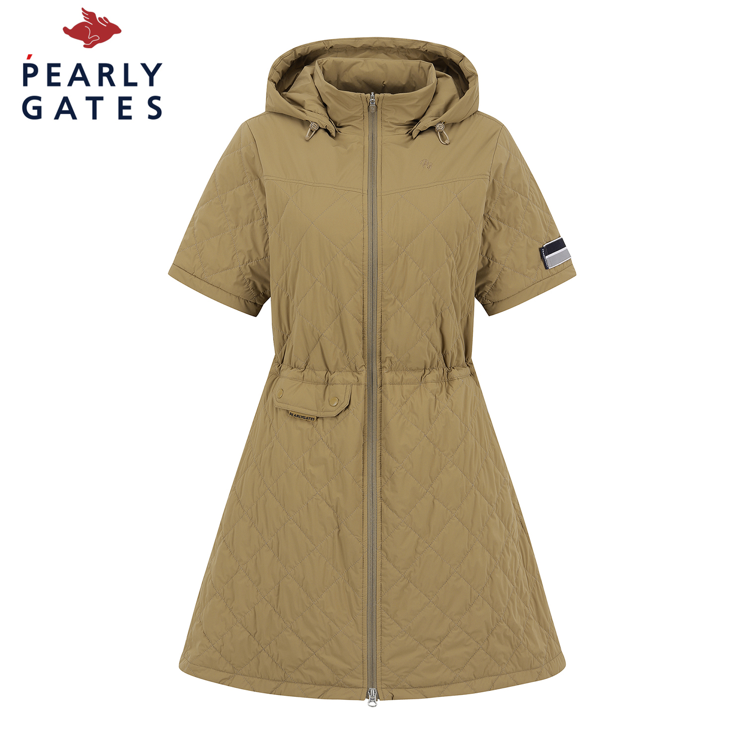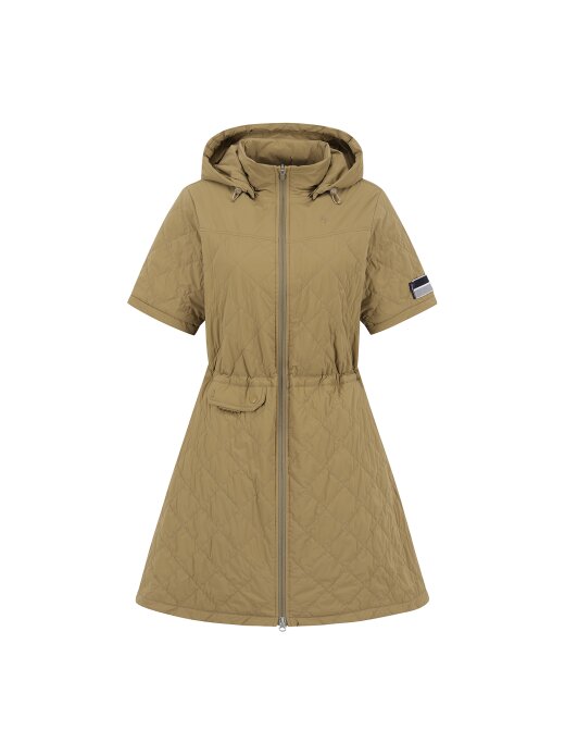 옥타라이닝 반소매 원피스.고급스러운 수입 기모 안감과 가벼운 패딩을 퀼팅한 풀오픈 원피스.탈부착 가능한 후드와 스트링으로 허리 라인 조절이 가능하여 다양한 핏으로 연출이 가능함.포켓 디테일로 수납이 용이함.무릎 조금 밑으로 오는 기장감으로 필드에서 돋보이는 아이템.테마: I♡PG