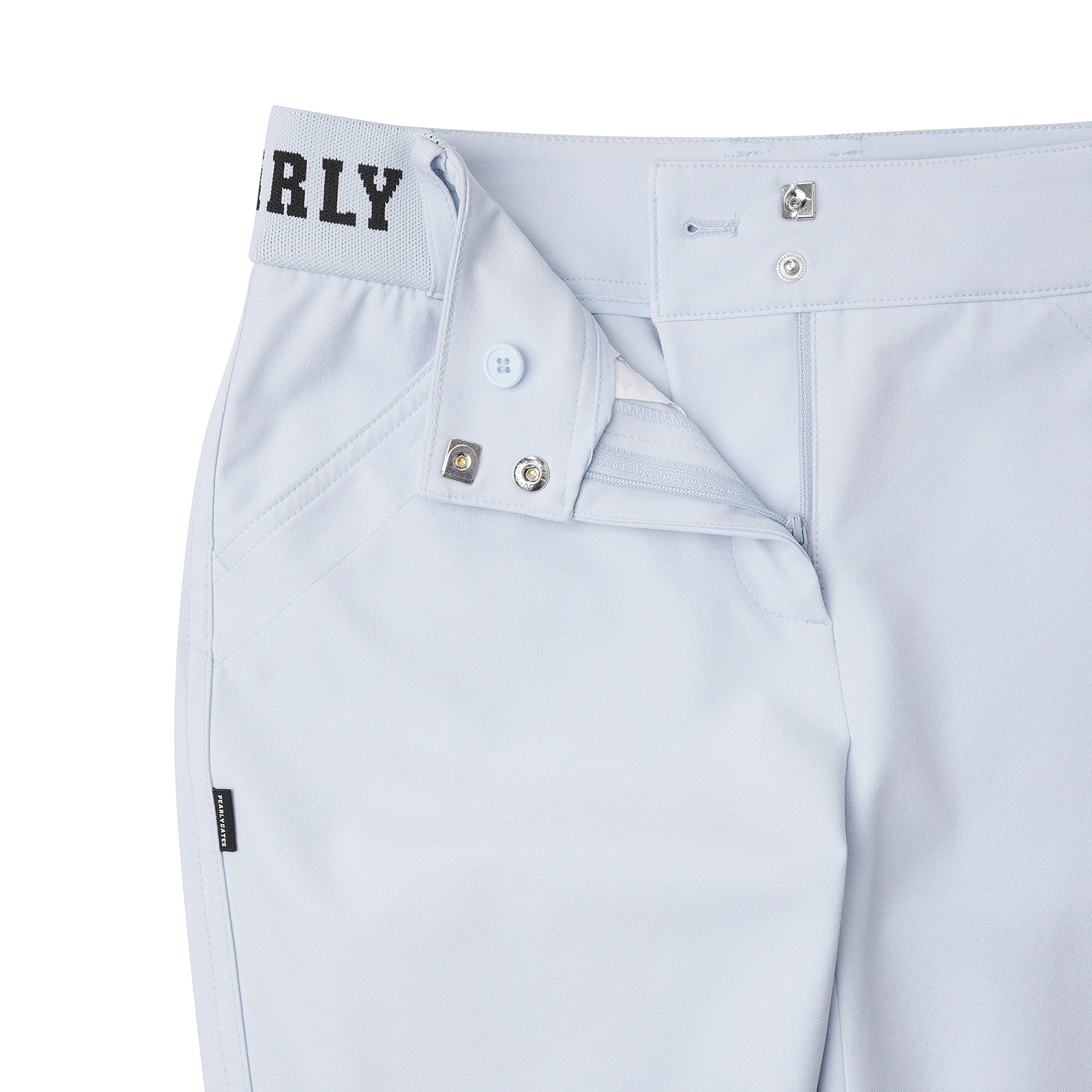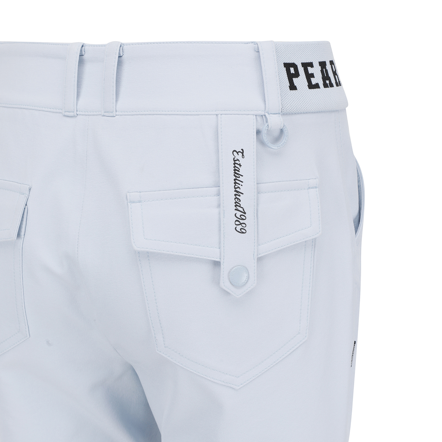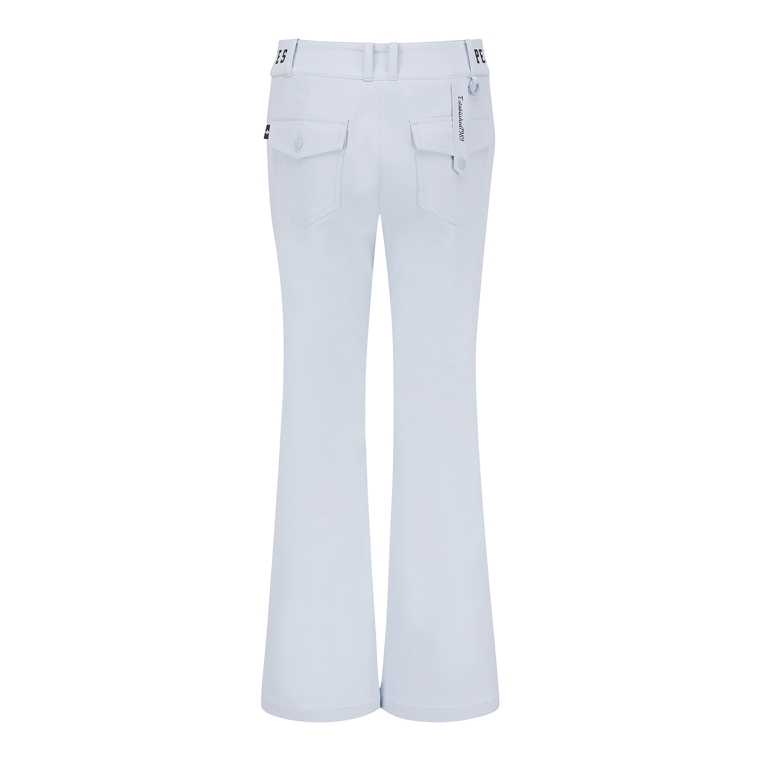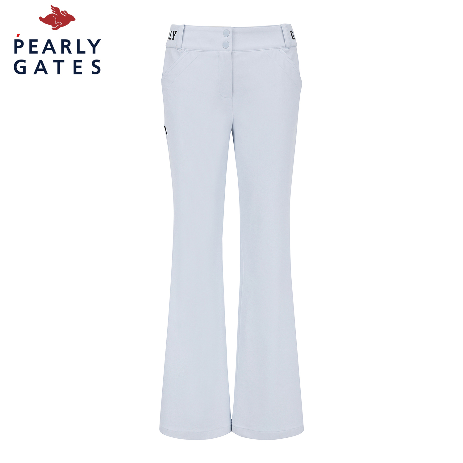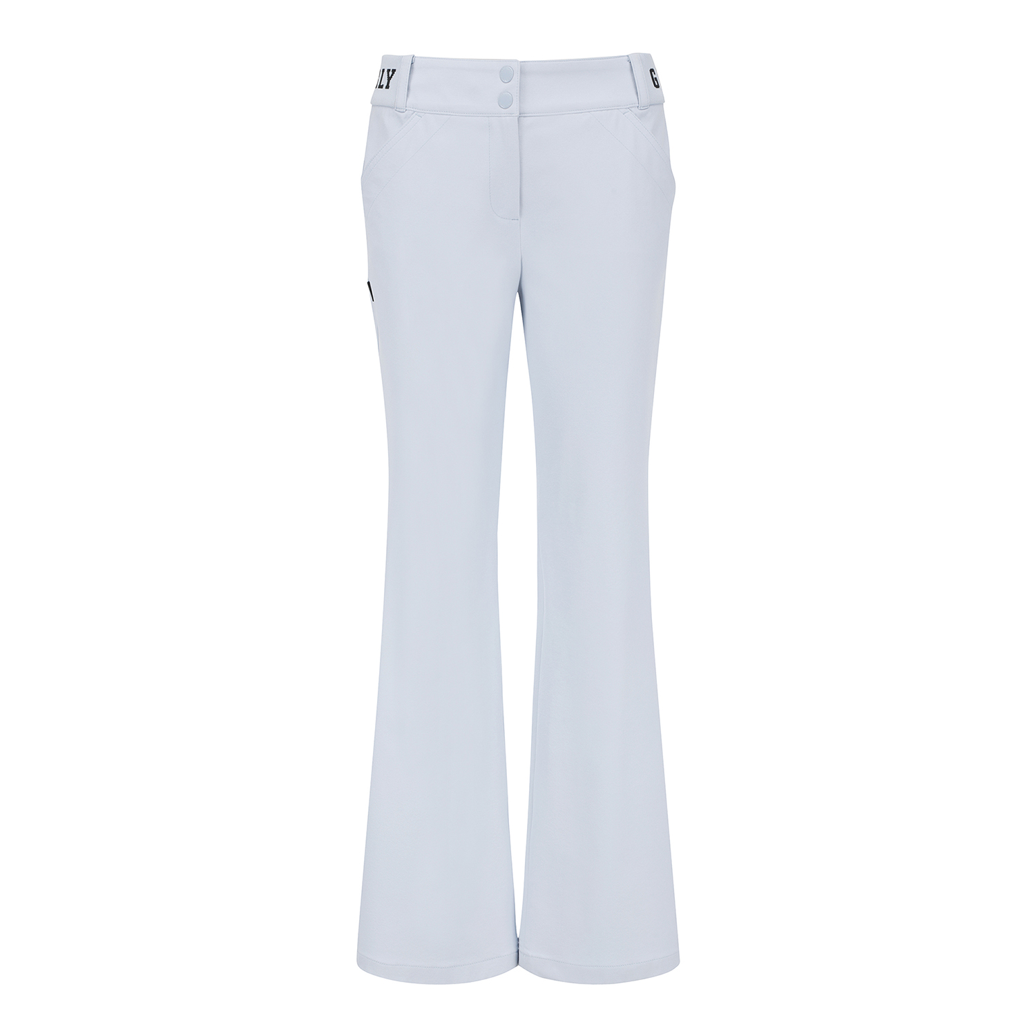 허리 이밴드 부츠컷 팬츠 / 면터치 느낌의 폴리 스판 소재를 사용한 부츠컷 팬츠 / 4WAY 스트레치 원단으로 신축성이 좋음 / 허리 양쪽에 로고 쟈카드 시보리로 착용감이 편안한 아이템