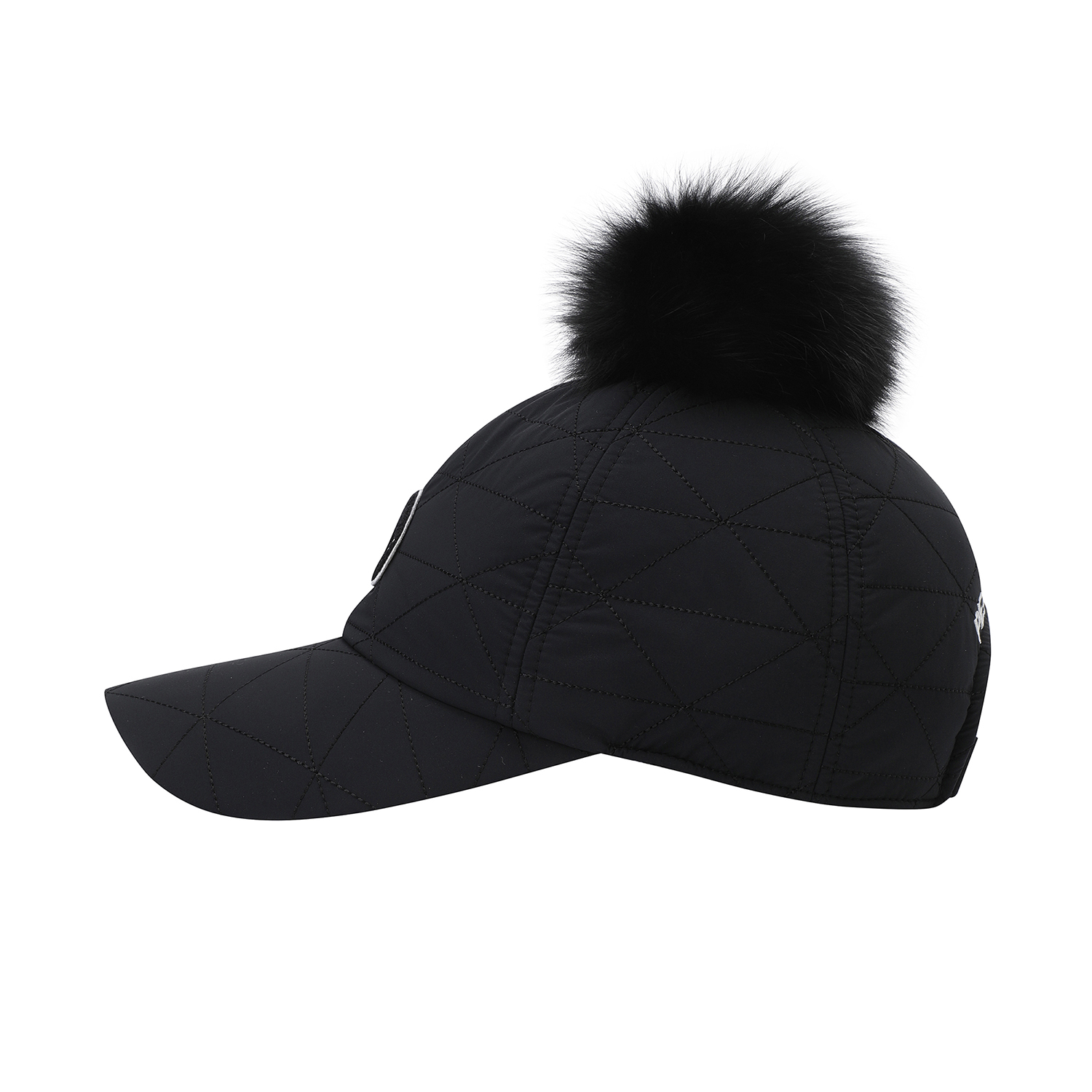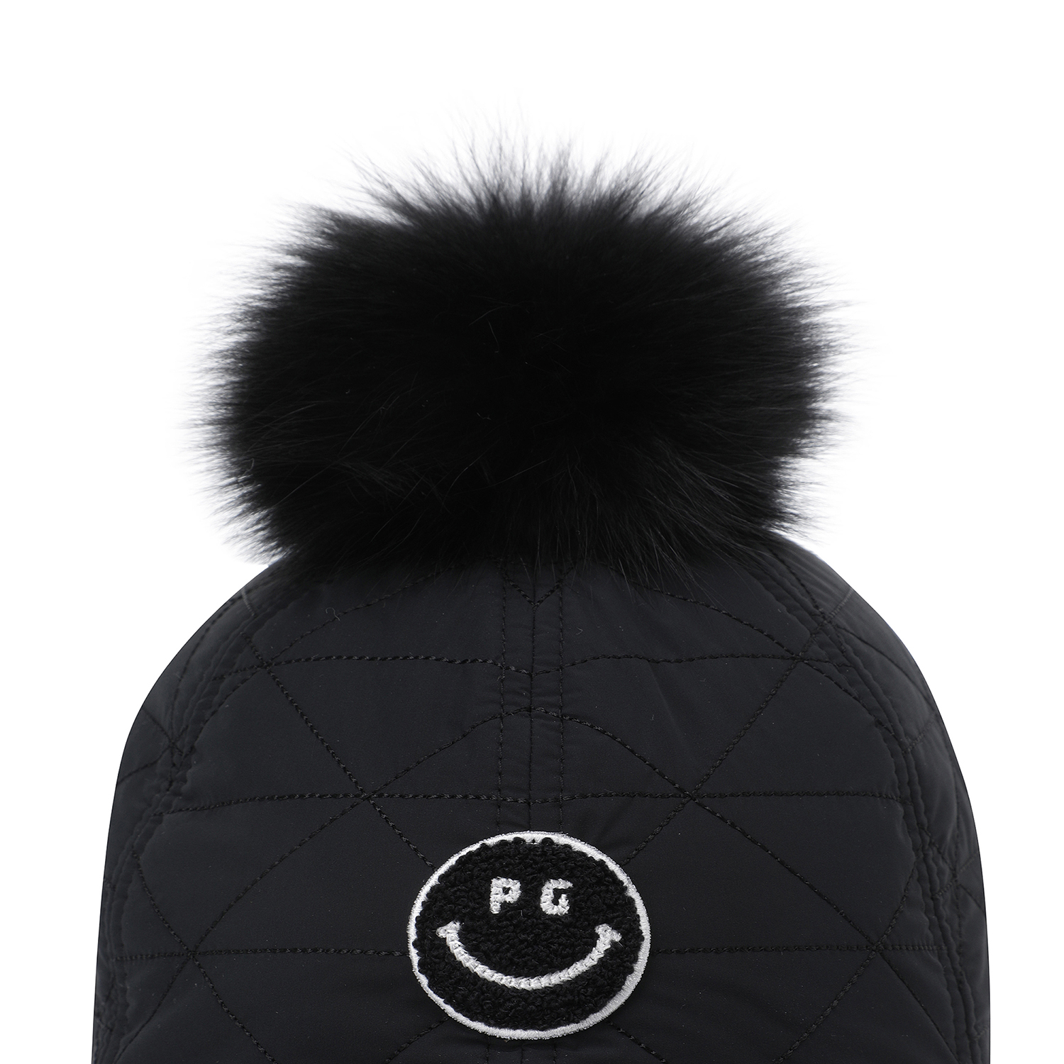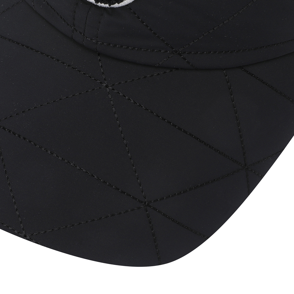 스마일 부클 와펜 포인트 여성 퀼팅 캡.폭스퍼 방울 탈부착 가능.전판 퀼팅 디테일 및 패딩 보강 적용.기모 안감 적용.뒤끈 벨크로 적용.챙길이 : 7.5cm