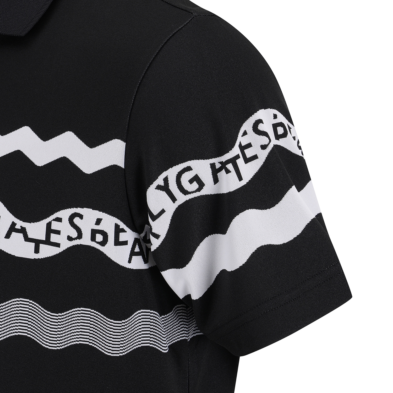 자가드 웨이브로고 스트라이프 반소매 셔츠.웨이브로고를 자가드로 표현한 고급스러운 반소매 폴로셔츠.