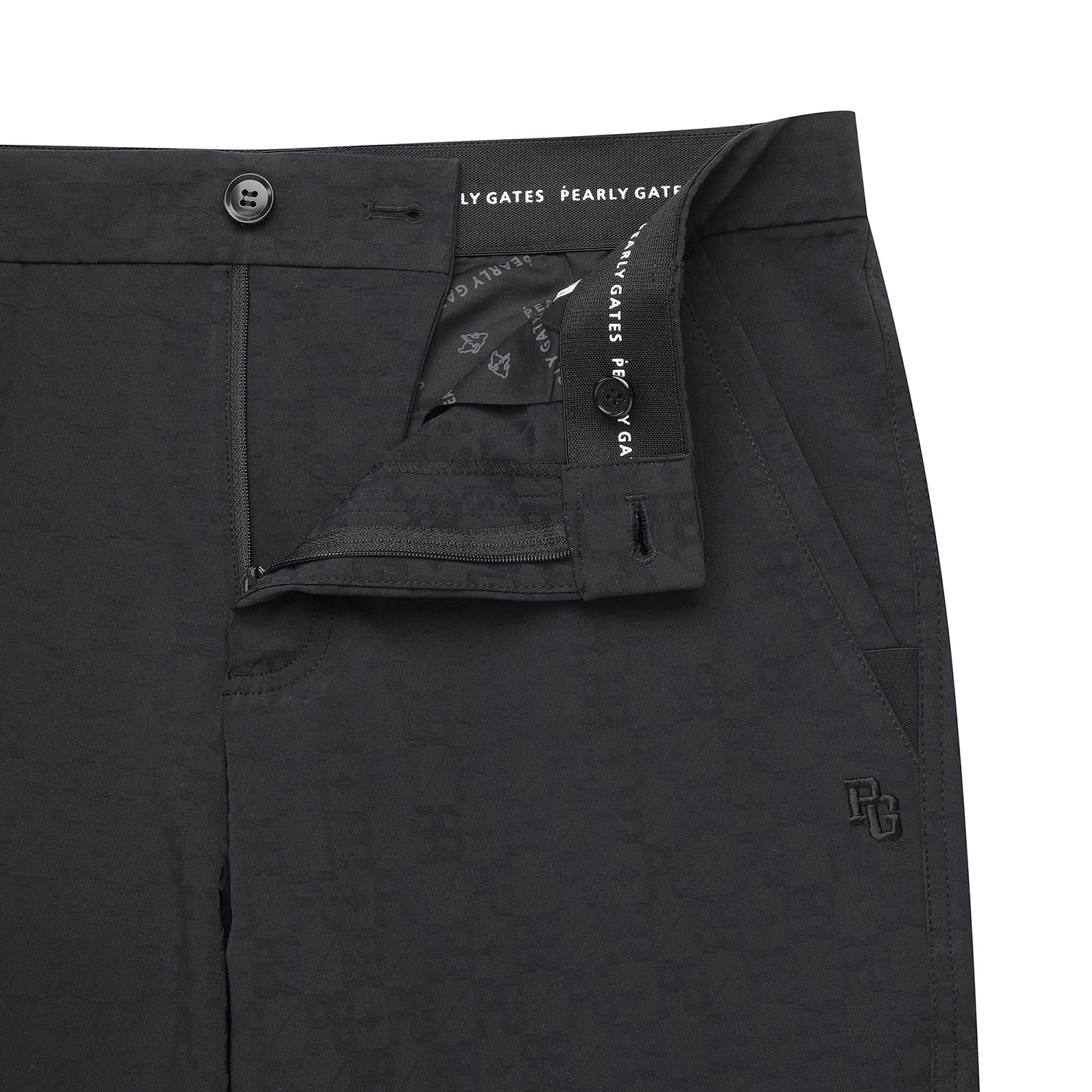 파리게이츠 로고를 넣은 은은한 자가드 패턴이 돋보이는 기본 핏 팬츠 캐주얼한 외관과 스판끼 있는 소재로 봄에 편하게 착용 가능하며 허리에 밴드를 내장시켜 편안한 착용감을 준 팬츠
