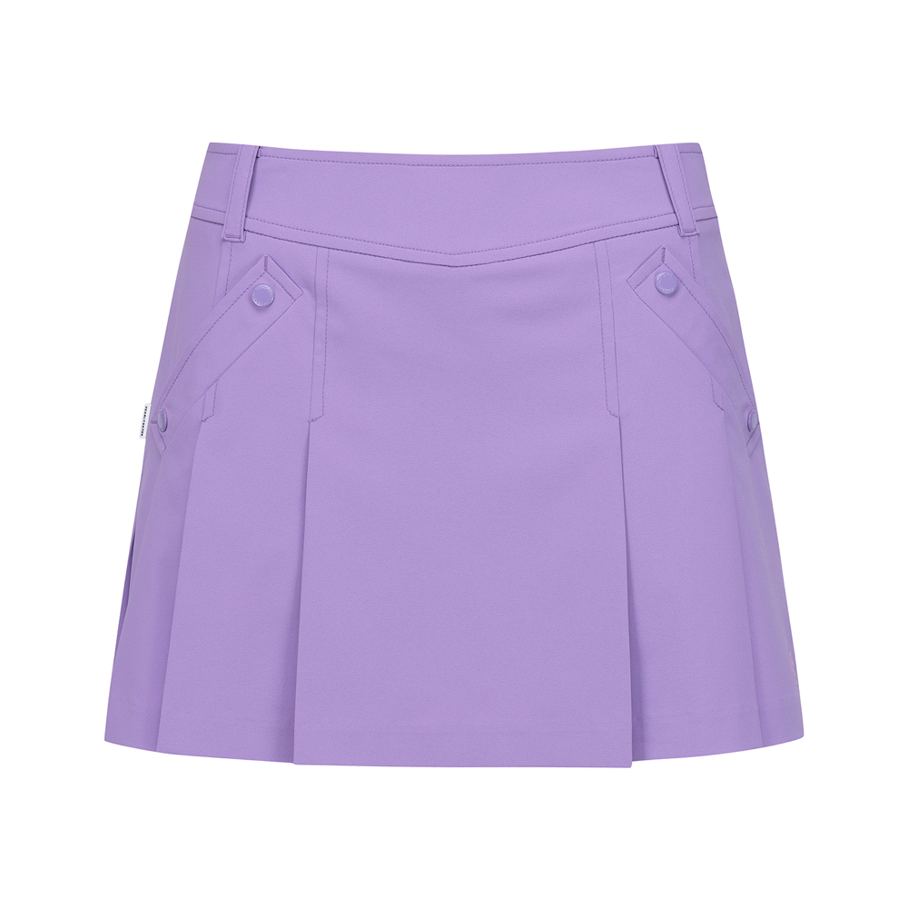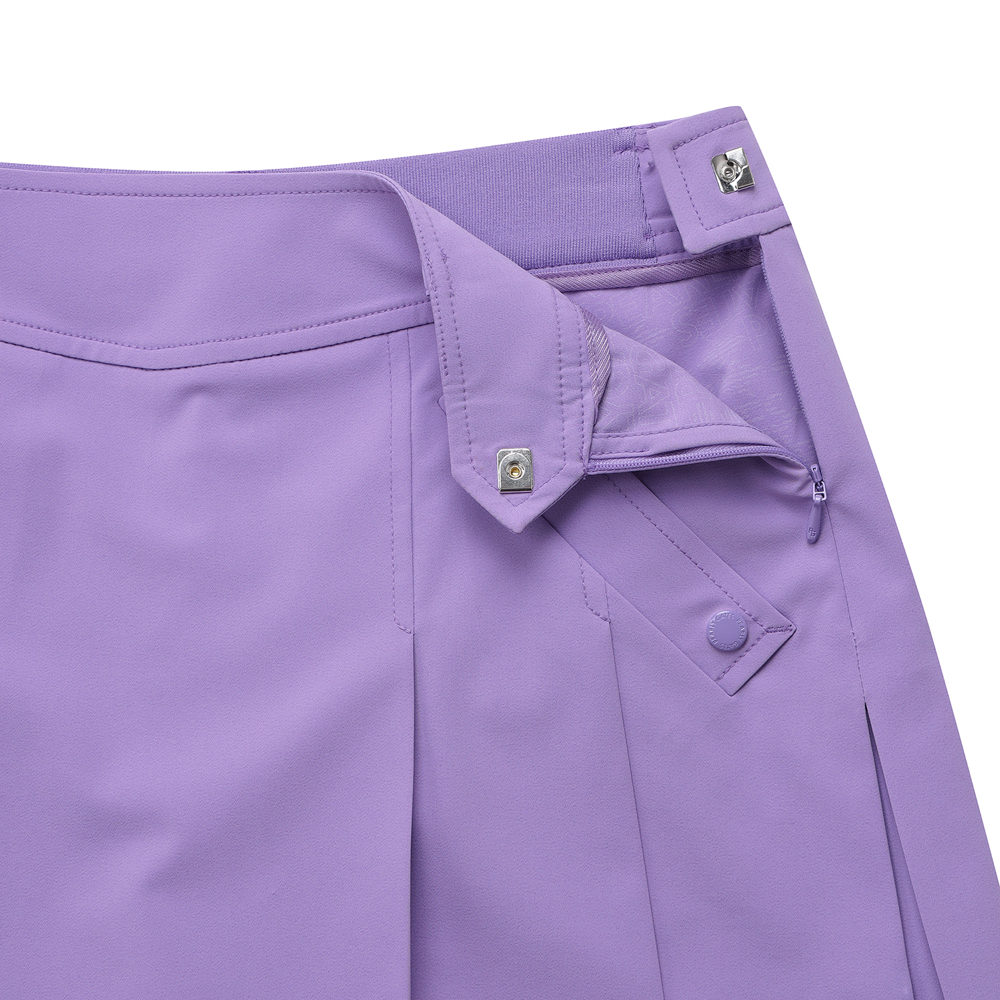 A라인 실루엣의 플리츠 큐롯 스커트. 냉감 소재의 반바지 내장으로 쾌적한 라운딩이 가능합니다. 허리 뒷부분 밴딩을 더해 편안한 착용감.