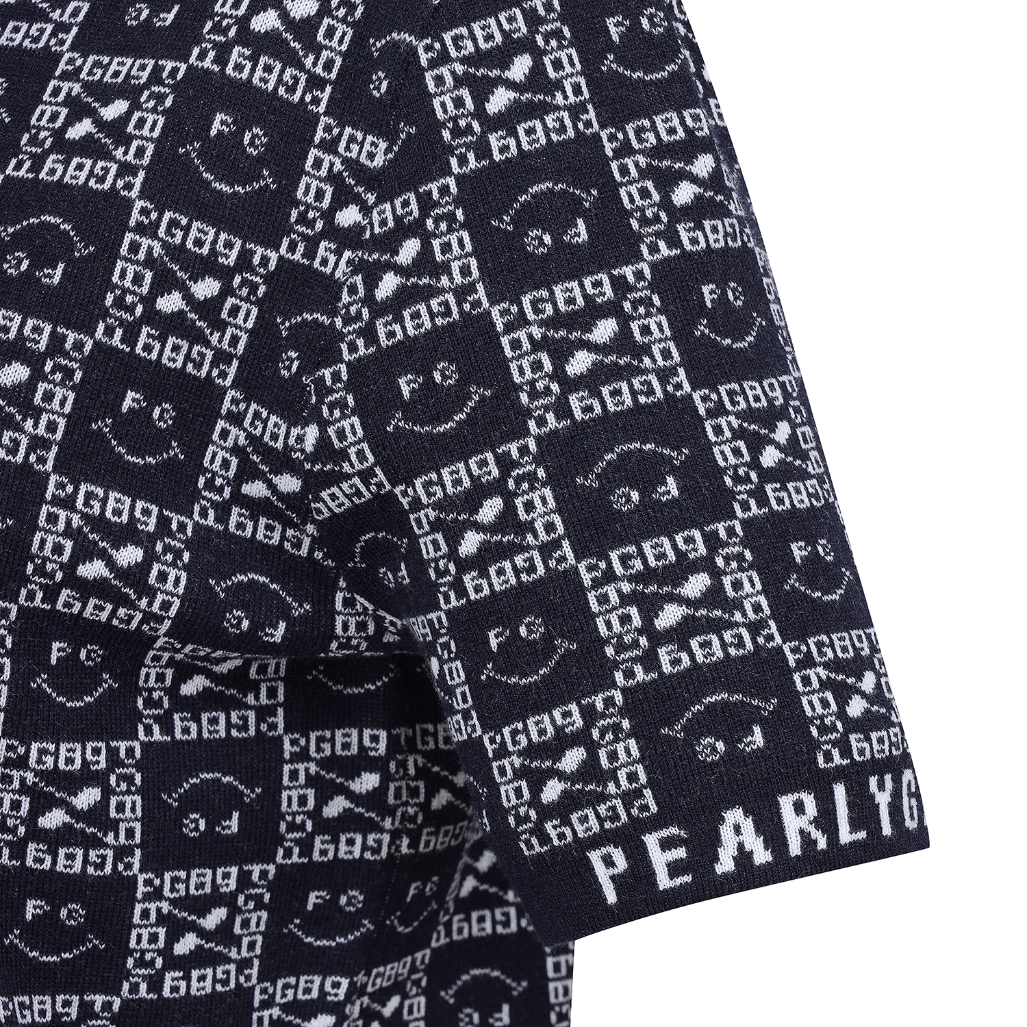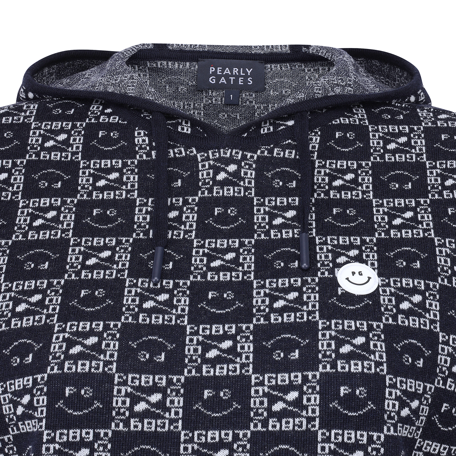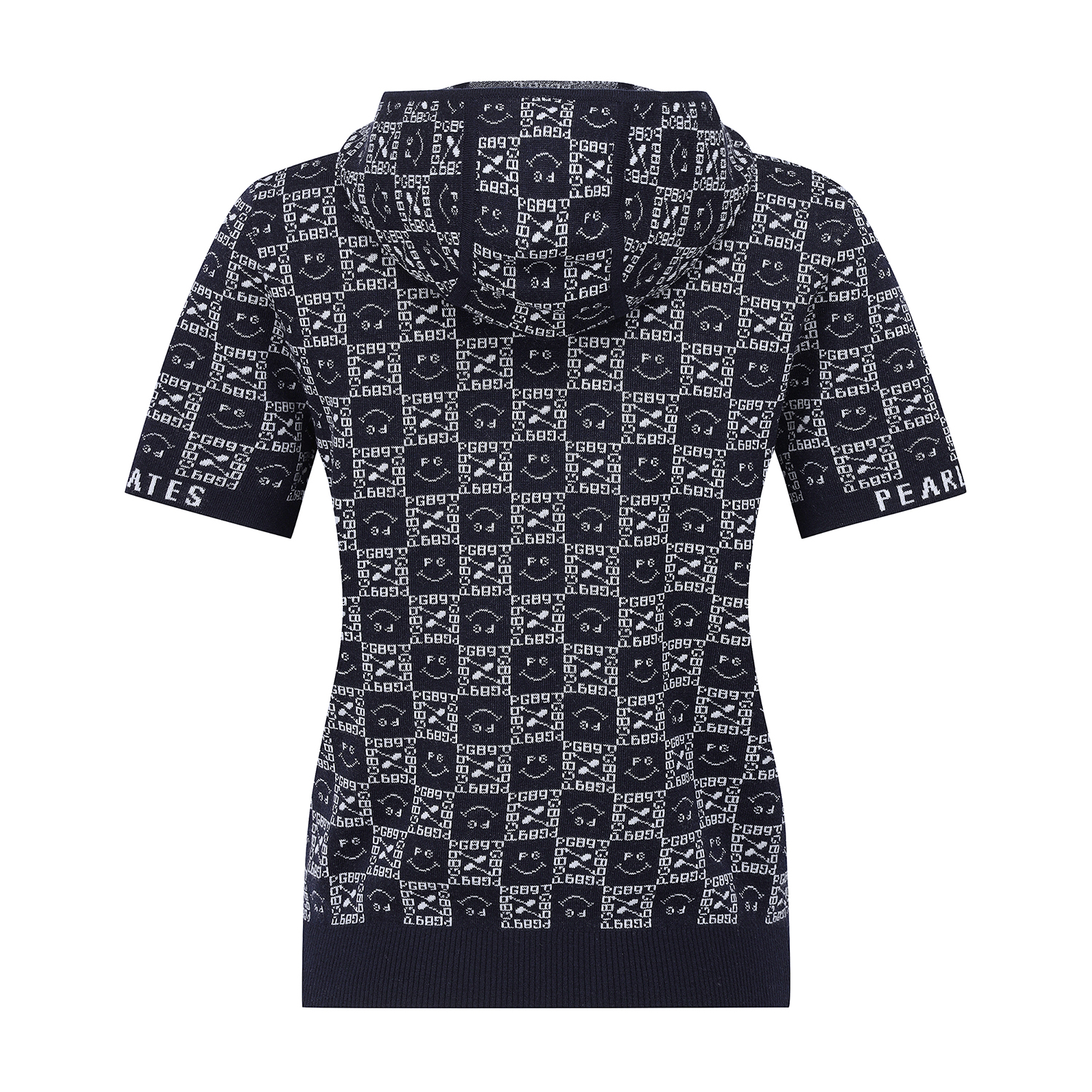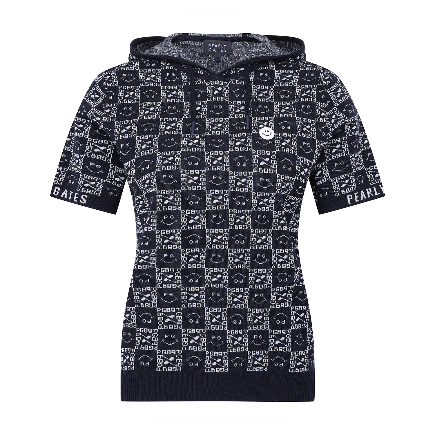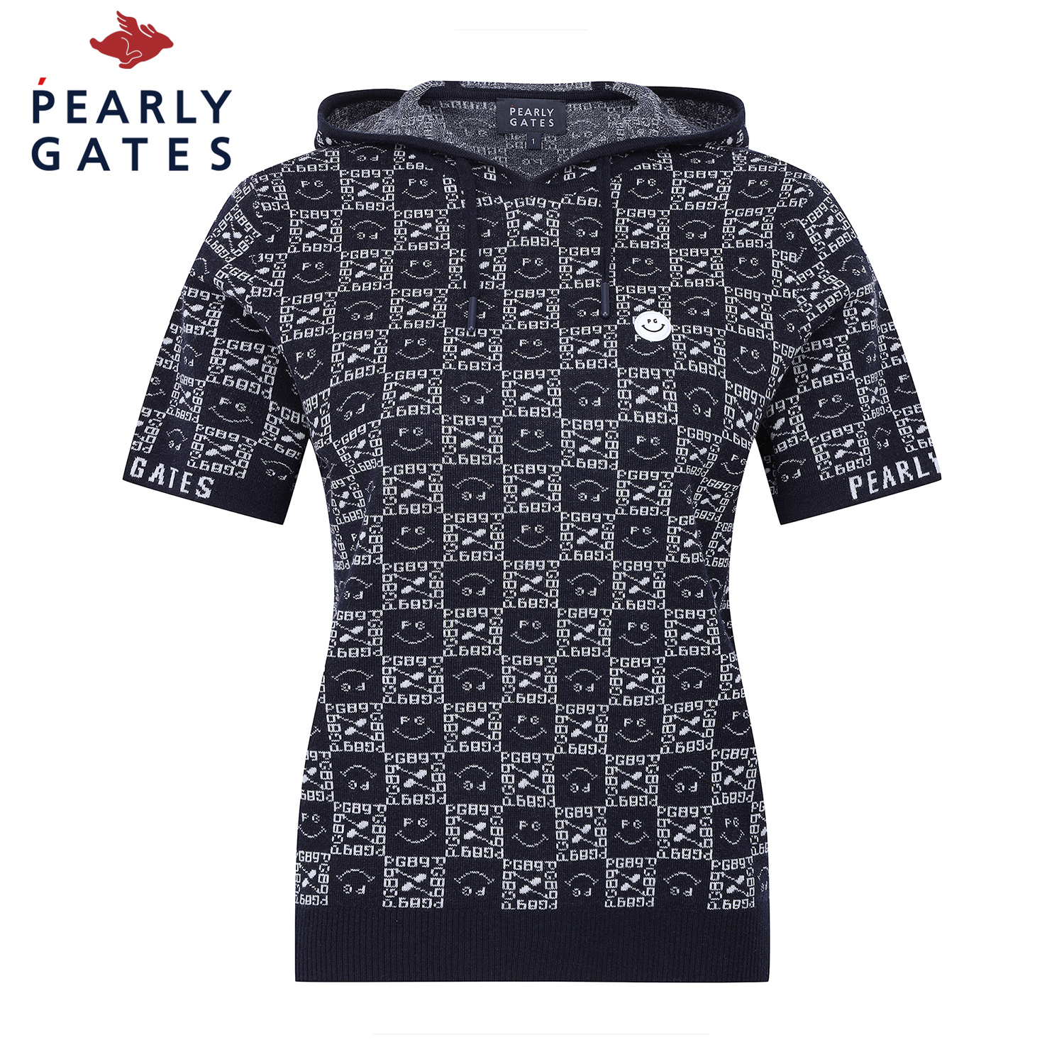 여성 스마일 블록 패턴 후드 반팔니트