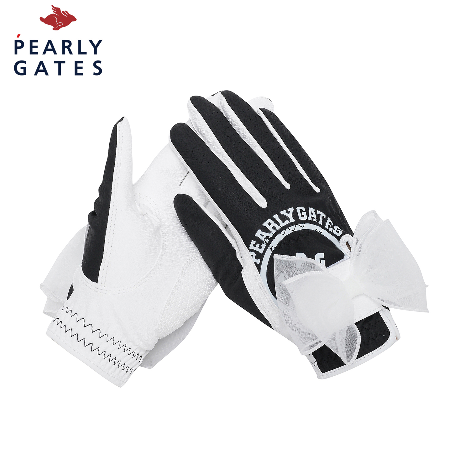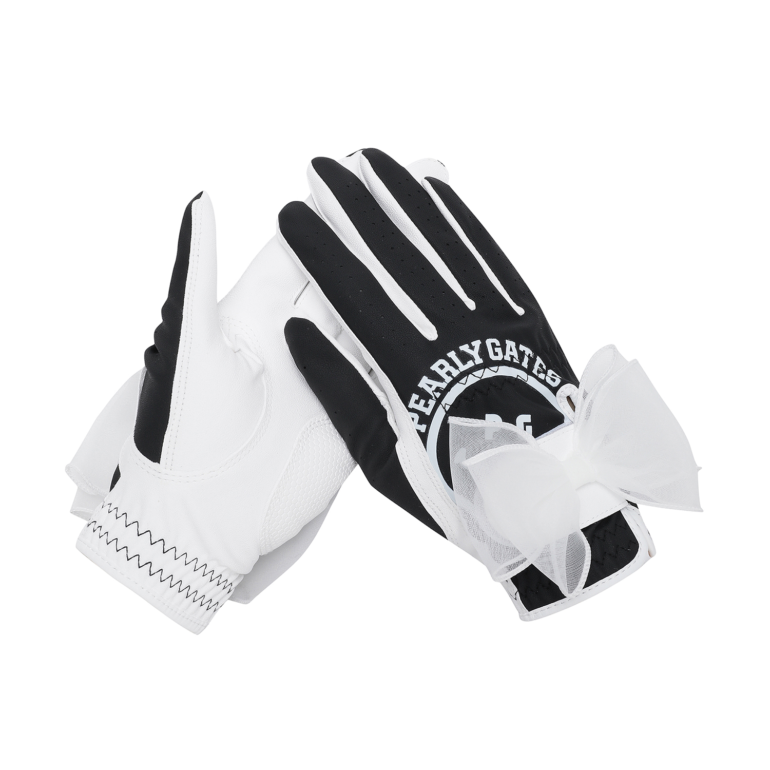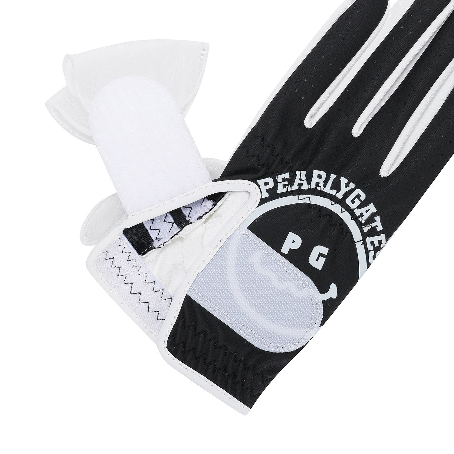 디지털 엠보 적용한 양손 합피 장갑.스마일 로고 프린트와 리본 디테일 포인트. 손목 테리밴드 적용하여 착용감 강화.