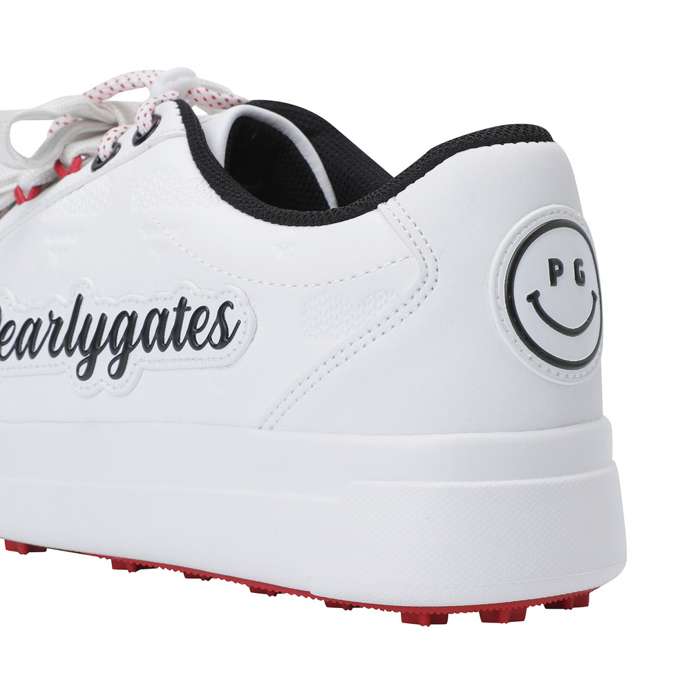 테마 불박 디테일 여성 논스파이크 골프화.좌우 비대칭 힐 와펜(하트·스마일)으로 위트 있는 캐주얼 무드. 더블 슈레이스와 하트 스토퍼로 귀여운 디테일 강조.보통 발볼(E)에 둥근 실루엣과 4cm 굽으로 편안한 착화감.인솔과 아웃솔까지 하트 패턴으로 통일감 있는 마감.신발주머니 포함, 정사이즈 권장.발볼: 보통 (E) / 굽 높이: 4cm / 무게: 321g (240 사이즈 한 짝 기준)