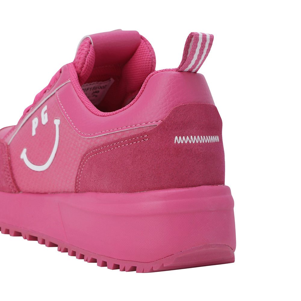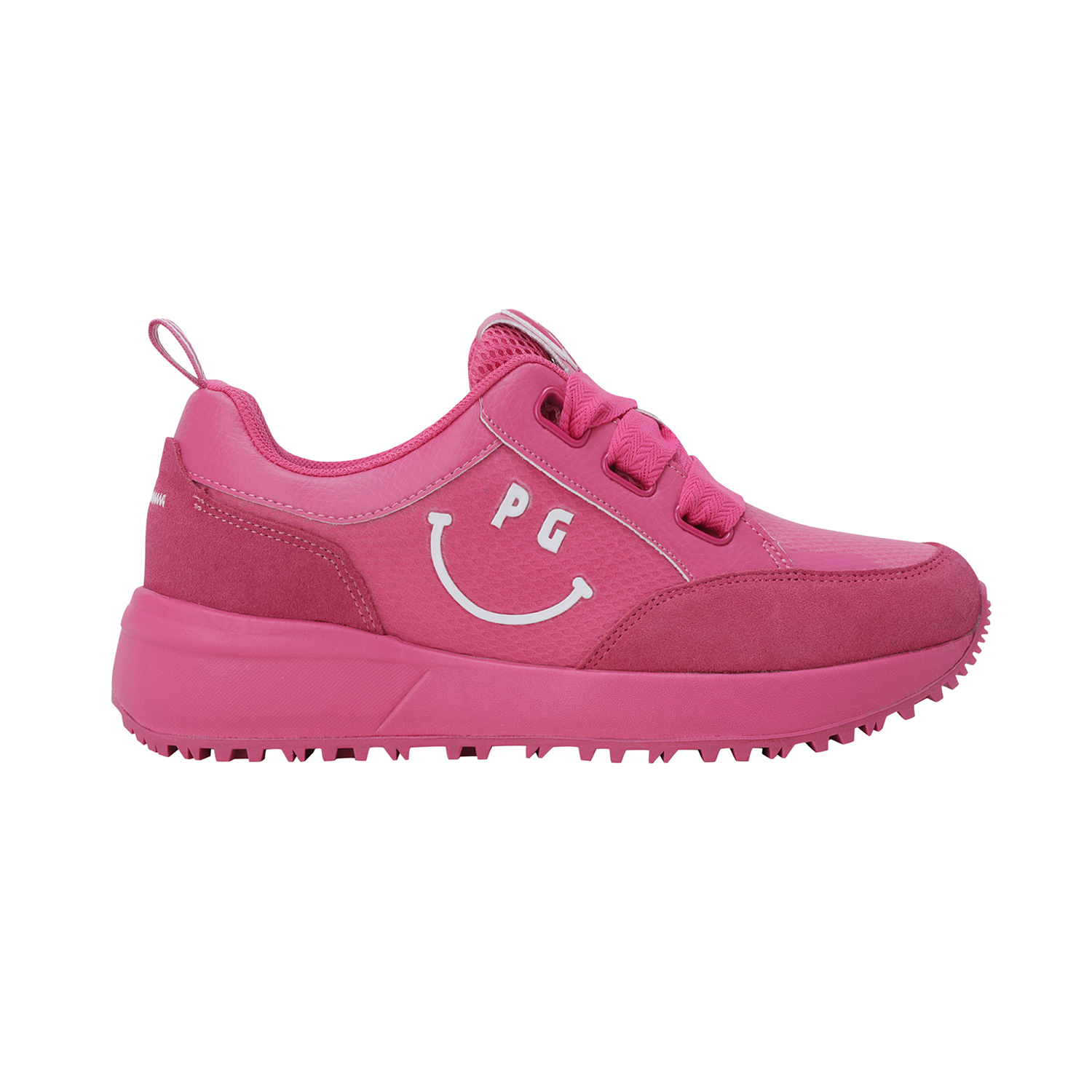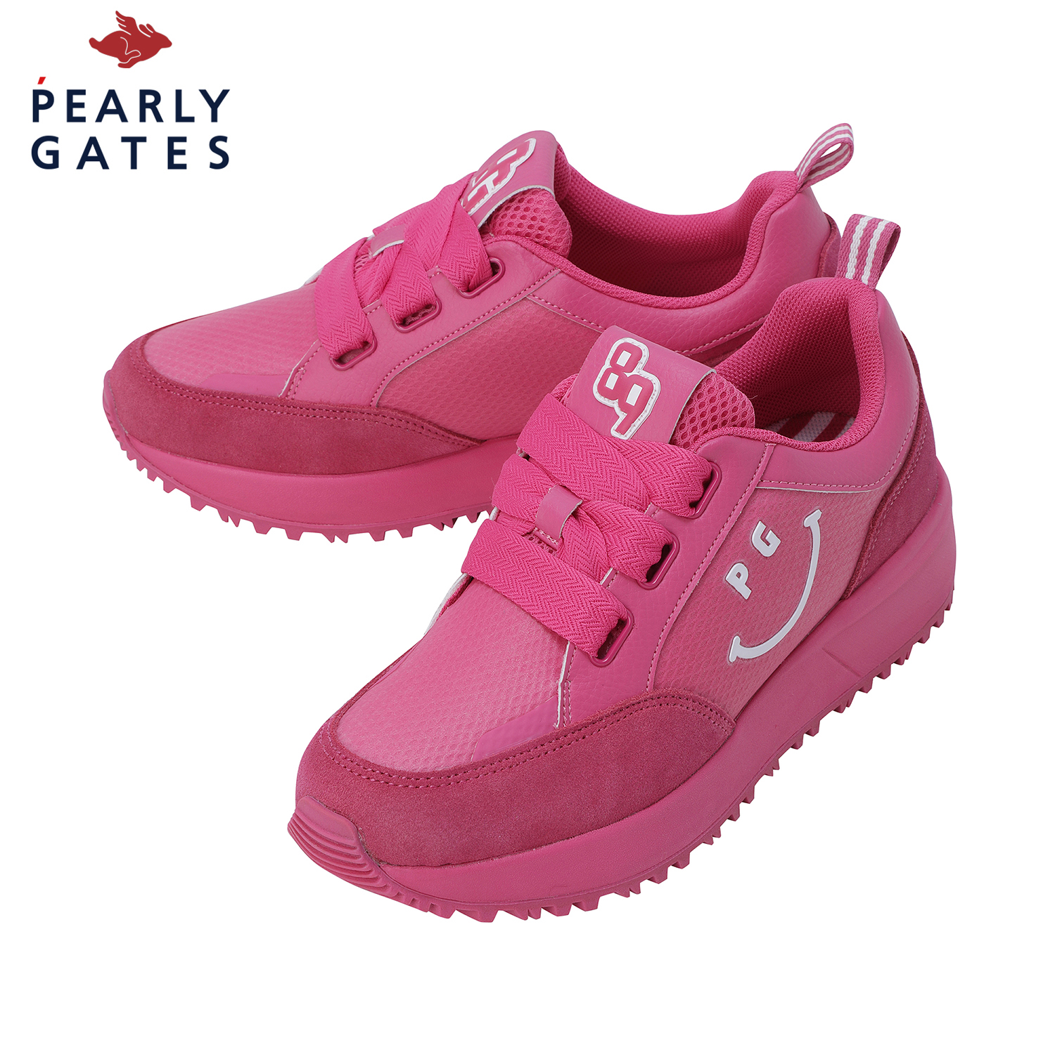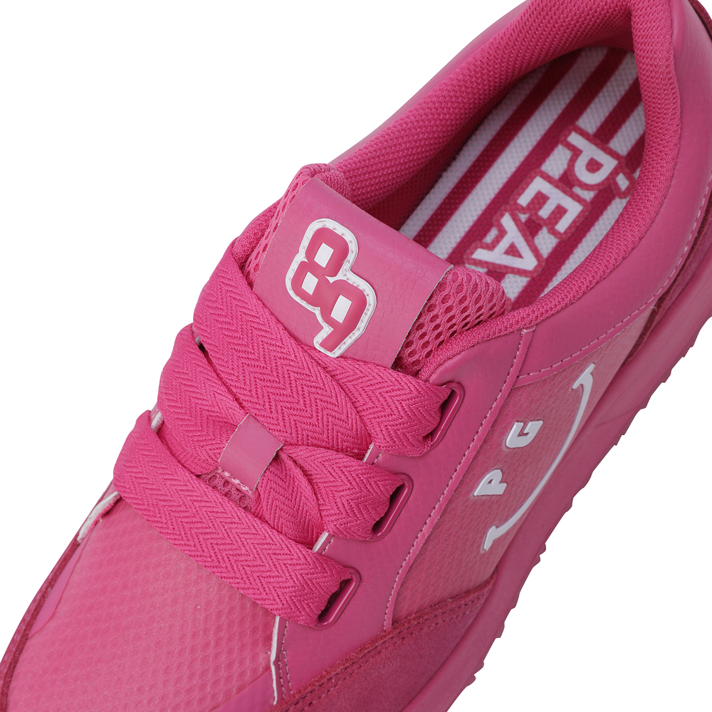 스마일 고주파 포인트 여성 논스파이크 골프화신발주머니 포함, 정사이즈 권장 / 발볼: 보통(E)굽 높이: 4.5cm / 무게: 350g (240 사이즈 한 짝 기준)민트와 핑크, 두 가지 솔리드 컬러로 전개된 여성 논스파이크 골프화.어퍼부터 미드솔, 아웃솔까지 동일한 컬러로 완성된 올-솔리드 디자인으로 라운드 위에서도 감각적이고 트렌디한 스타일 연출.측면의 스마일 커팅 고주파 디테일이 브랜드 특유의 위트를 더하며, 조거솔 스타일의 날렵한 실루엣이 패션 스니커즈 같은 존재감.인조 스웨이드 배색 어퍼로 완성된 강렬하고 세련된 룩.※ 신발주머니, 보조신끈 포함