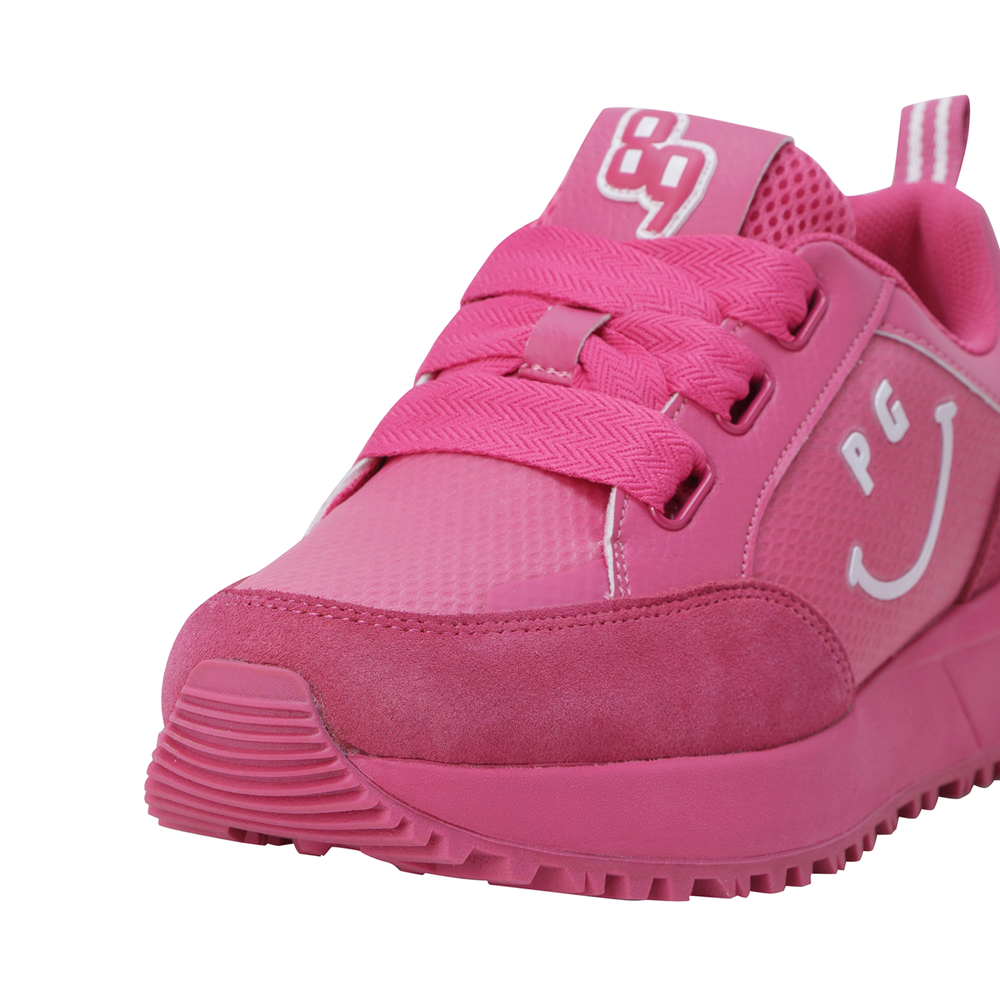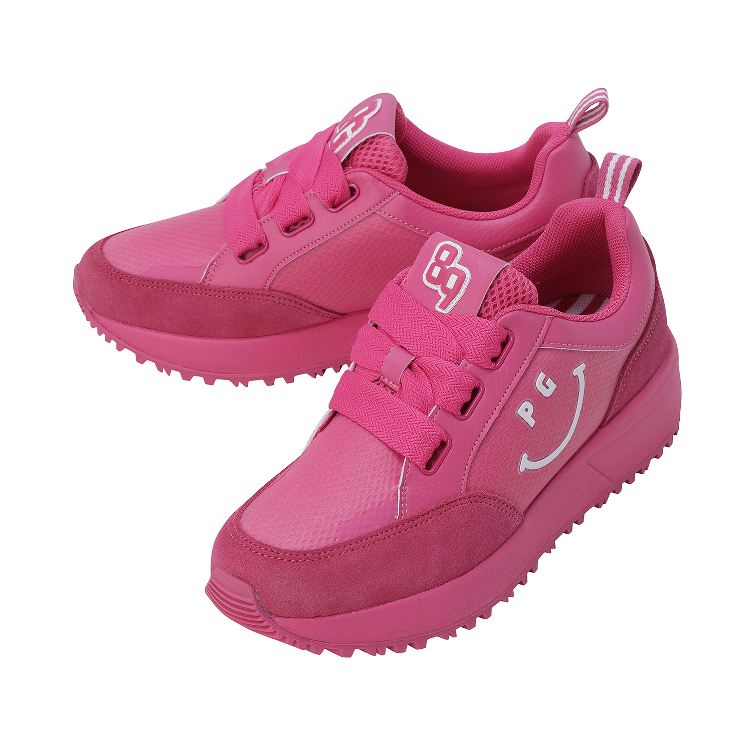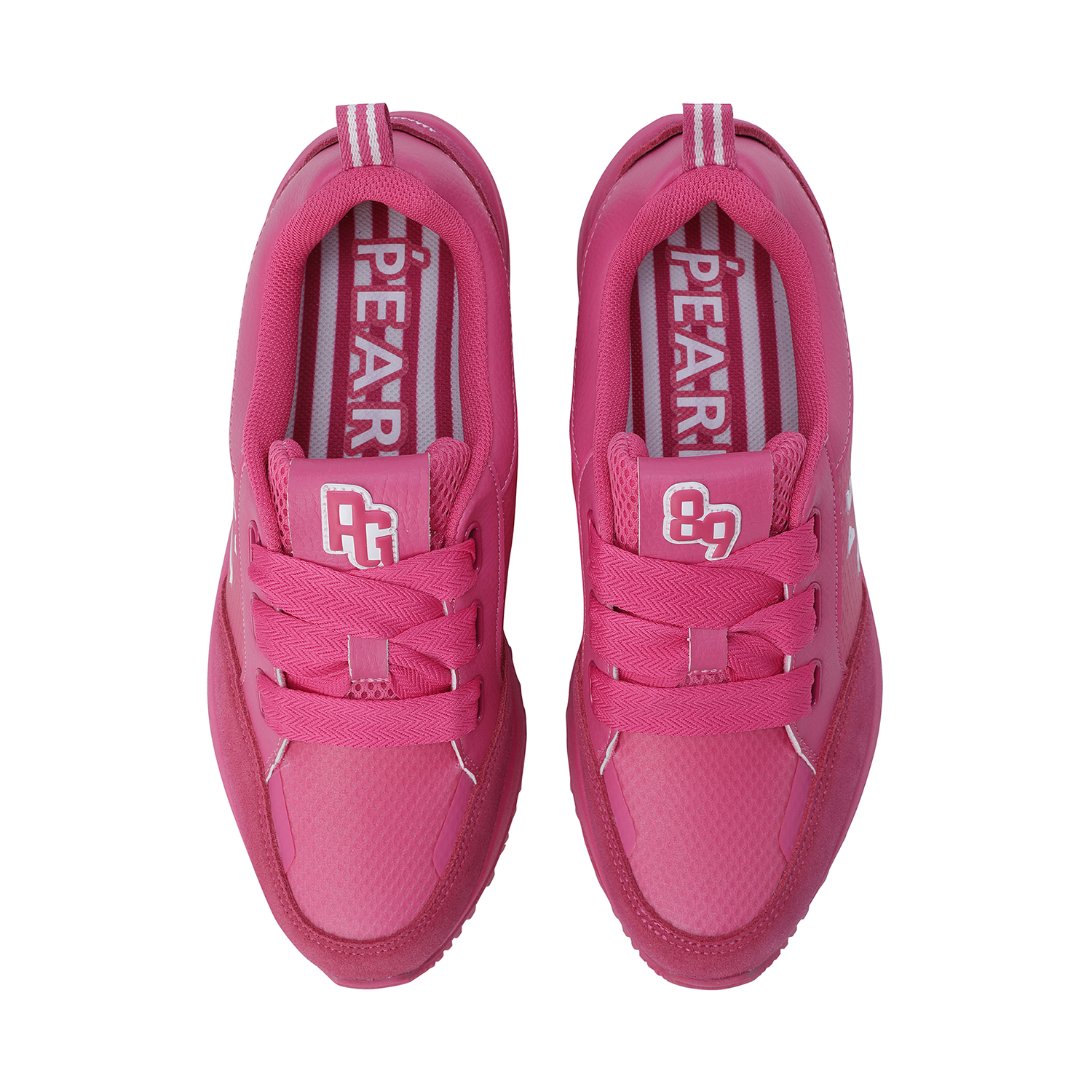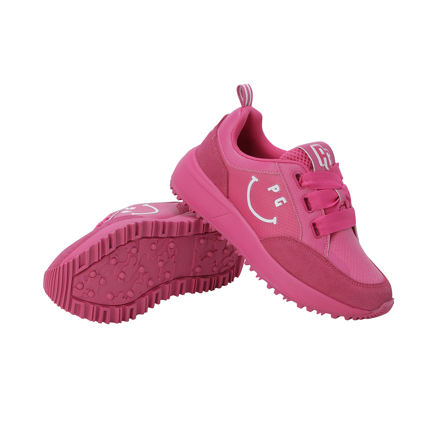 스마일 고주파 포인트 여성 논스파이크 골프화신발주머니 포함, 정사이즈 권장 / 발볼: 보통(E)굽 높이: 4.5cm / 무게: 350g (240 사이즈 한 짝 기준)민트와 핑크, 두 가지 솔리드 컬러로 전개된 여성 논스파이크 골프화.어퍼부터 미드솔, 아웃솔까지 동일한 컬러로 완성된 올-솔리드 디자인으로 라운드 위에서도 감각적이고 트렌디한 스타일 연출.측면의 스마일 커팅 고주파 디테일이 브랜드 특유의 위트를 더하며, 조거솔 스타일의 날렵한 실루엣이 패션 스니커즈 같은 존재감.인조 스웨이드 배색 어퍼로 완성된 강렬하고 세련된 룩.※ 신발주머니, 보조신끈 포함