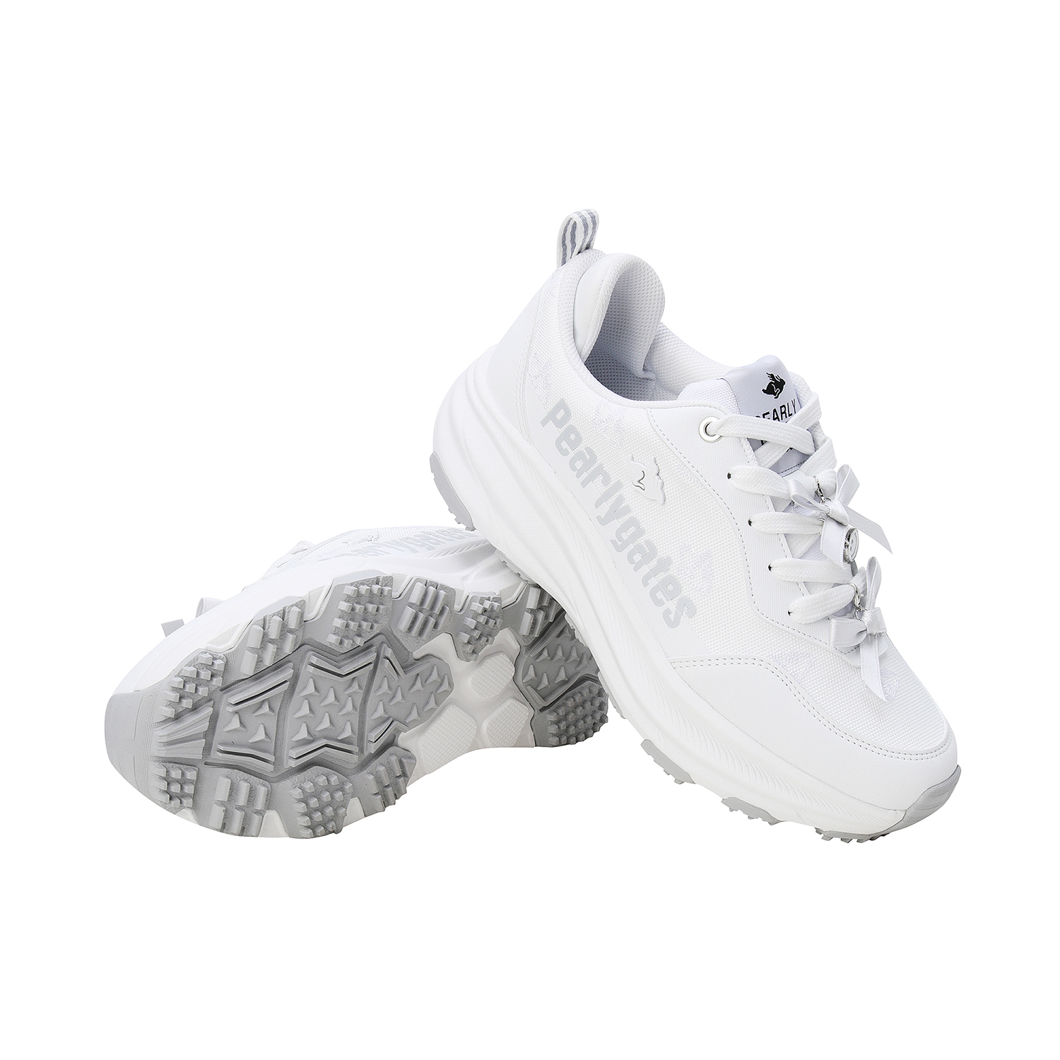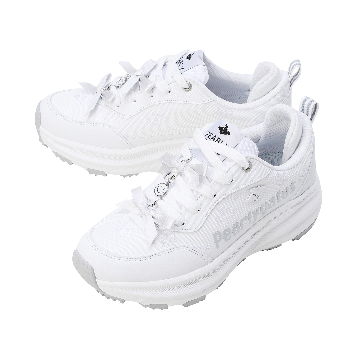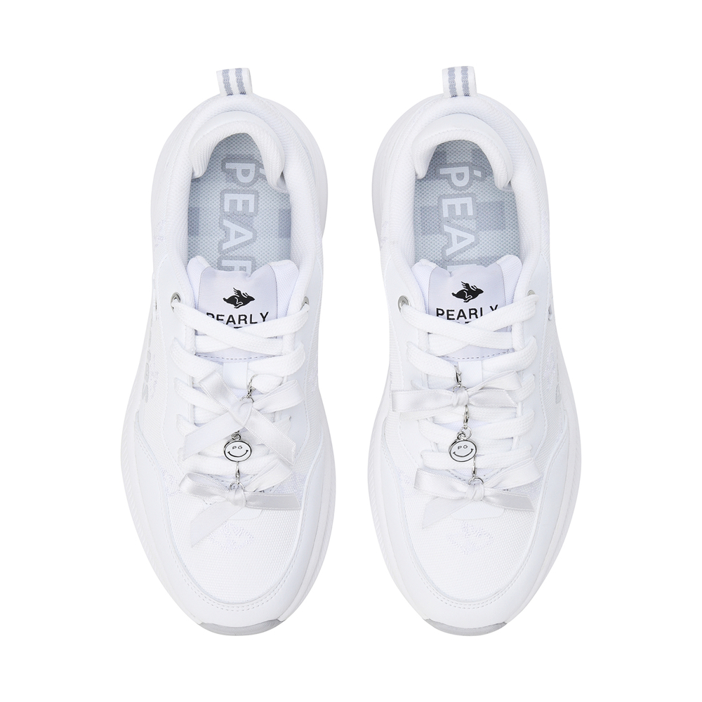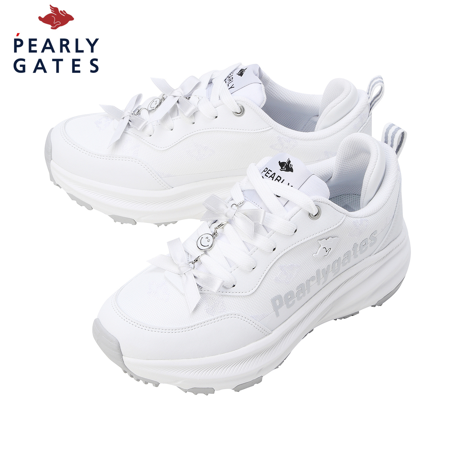 날토끼 패턴 여성 논스파이크 골프화신발주머니 포함, 정사이즈 권장 / 발볼: 넓은 편(2E)굽 높이: 5.5cm / 무게: 356g (240 사이즈 한 짝 기준)감각적인 컬러 배합과 체크 포인트가 돋보이는 여성 논스파이크 골프화.신끈의 리본장식과 측면 납작 토끼형 금속 리벳 장식이 파리게이츠 특유의 캐주얼하면서도 위트 있는 감성을 표현.밀도 높은 폼 구조가 발을 안정적으로 감싸 완벽한 착화감과 프리미엄 쿠셔닝을 제공.경량 파이론 미드솔이 장시간 착화에도 부담을 줄여주며 러버 아웃솔이 마모에 강하고 안정적인 접지력으로 스윙 시 흔들림 없는 밸런스 유지.