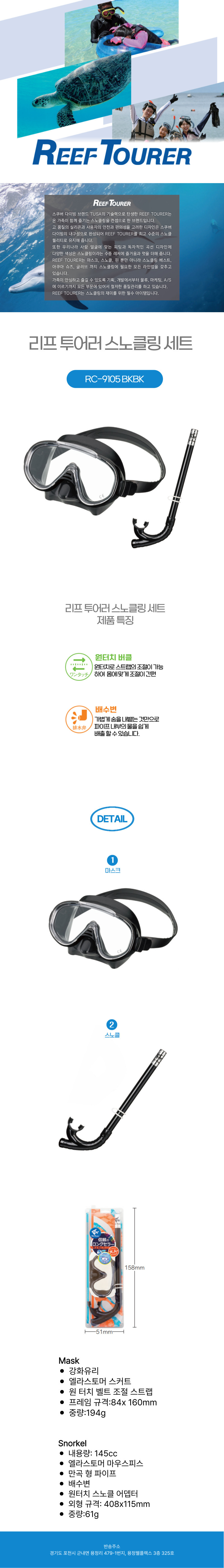 리프 투어러 스노클링세트 RC-9105 BKBK