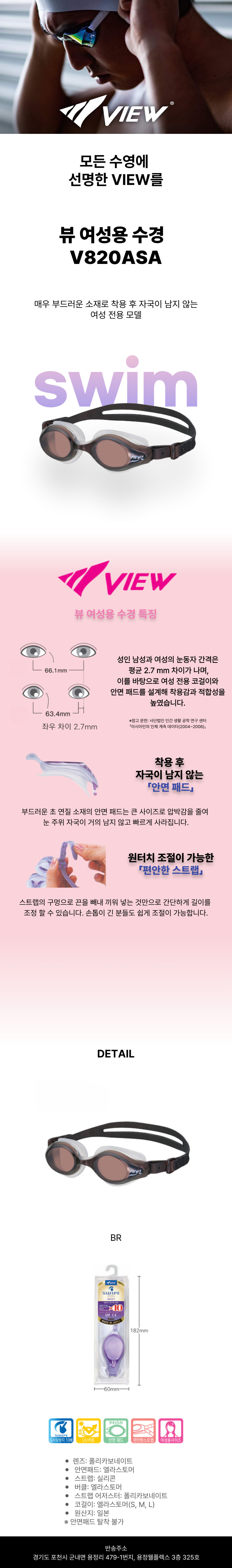 뷰 여성용 수경 V820A SA BR