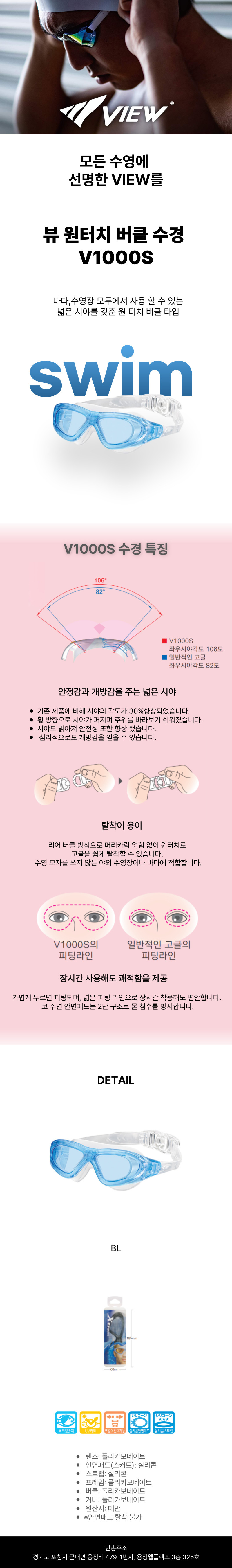 뷰 원터치 버클 수경 V1000S BL